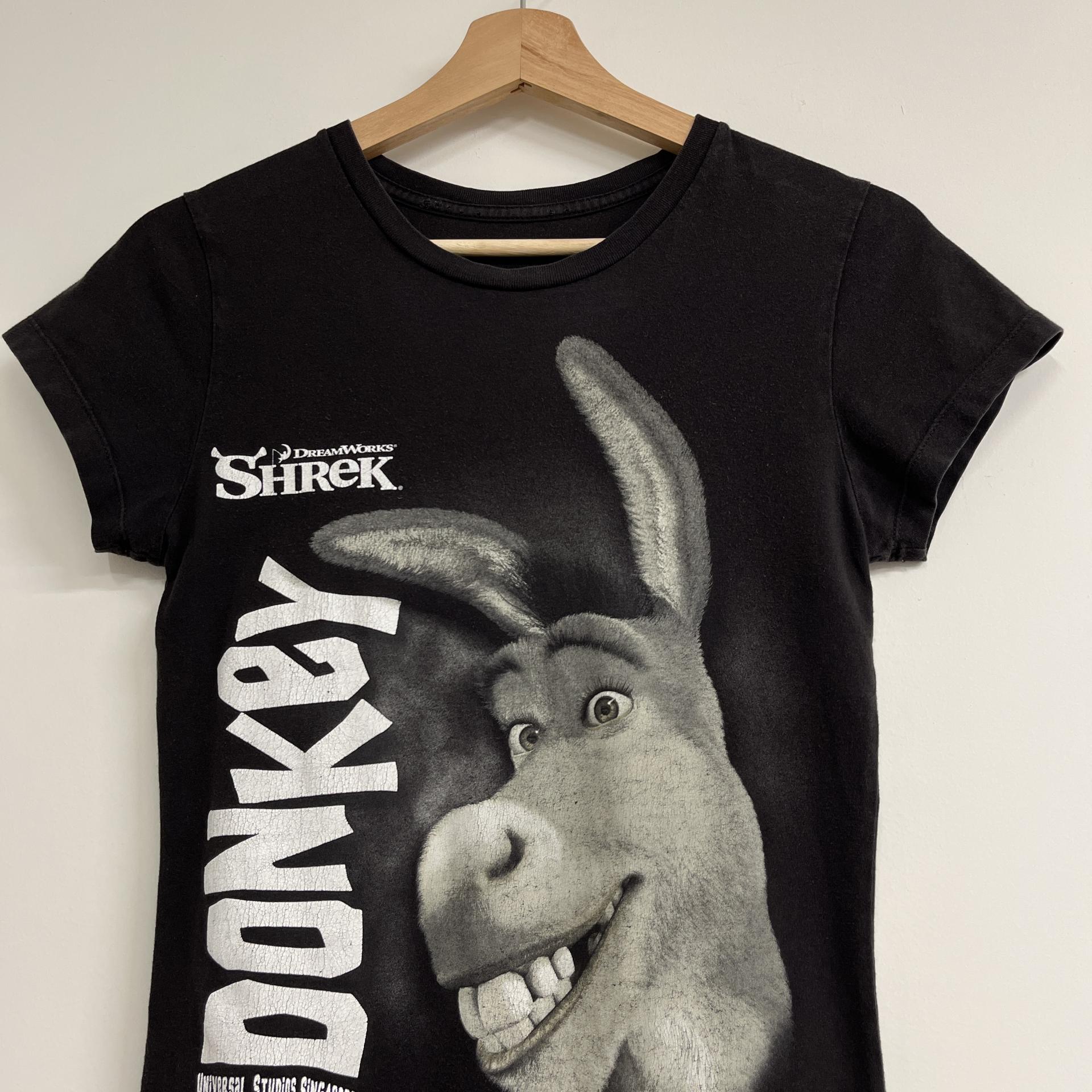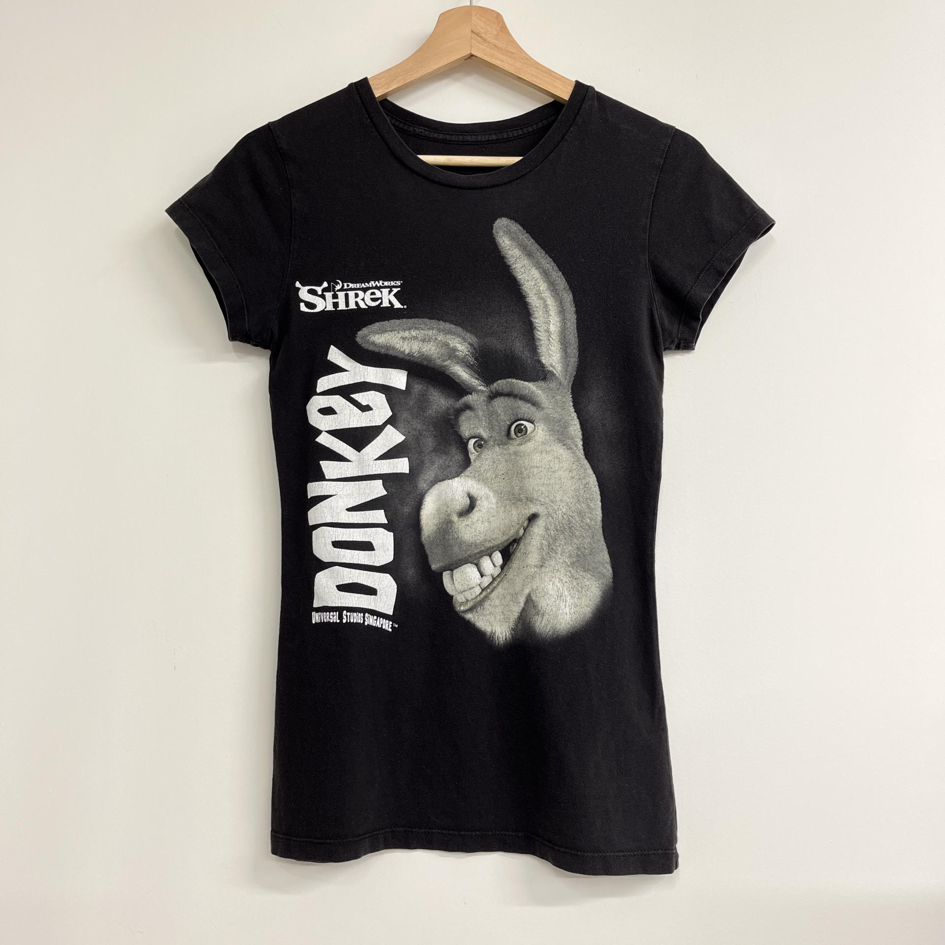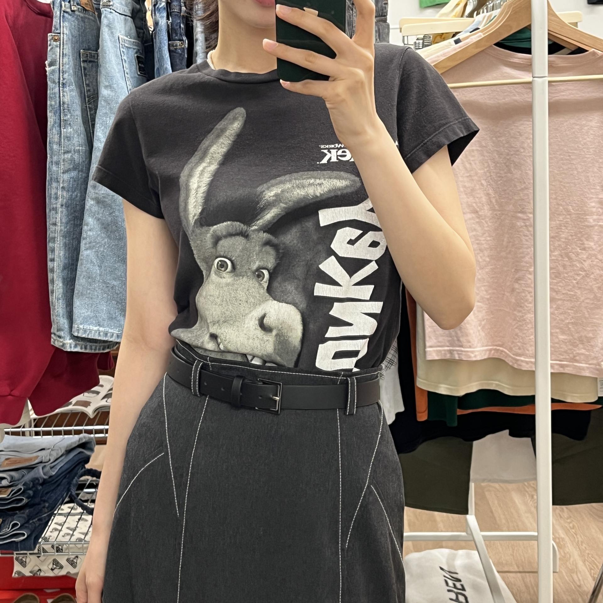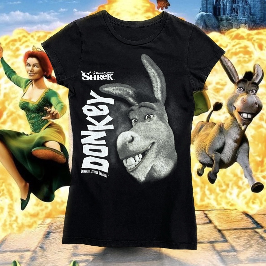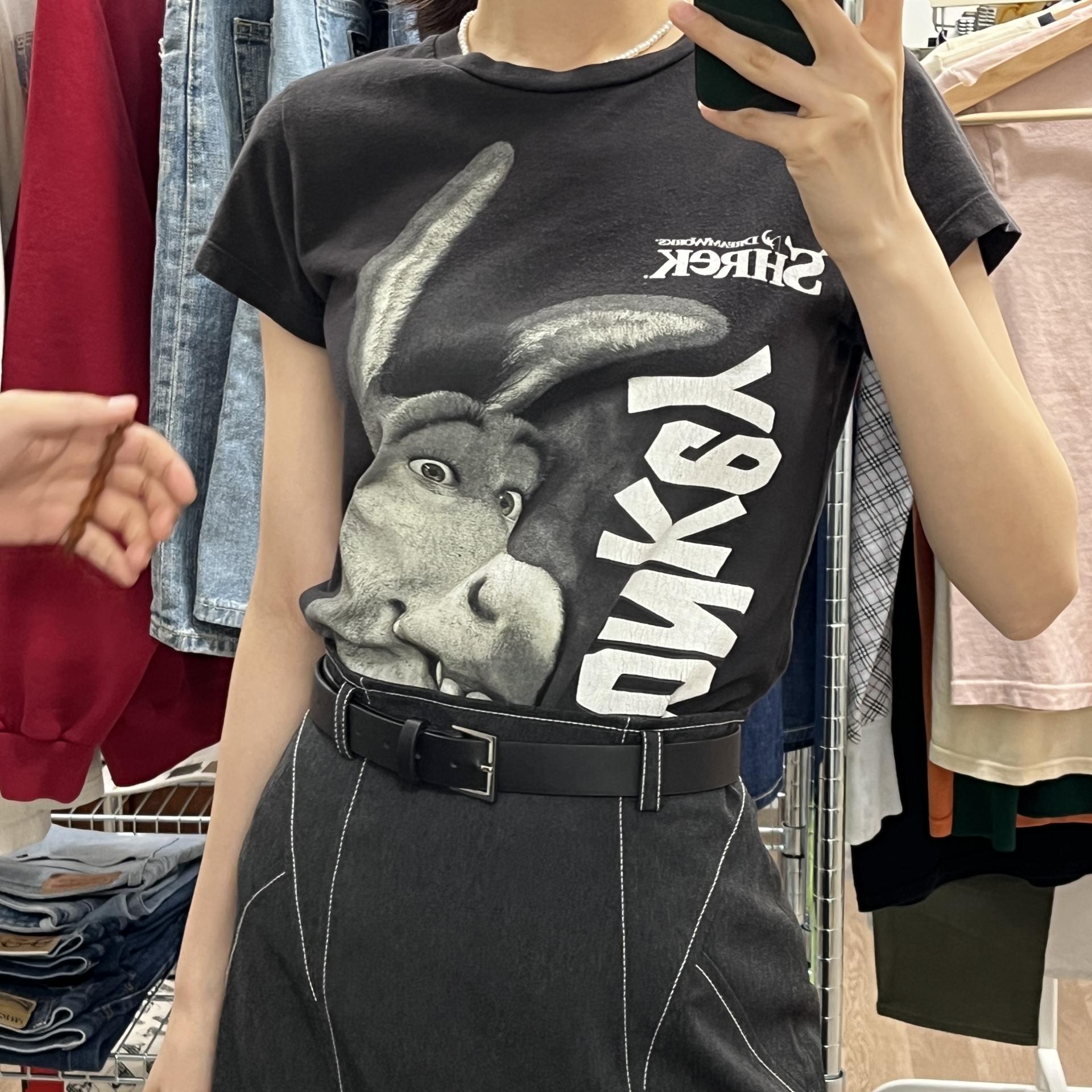 귀여운 덩키 프린팅 포인트가 돋보이는 슈렉 무비 티셔츠입니다.