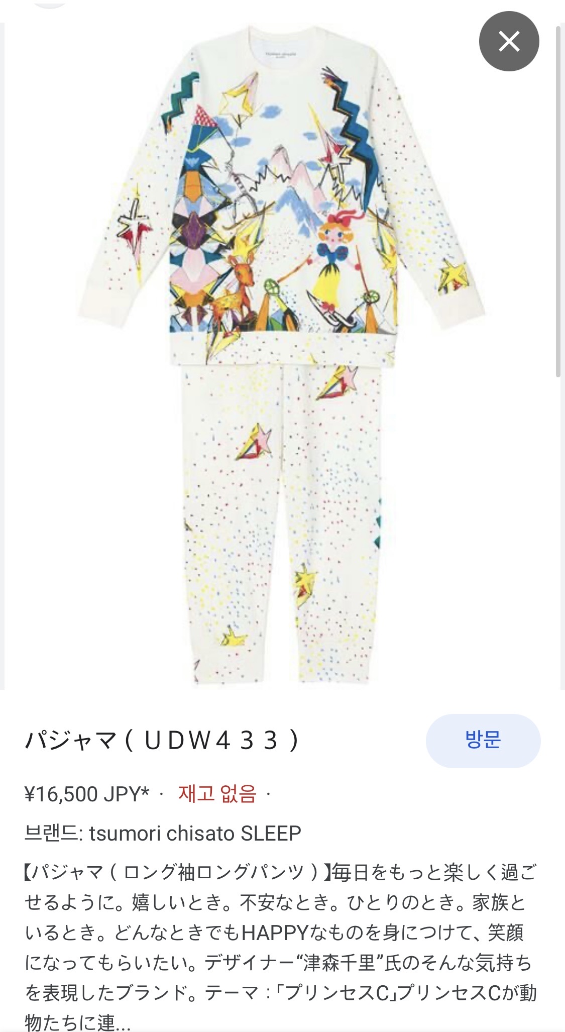 소녀 감성의 독특한 패턴이 돋보이며, 물감을 뿌려놓은듯 자연스러운 프린팅 패턴 또한 보는 재미가 있습니다.