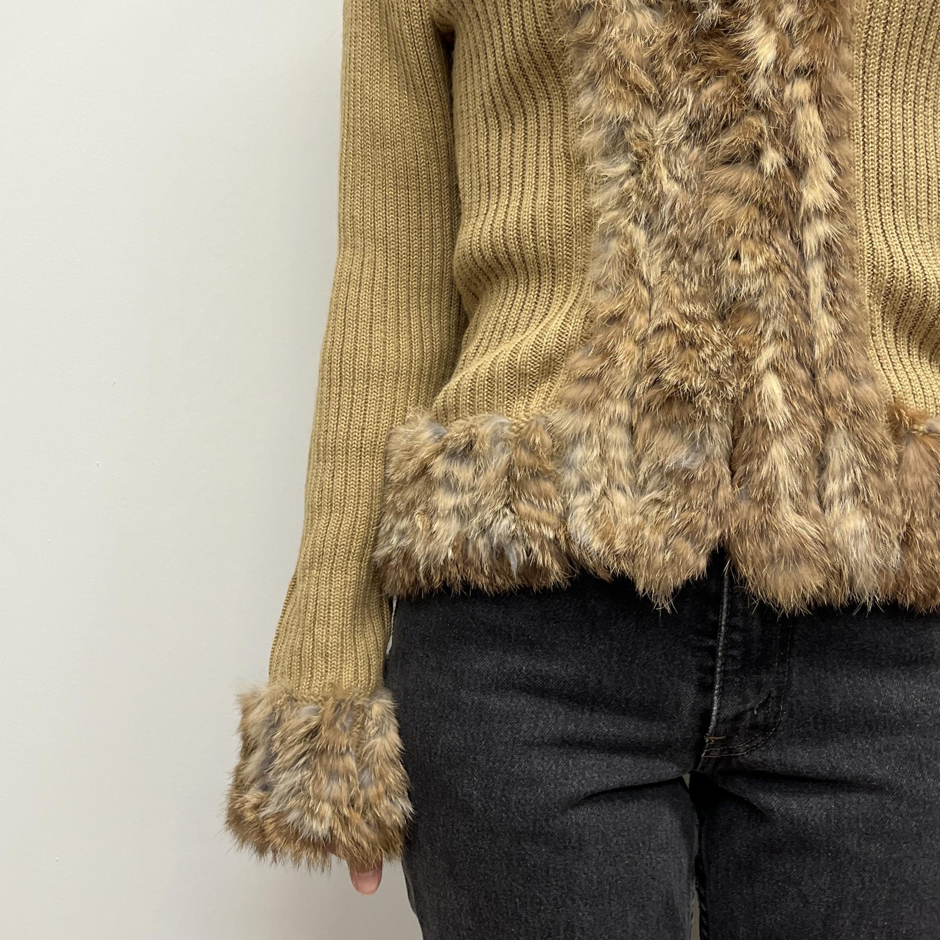 레빗 퍼 포인트가 돋보이는 GLAMOROUS GARDEN ( 글래머러스 가든 ) 사의 니트 가디건 제품입니다.