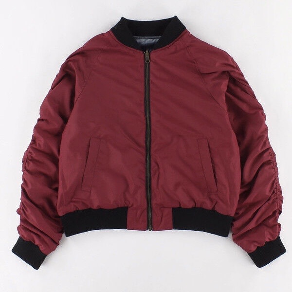 팔부터 소매까지의 셔링과 벨루어 소재, 뒤집어 입을땐 깔끔한 폴리에스테르 원단의 레드 컬러 !