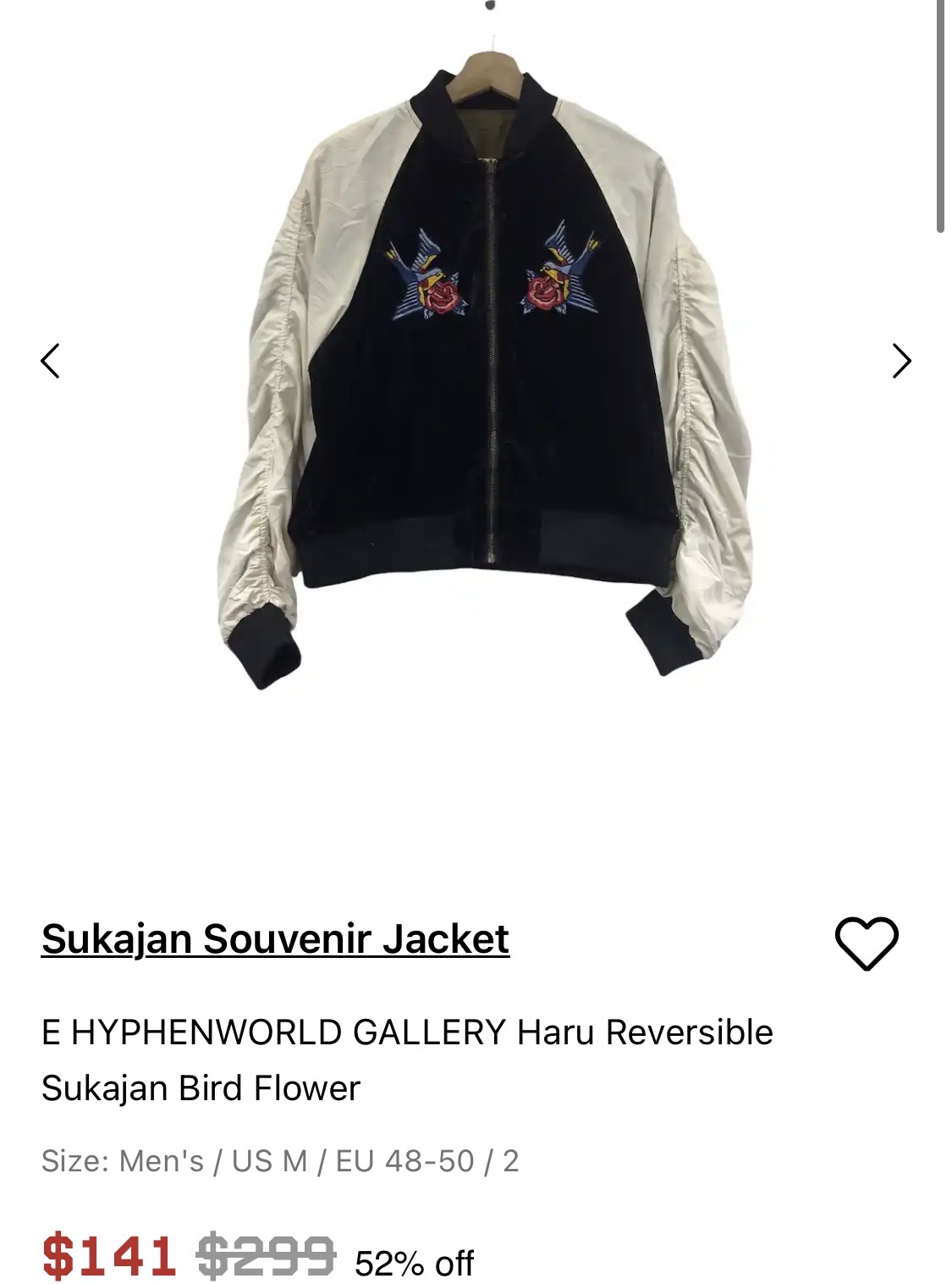 일본의 여성 캐주얼 브랜드 E hyphen world gallery의 리버시블 스카쟌 자켓입니다.