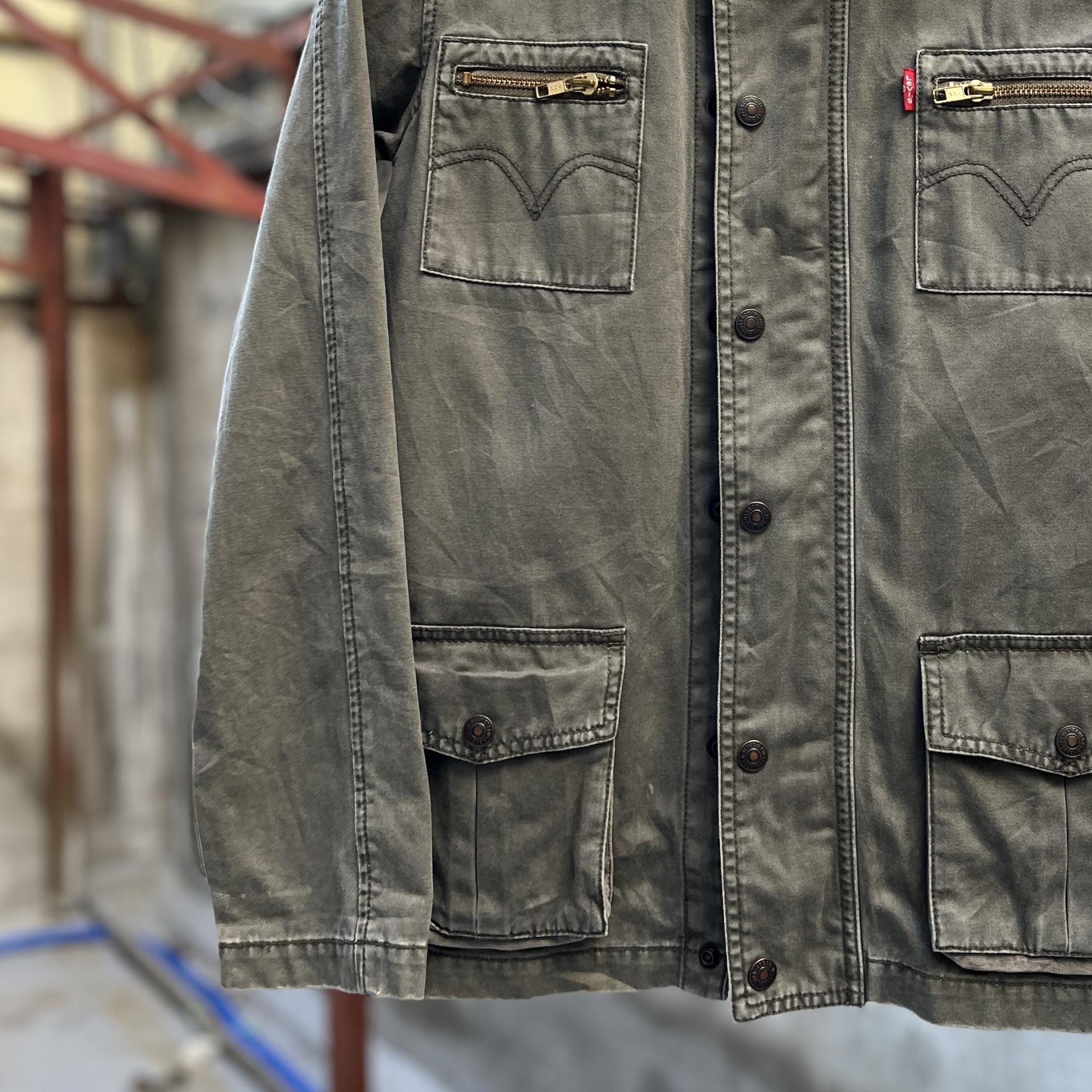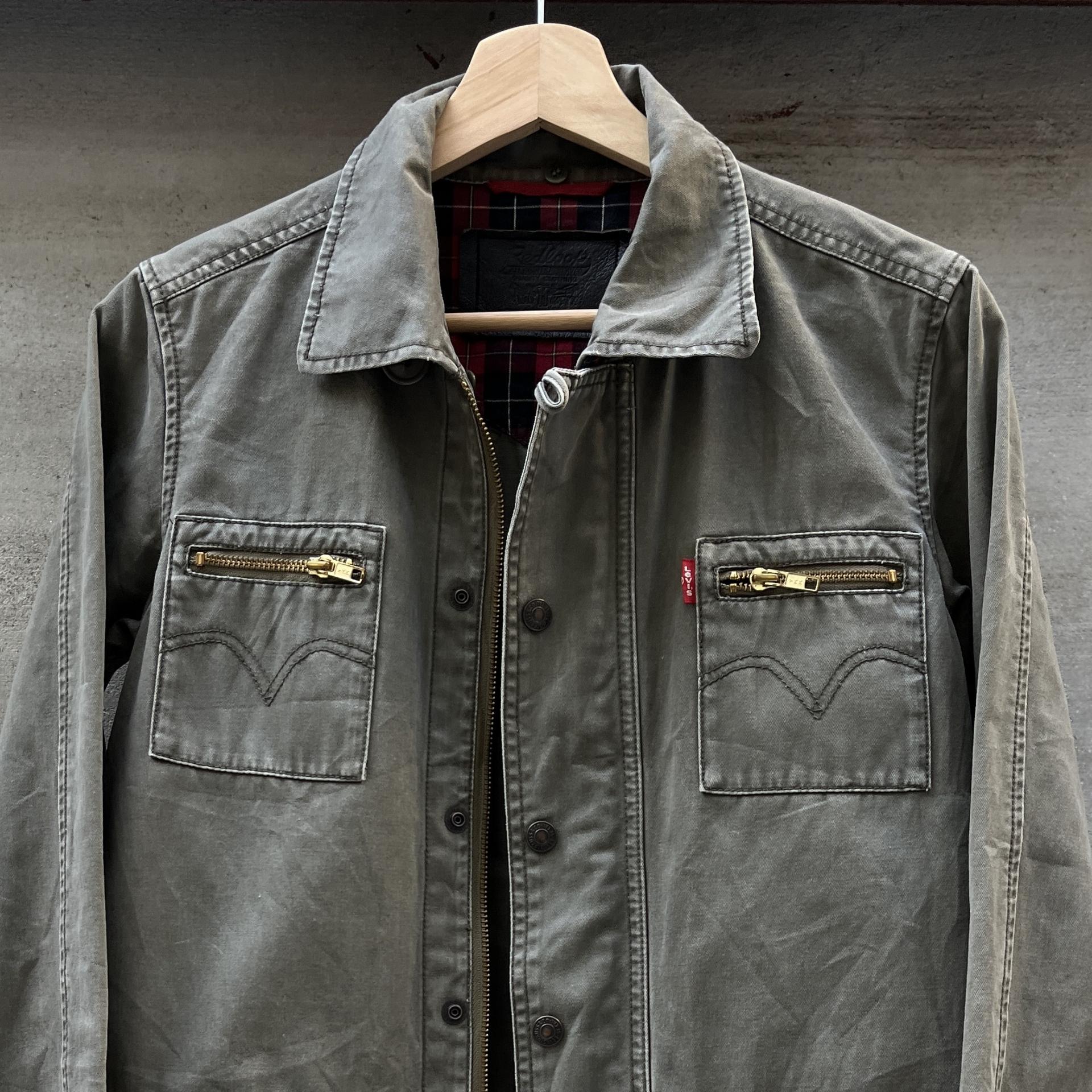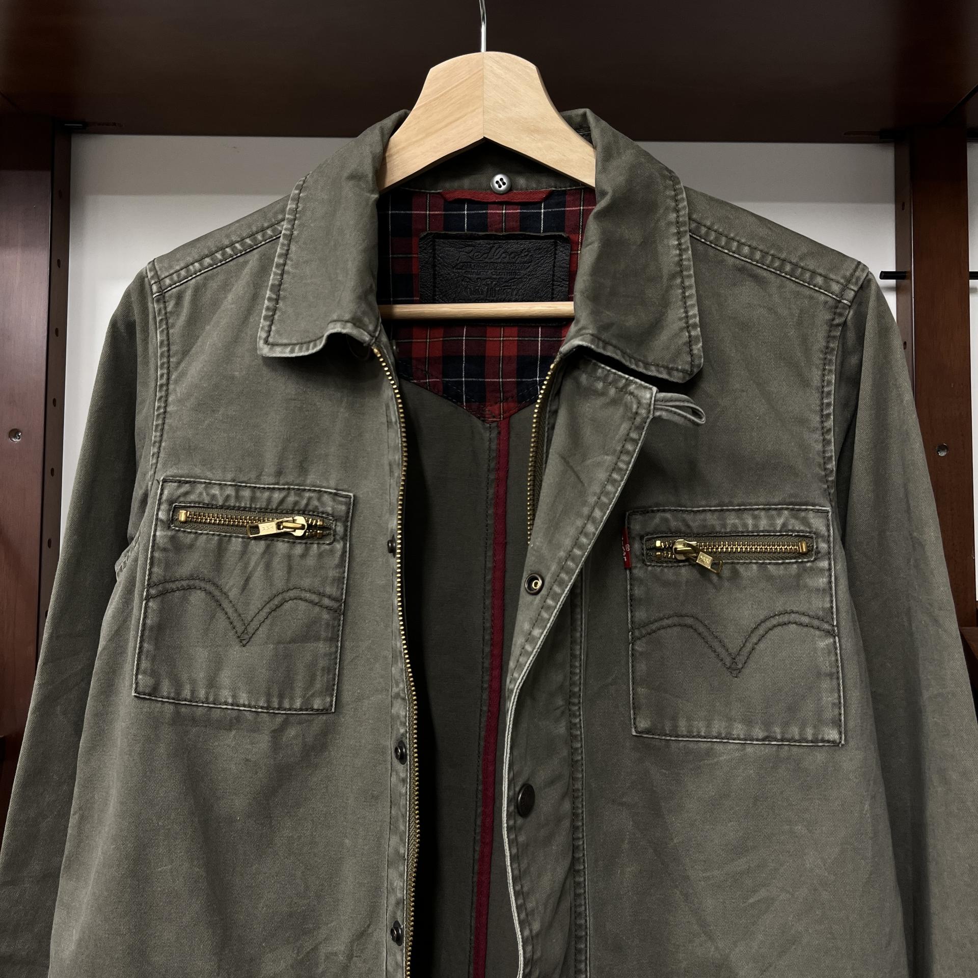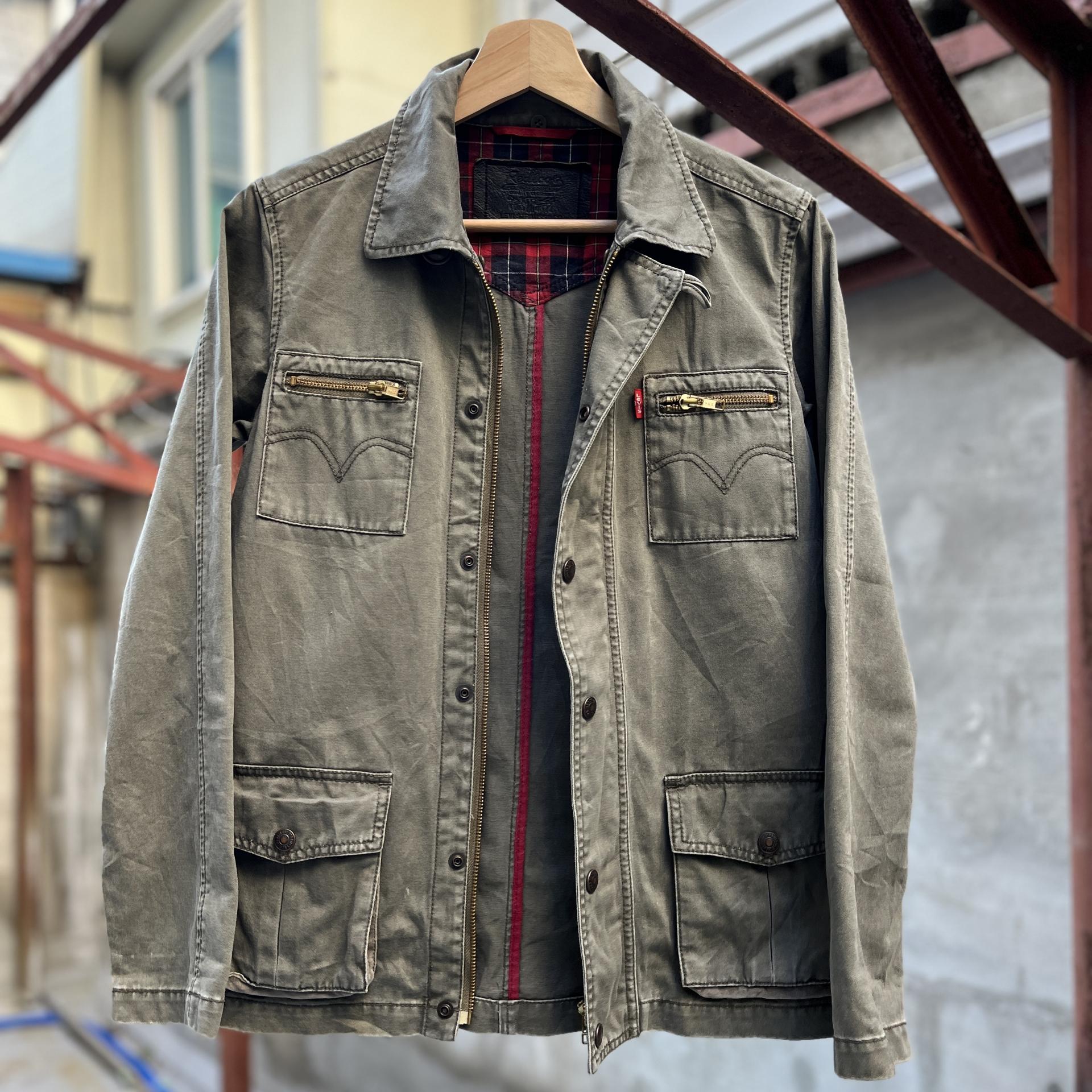빈티지한 무드의 워싱과 올리브 색감이 돋보이는 리바이스의 코튼 자켓입니다.