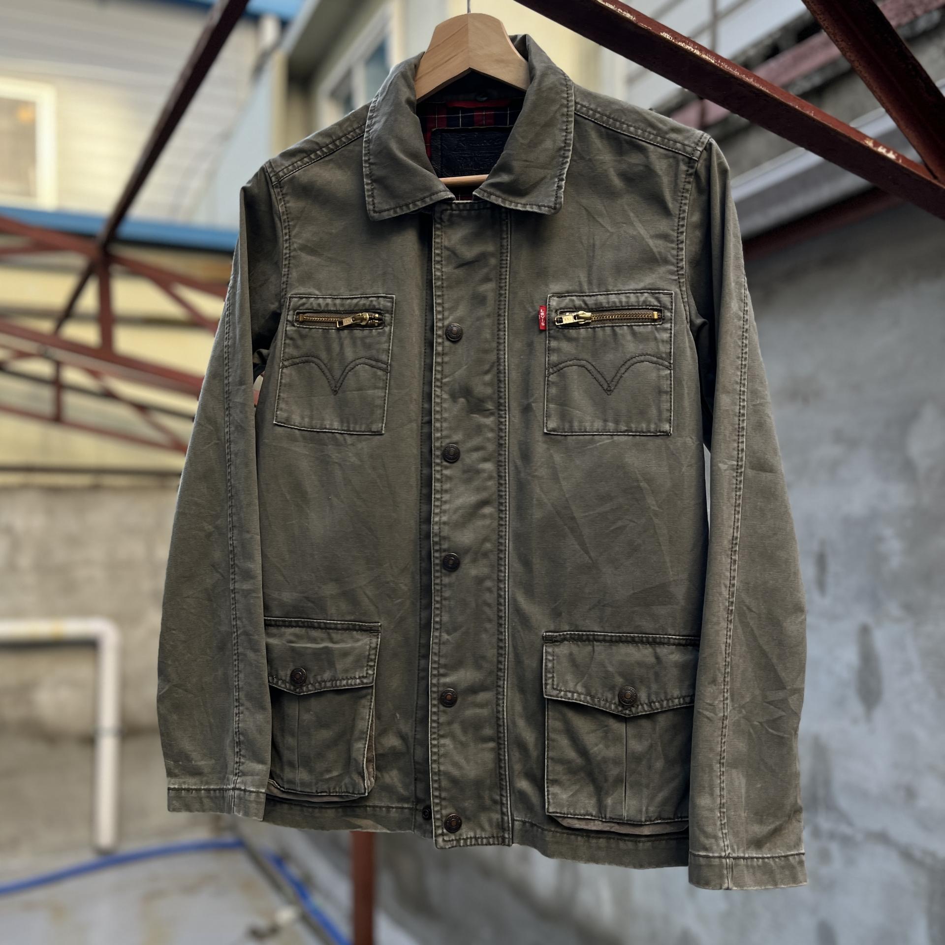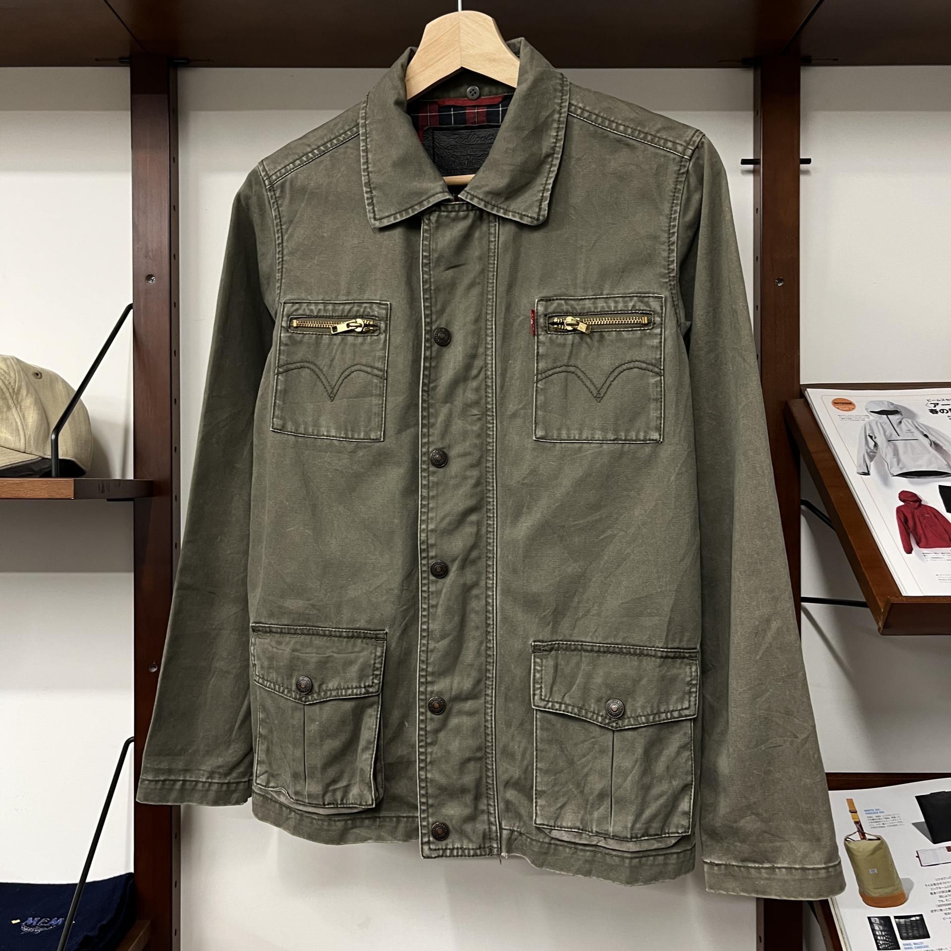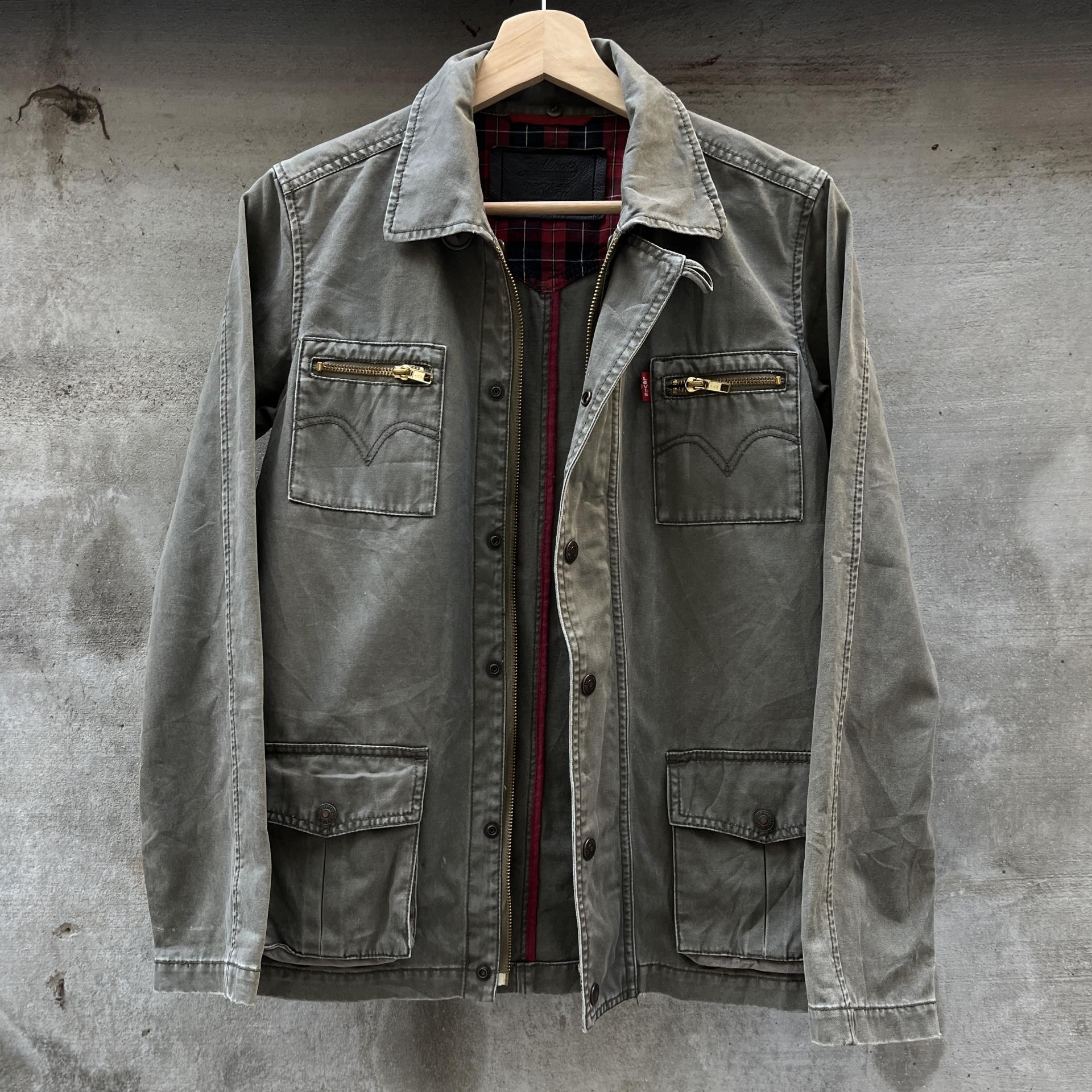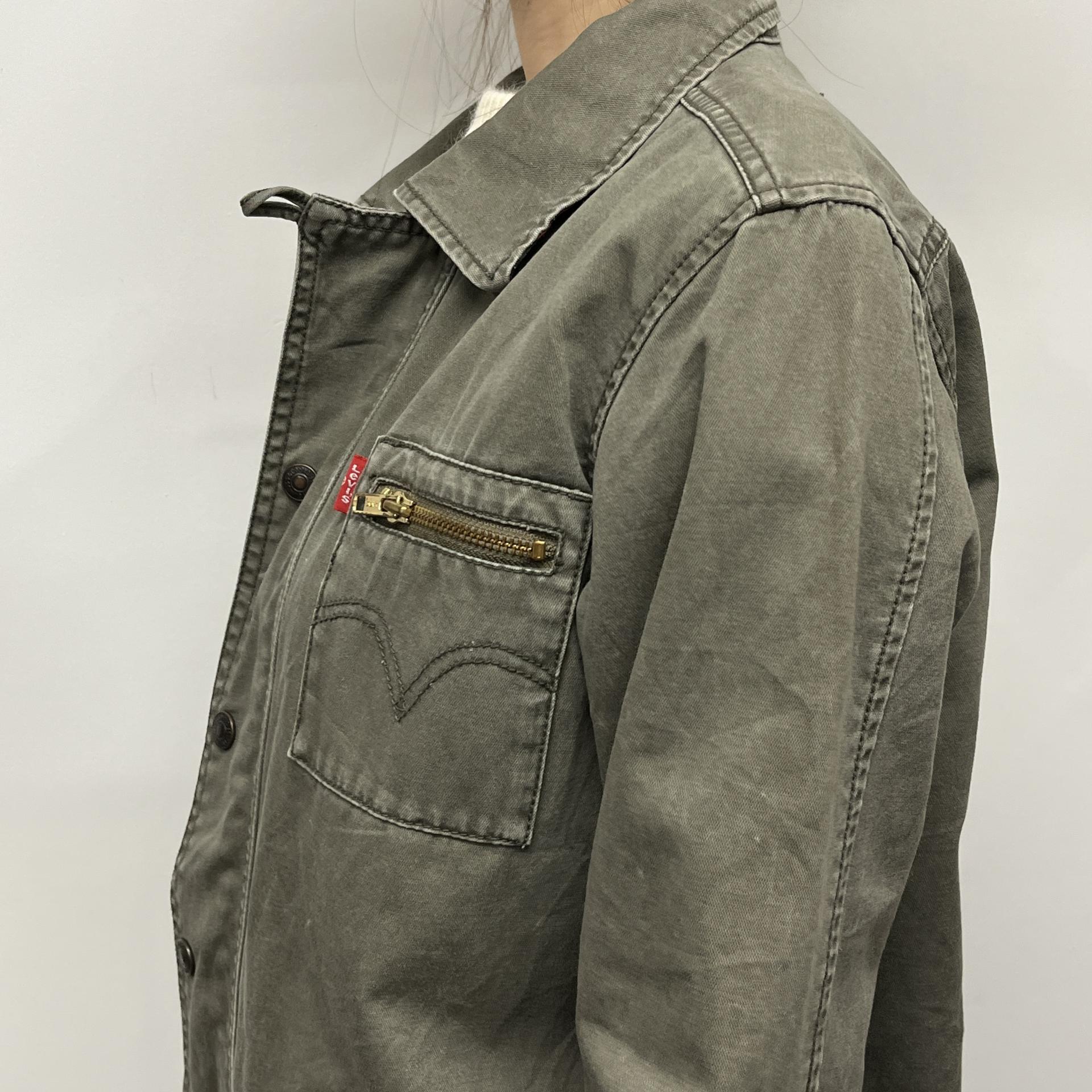 빈티지한 무드의 워싱과 올리브 색감이 돋보이는 리바이스의 코튼 자켓입니다.