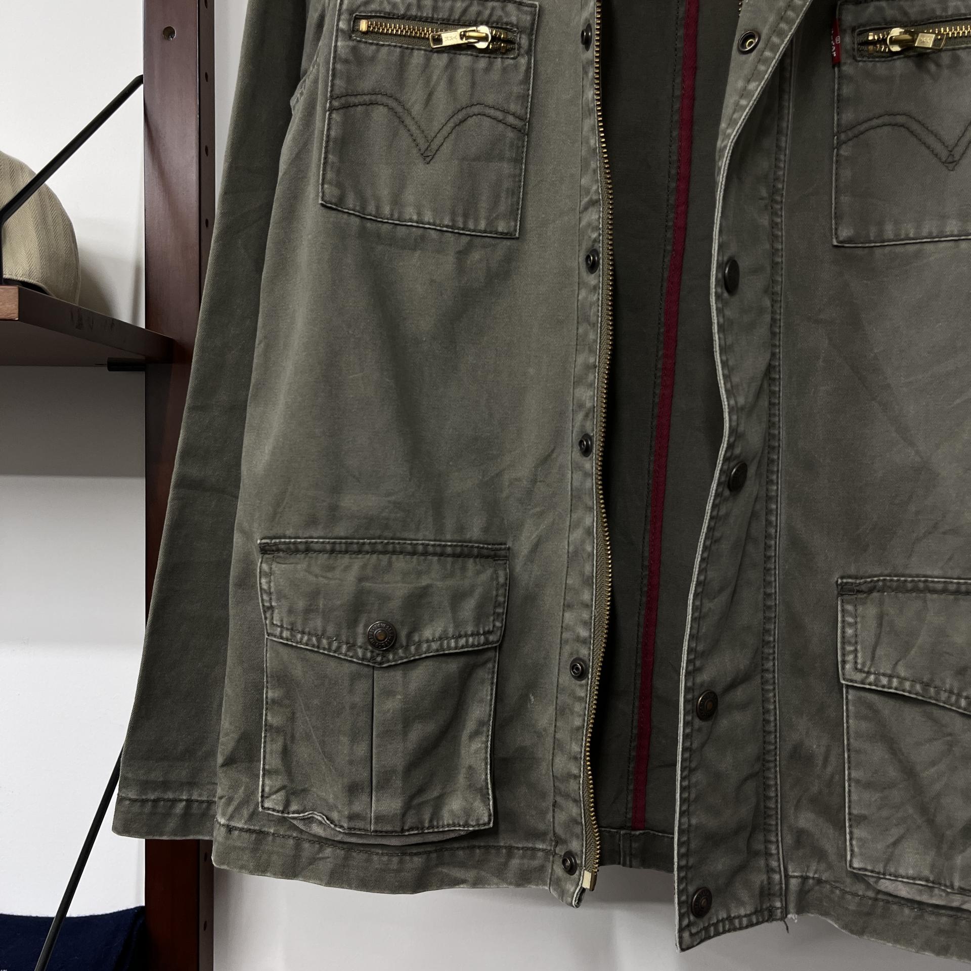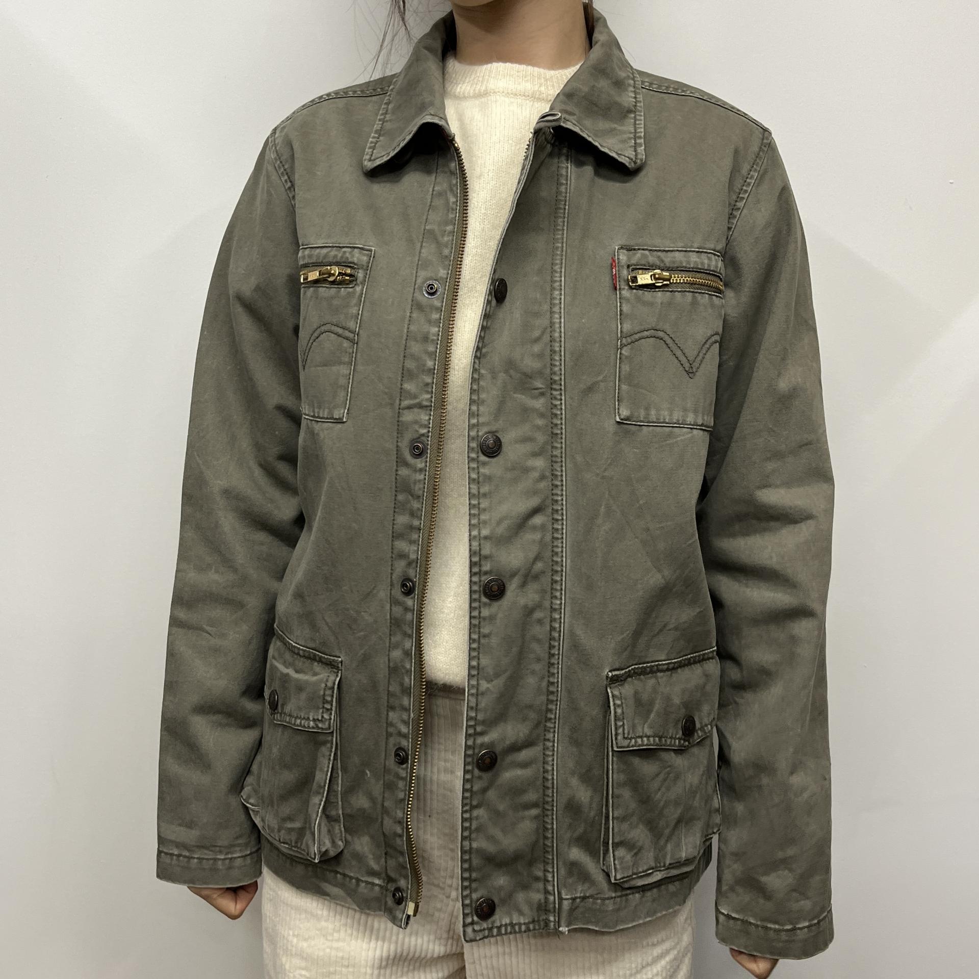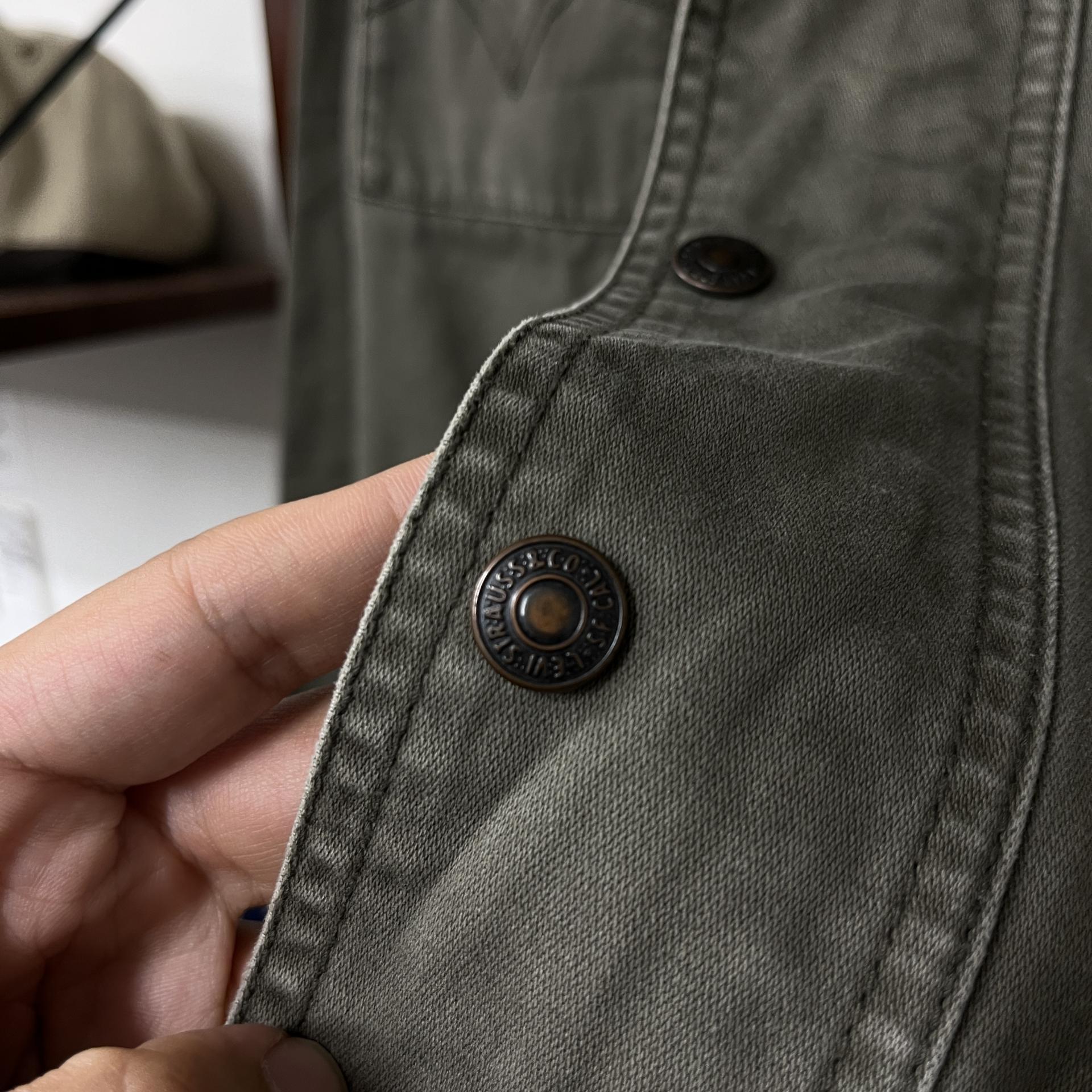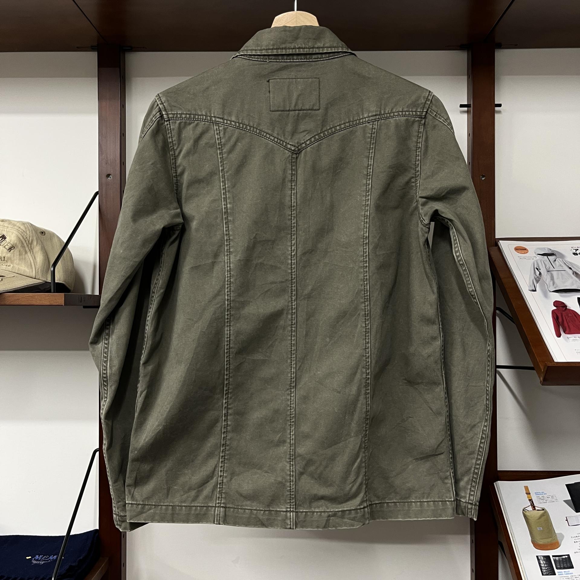빈티지한 무드의 워싱과 올리브 색감이 돋보이는 리바이스의 코튼 자켓입니다.