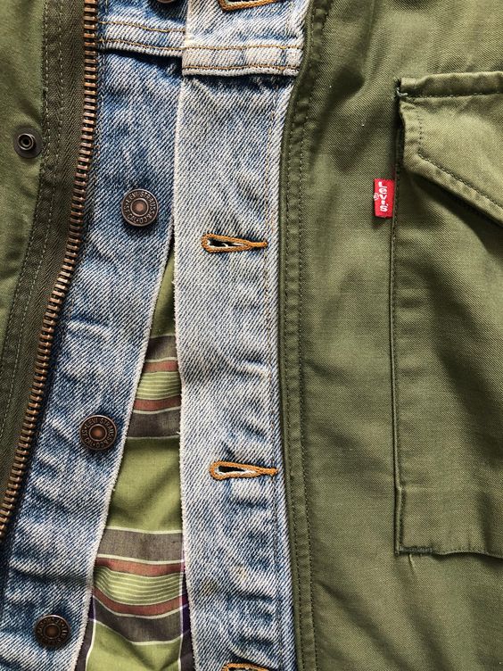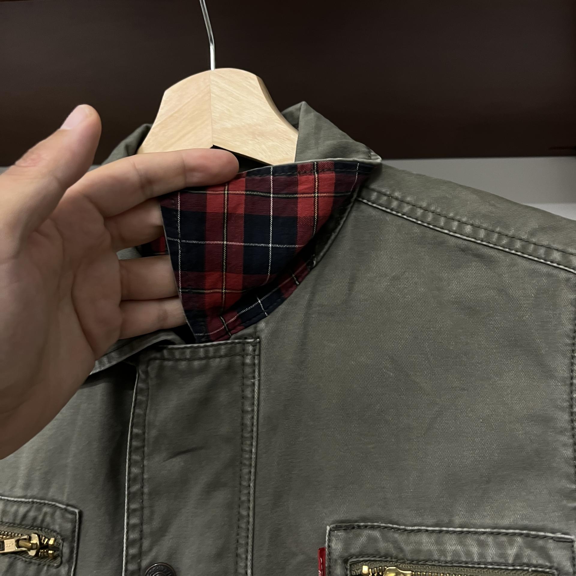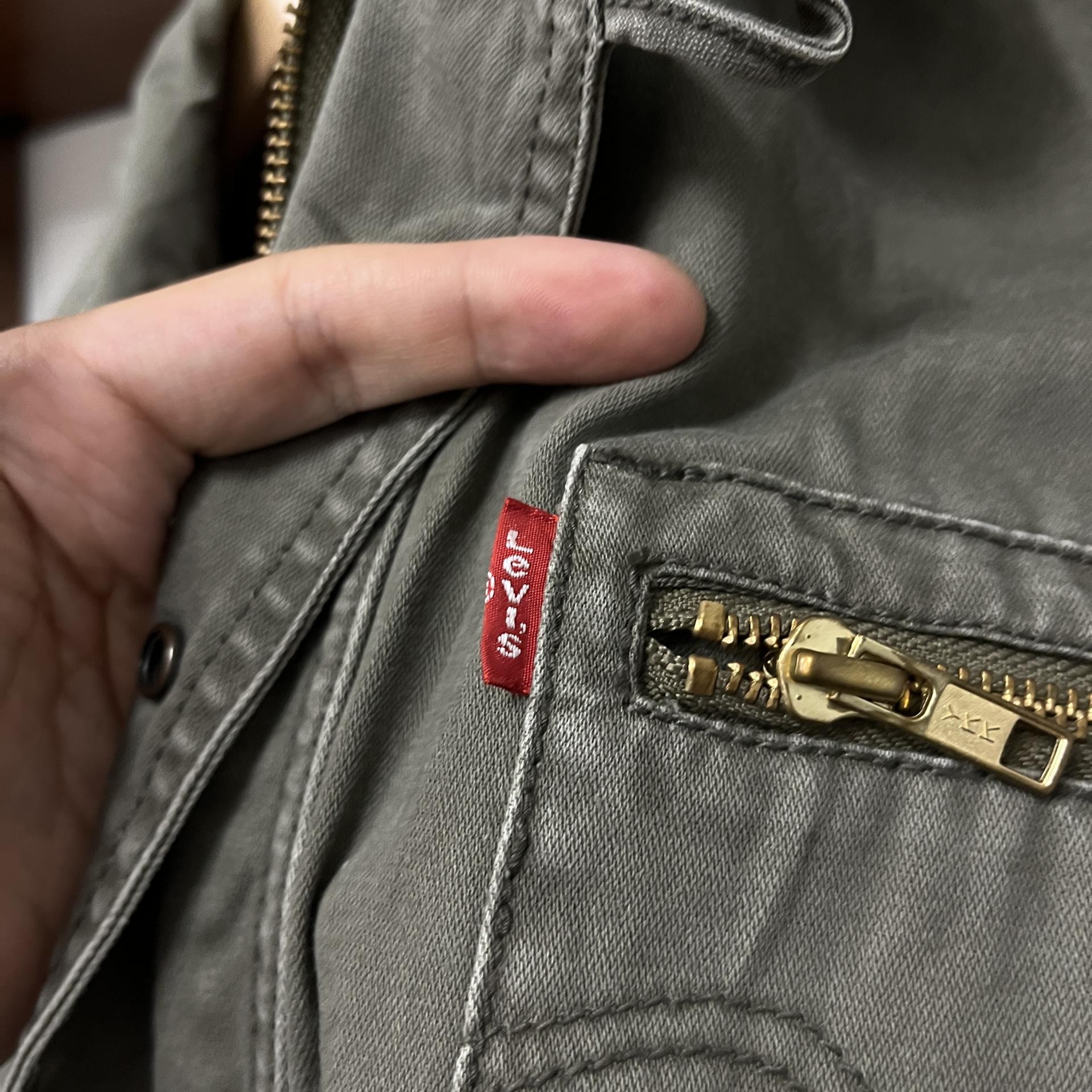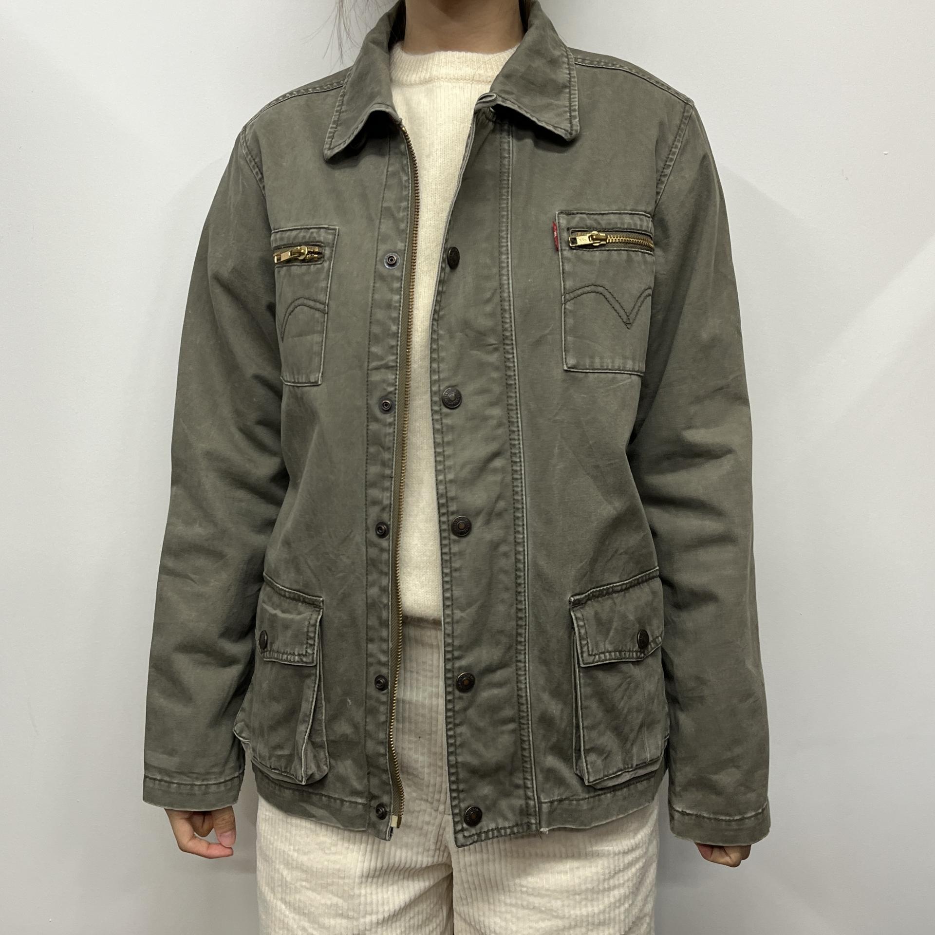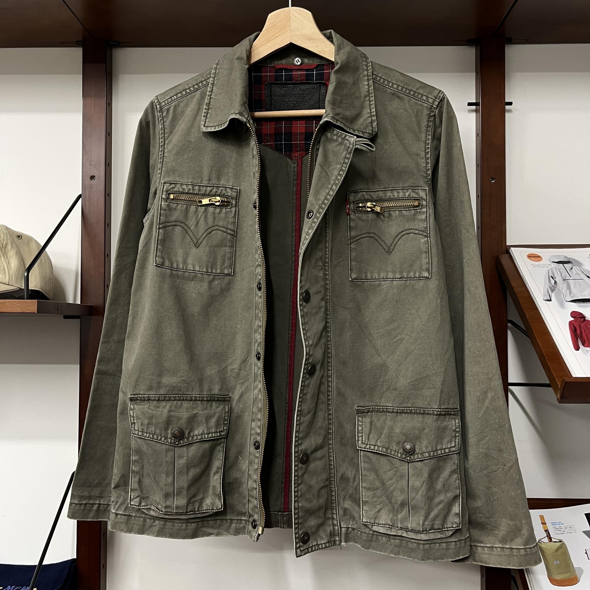 빈티지한 무드의 워싱과 올리브 색감이 돋보이는 리바이스의 코튼 자켓입니다.