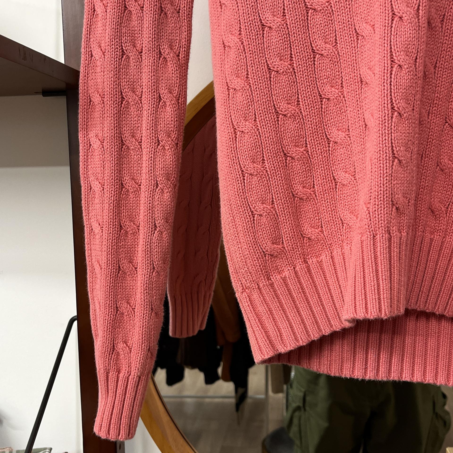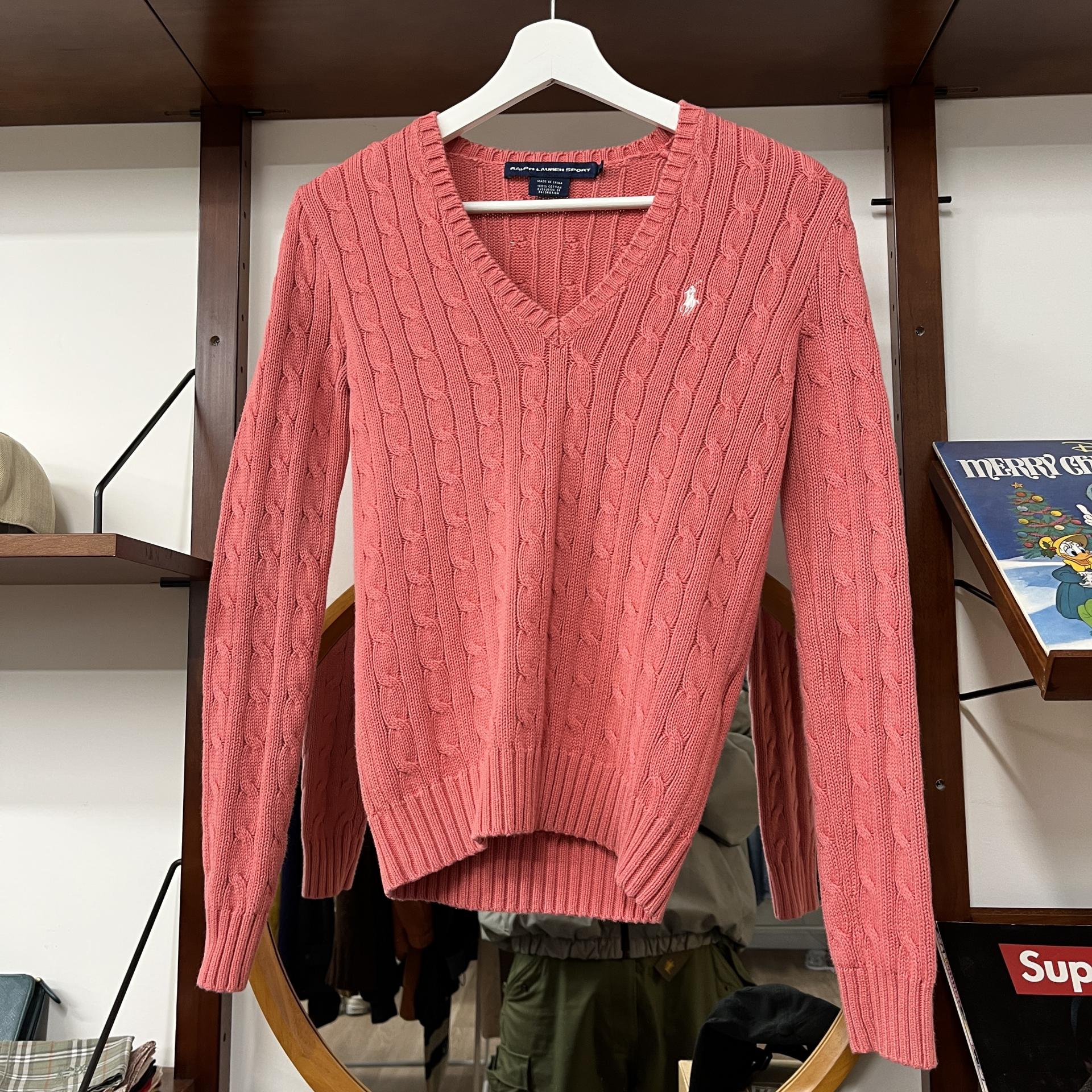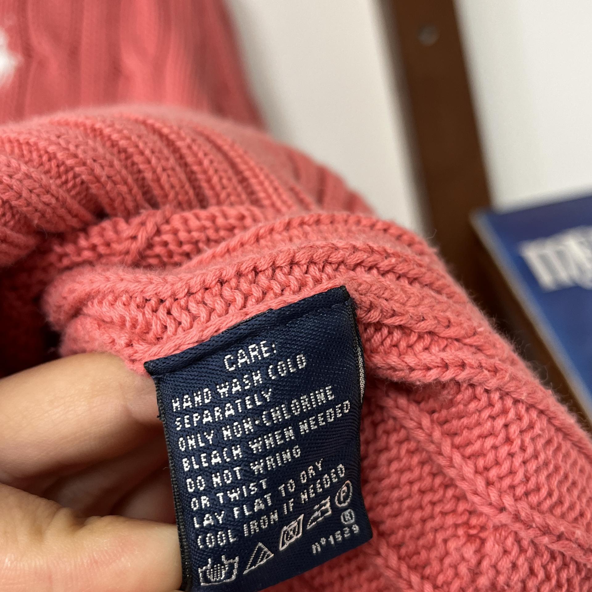 레트로 무드의 핑크 바디 컬러 위 화이트 포니가 새겨진 호불호 없는 컬러 조합의 니트 아이템입니다.