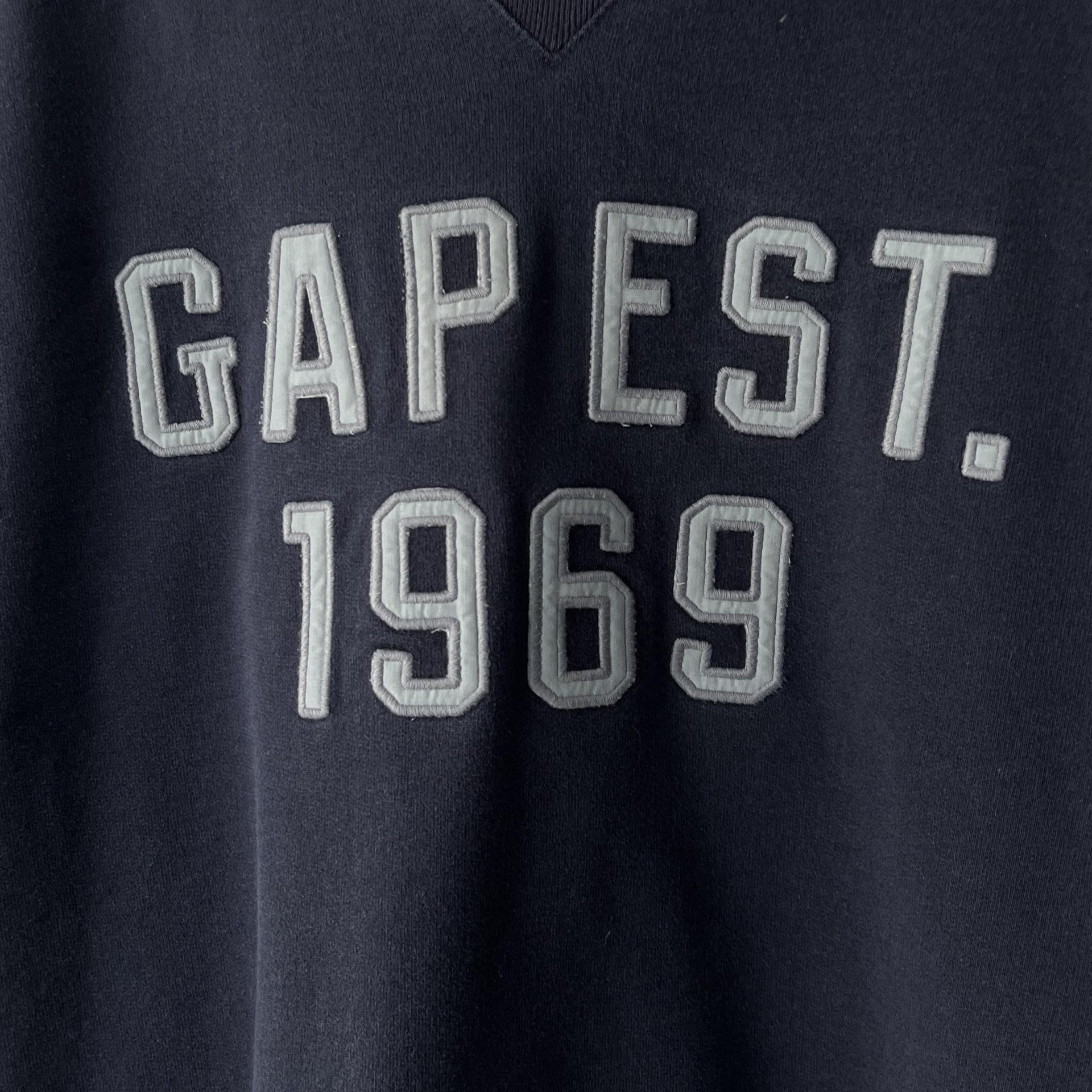 세월의 흔적이 멋스럽게 느껴지는 워싱, 대미지가 돋보이는 GAP의 스웨트셔츠 제품입니다.