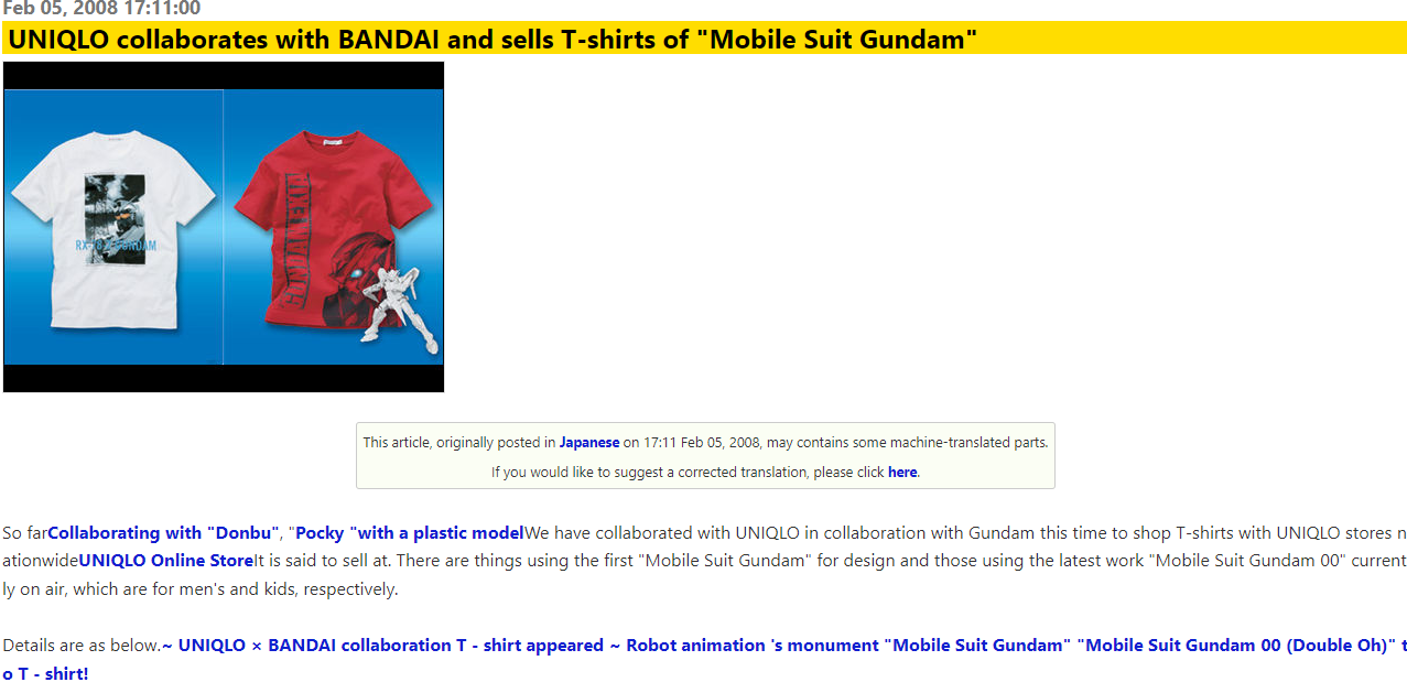 2008년 출시되었던 유니클로와 건담의 콜라보 UT 제품입니다.