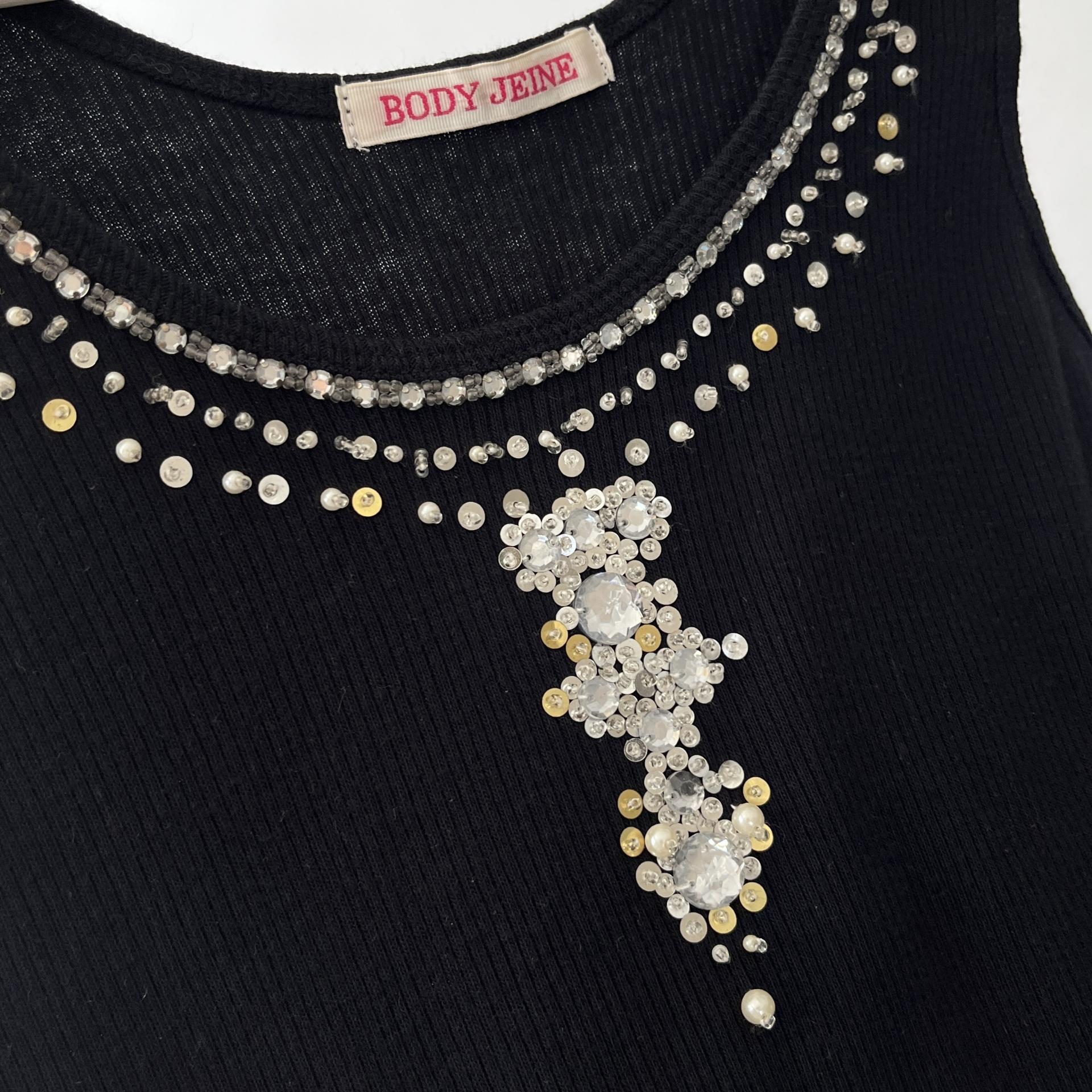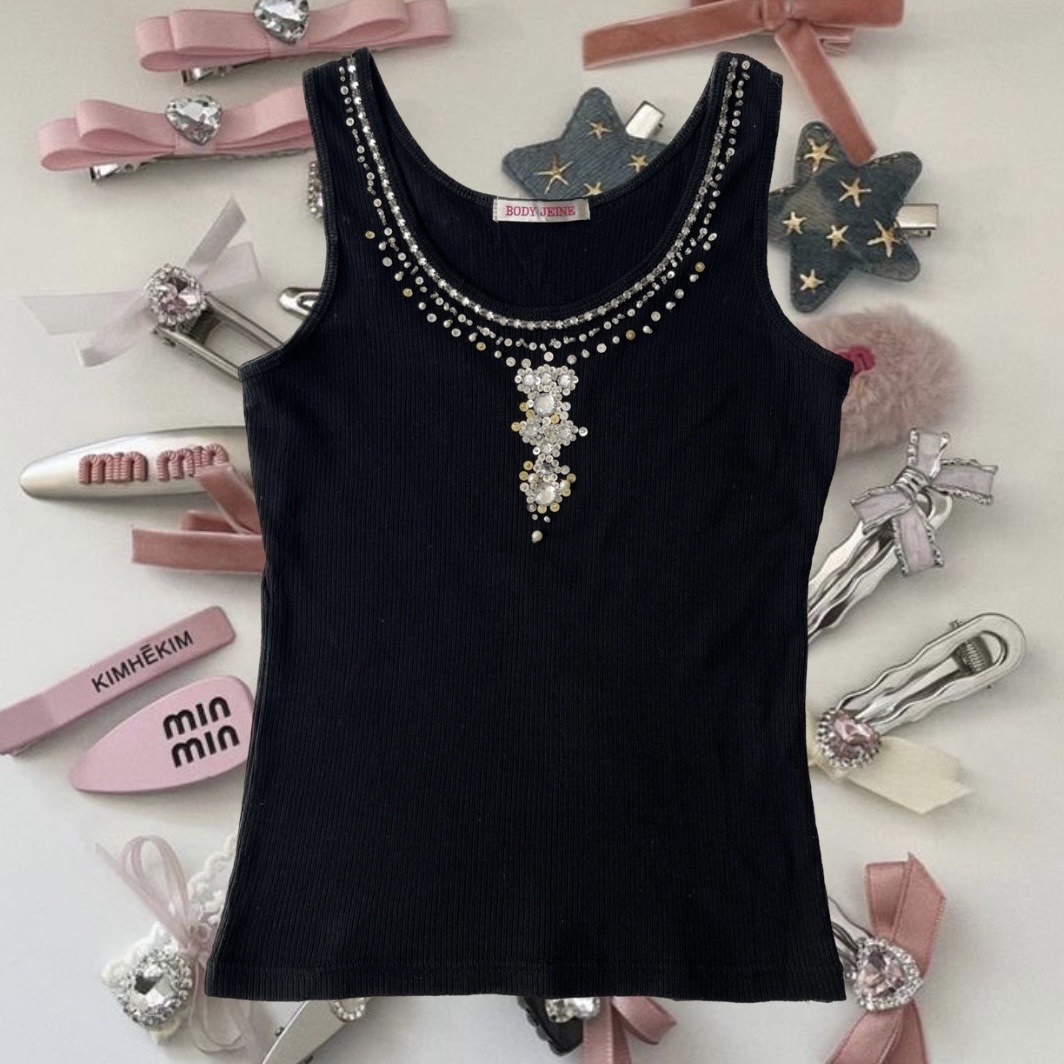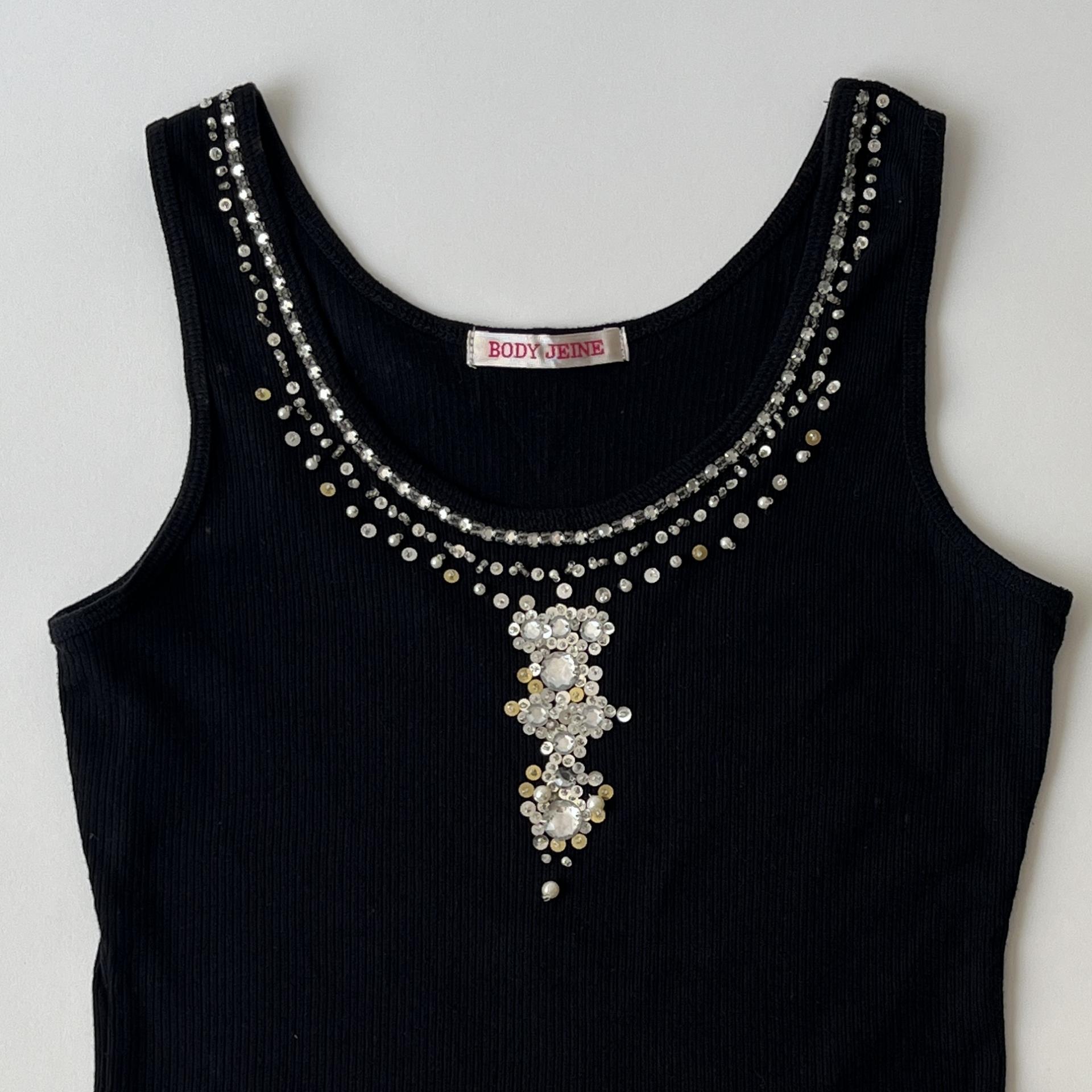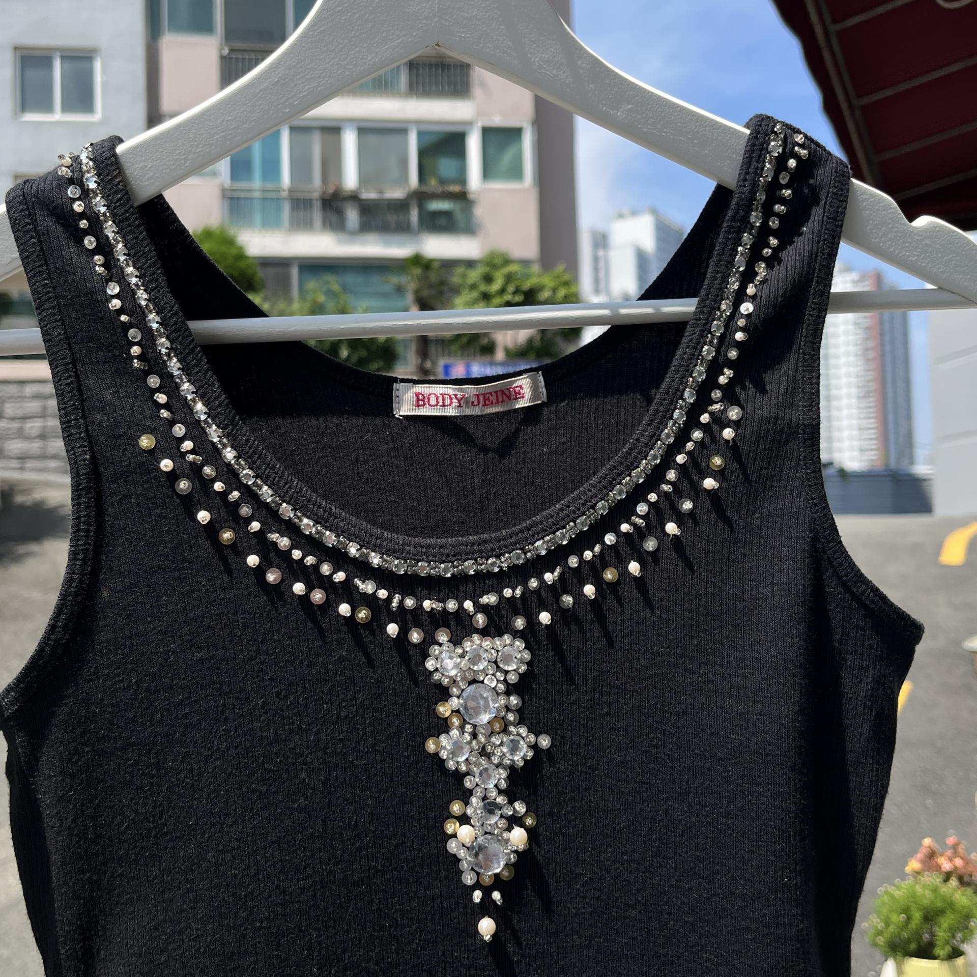 신축성 좋은 코튼 폴리 소재와 스트릿한 무드의 비즈 포인트들이 인상적인 탱크탑 제품입니다.