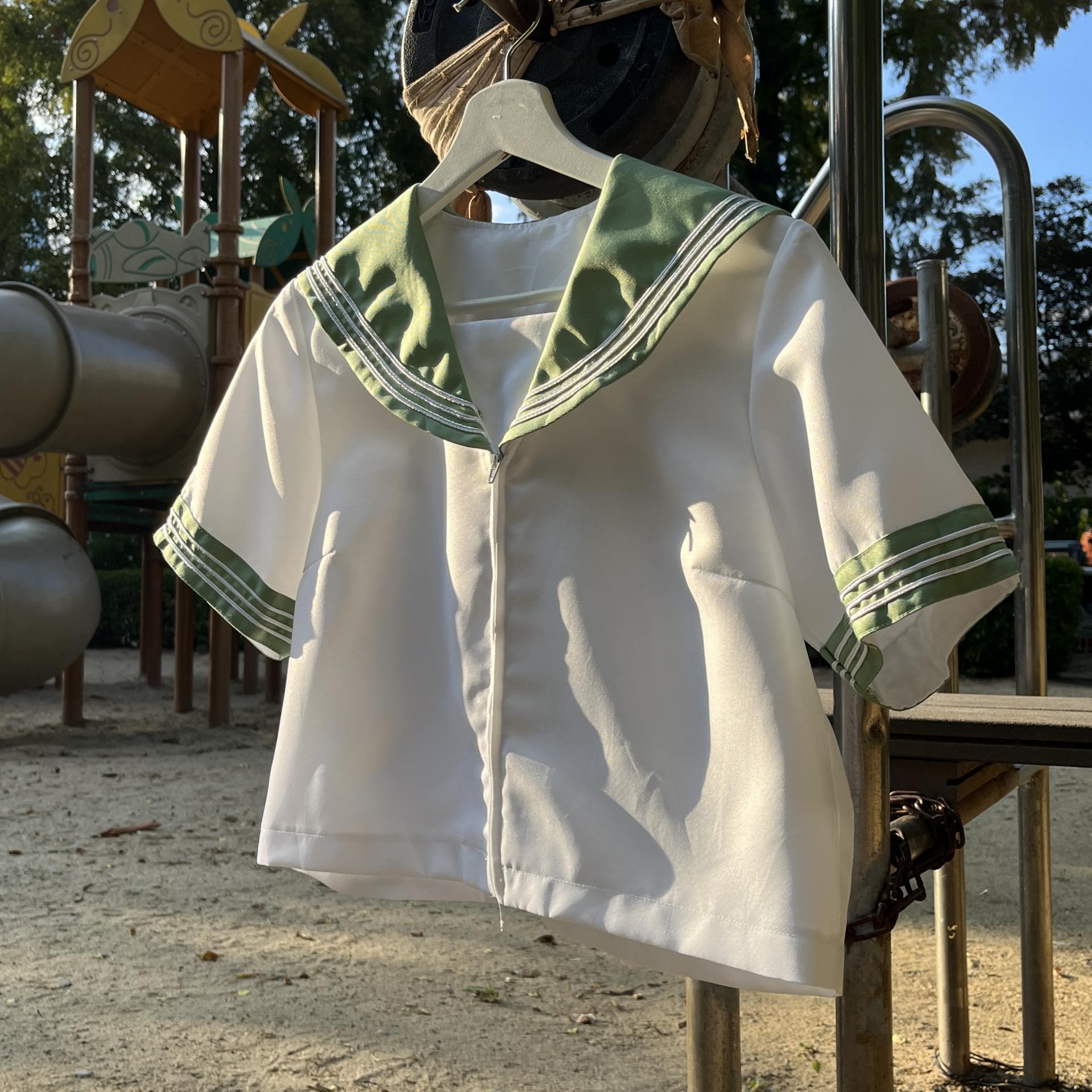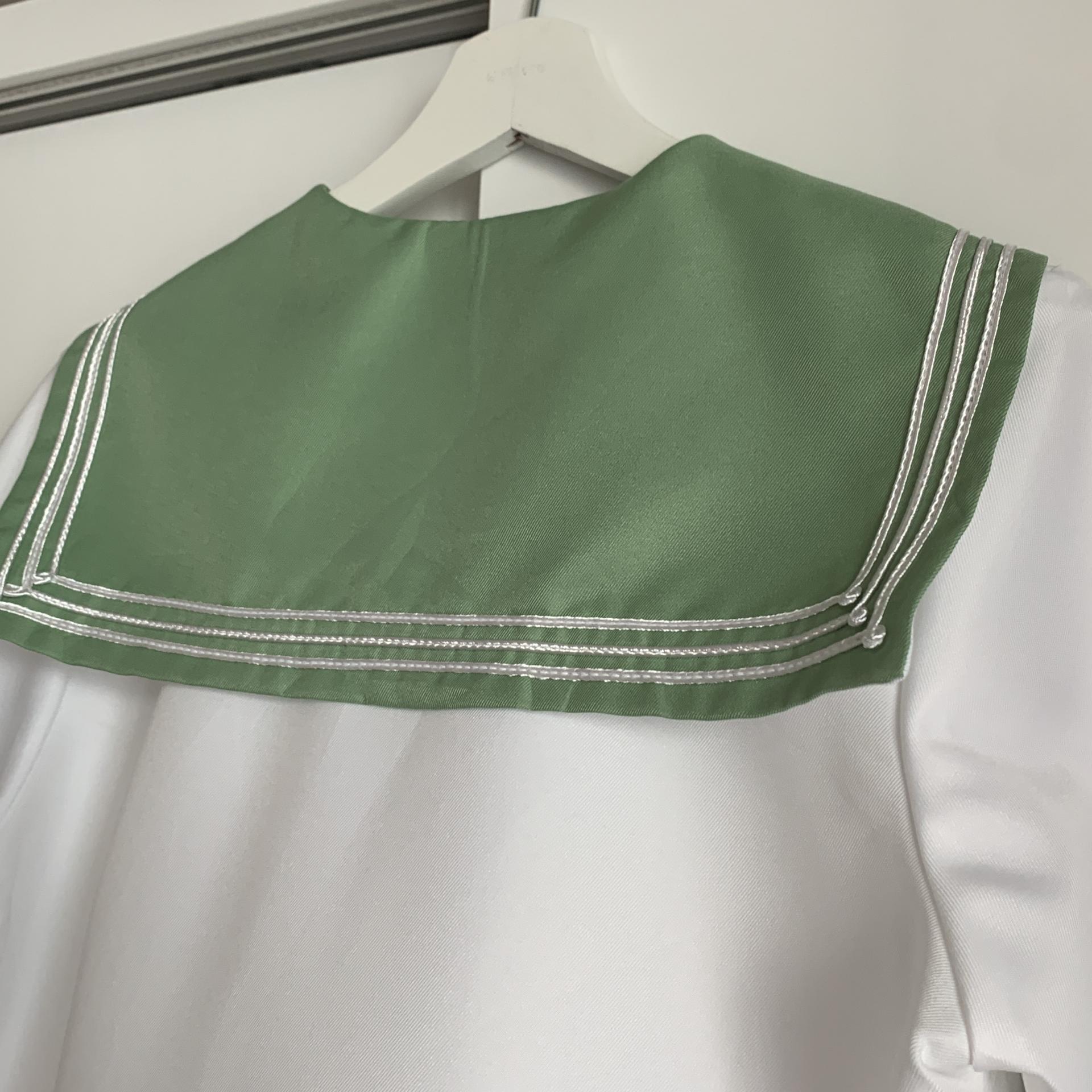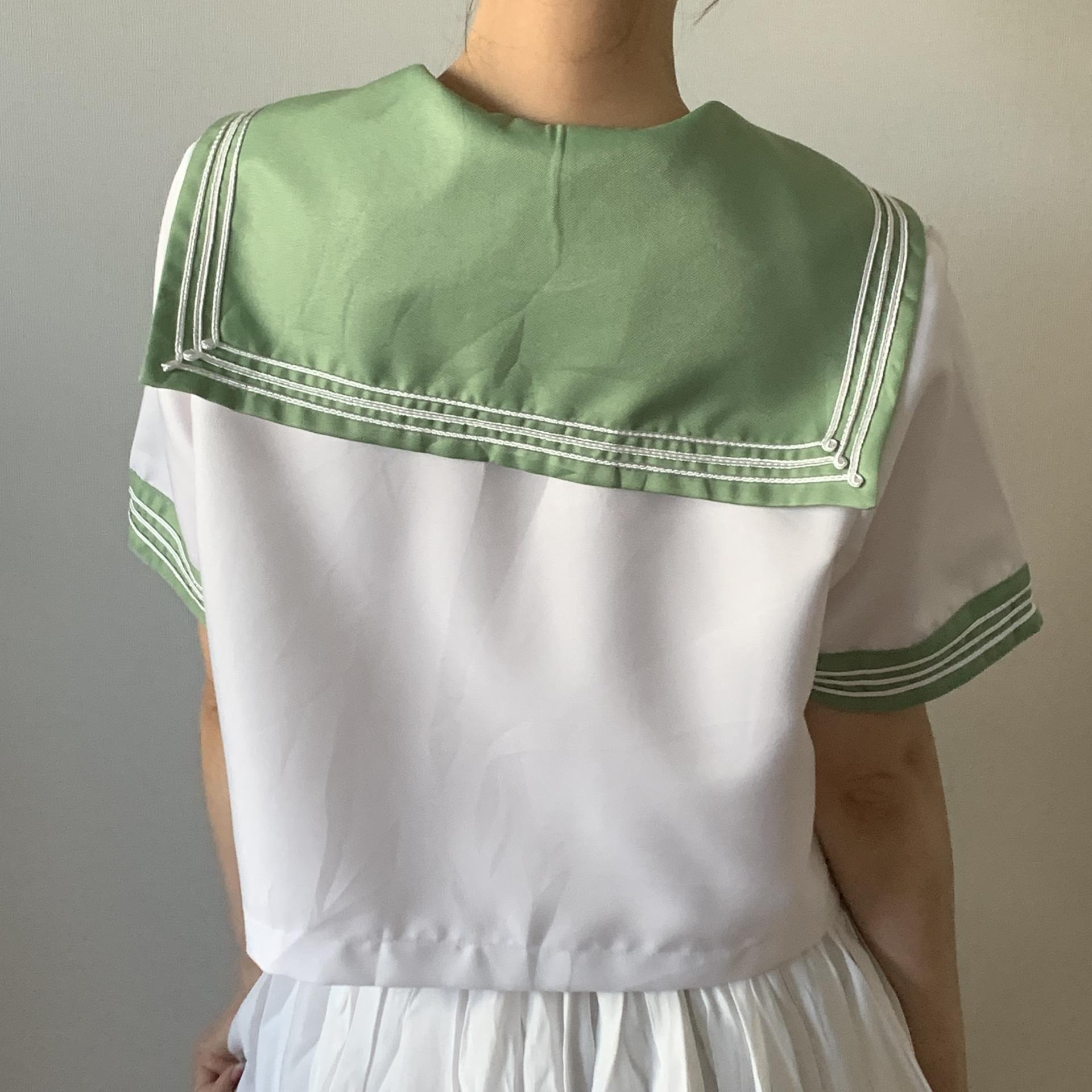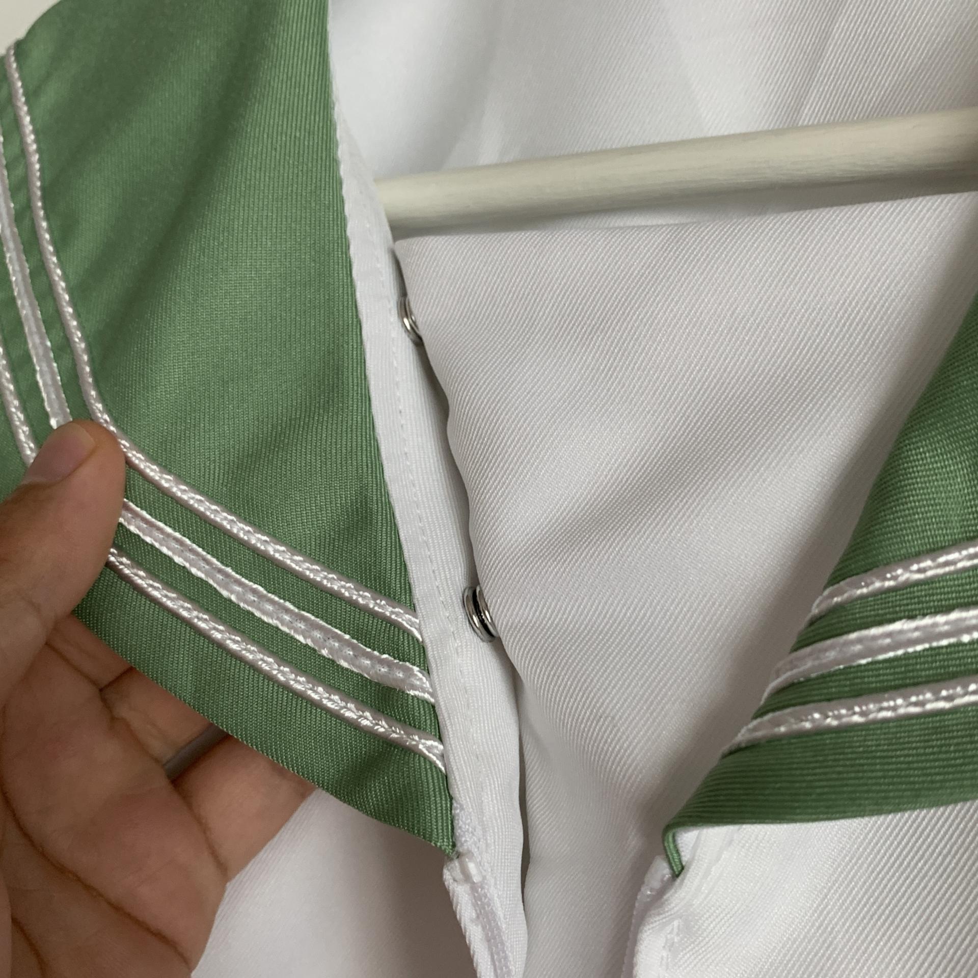 밝은 그리너리 컬러 카라 포인트가 돋보이는 일본 스쿨룩 제품입니다.