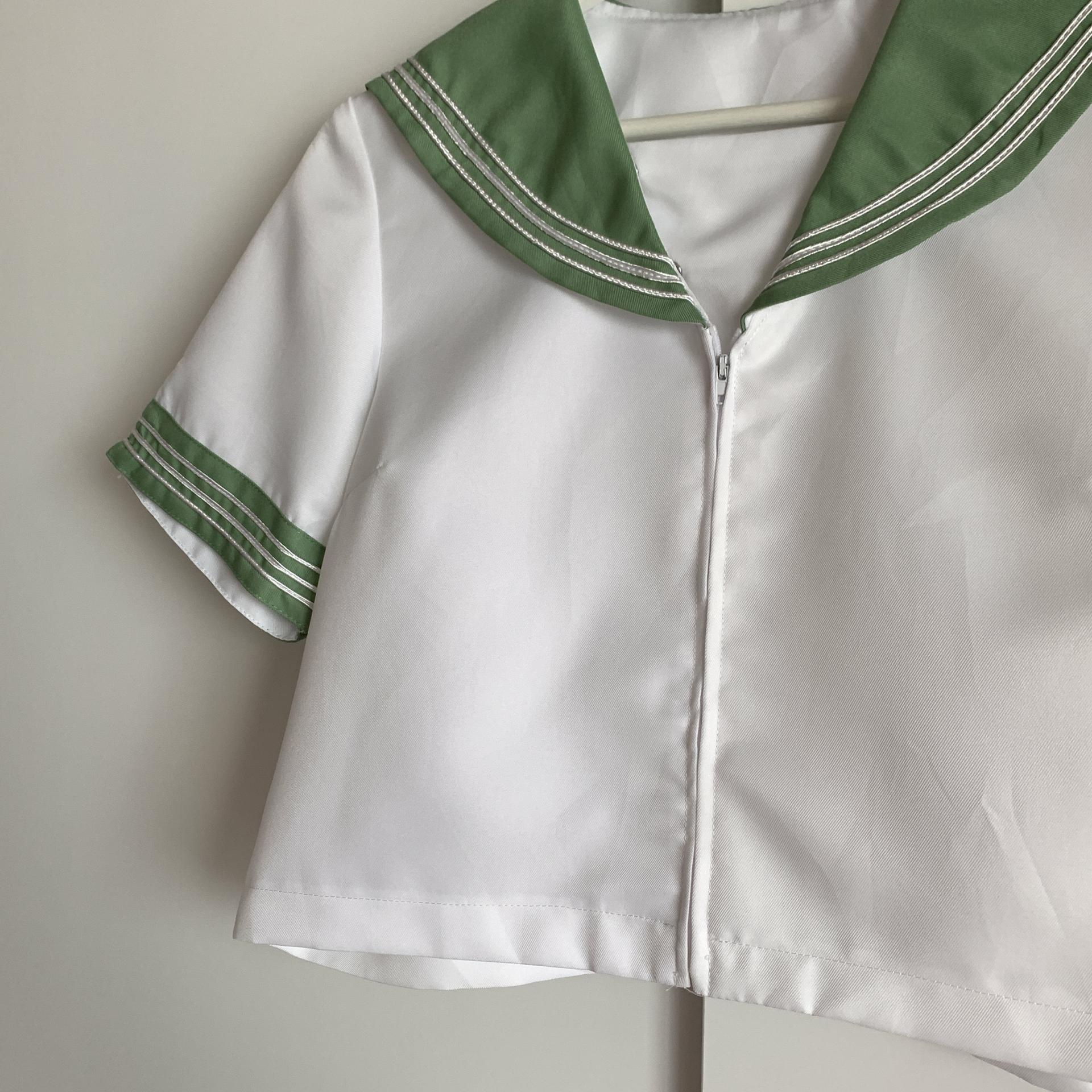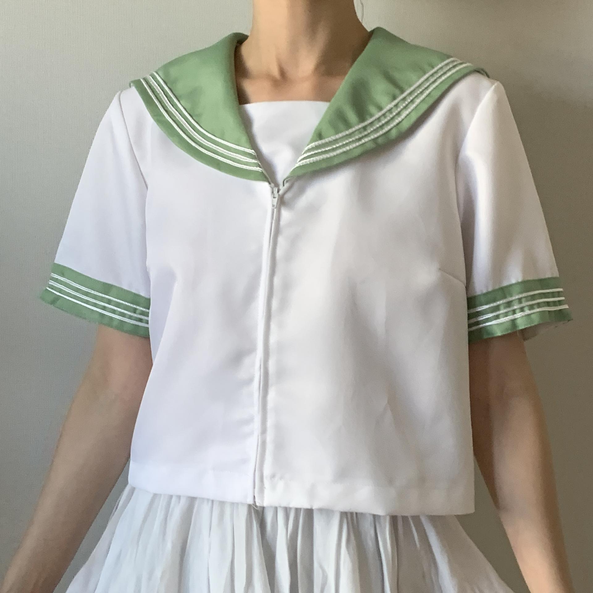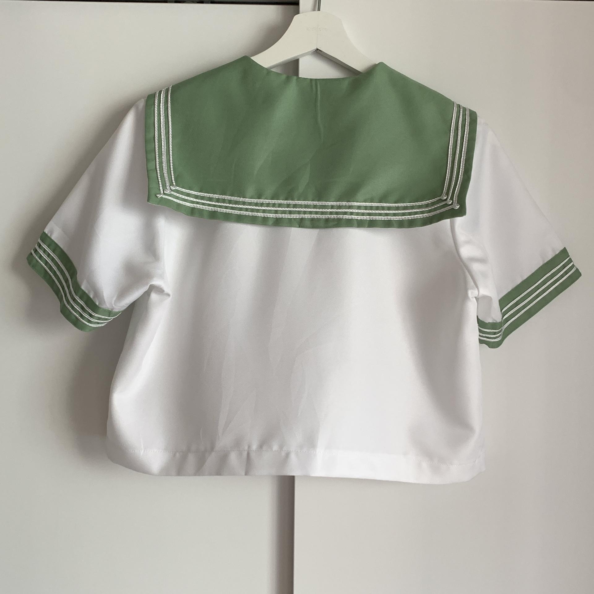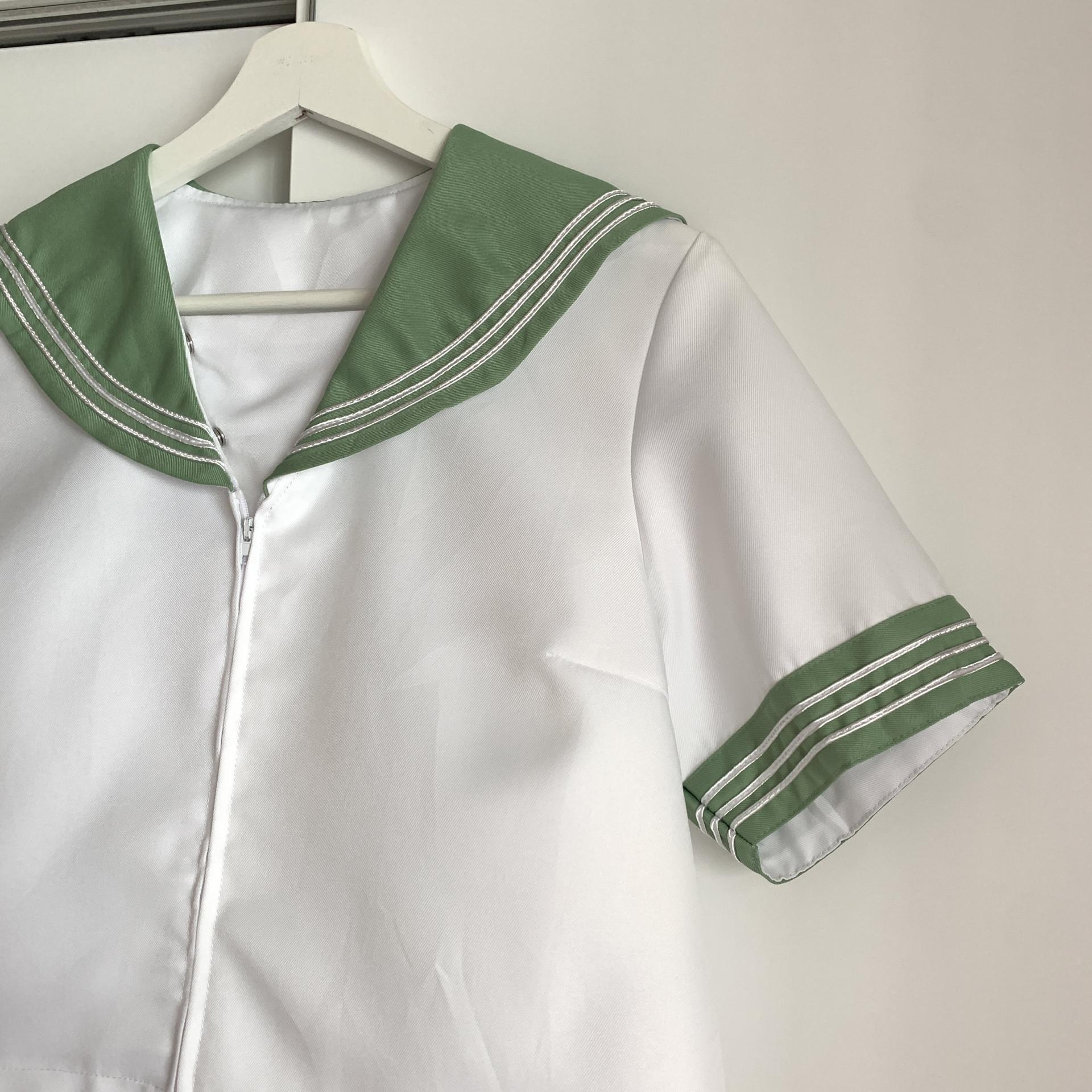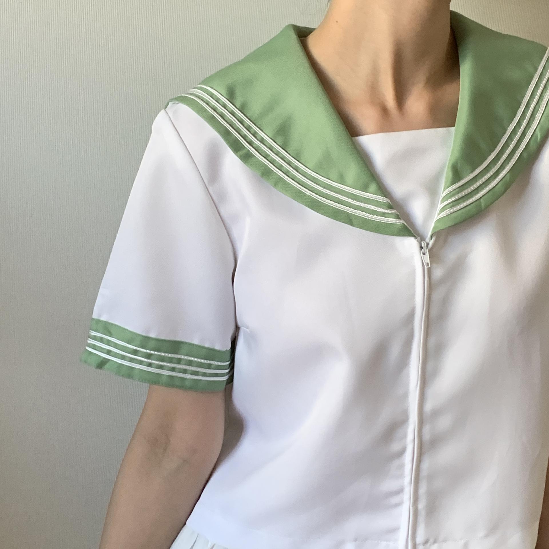 밝은 그리너리 컬러 카라 포인트가 돋보이는 일본 스쿨룩 제품입니다.