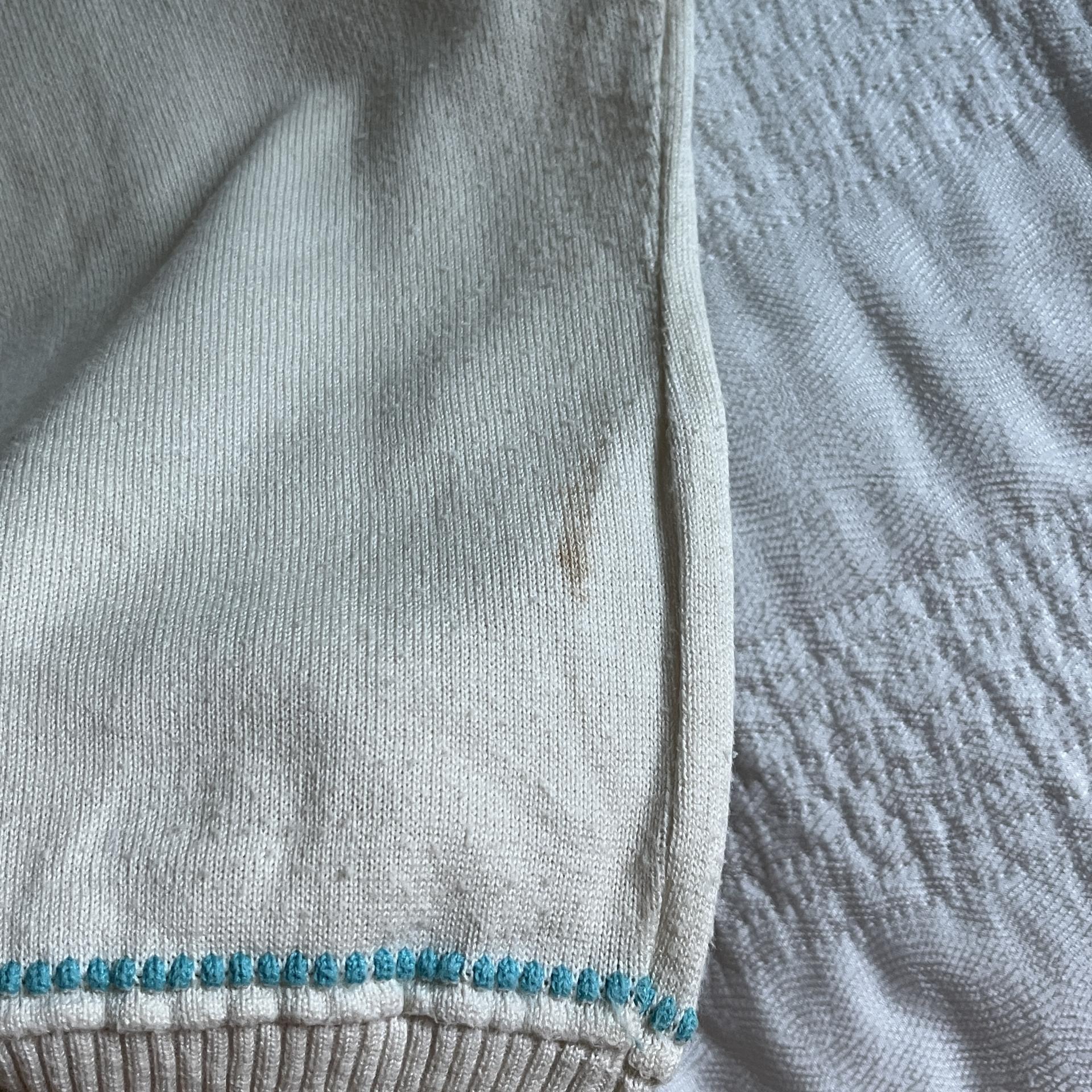 단독 집중 세탁을 진행하였지만 얼룩이 완벽하게 제거되지 않았으며, 코튼 사용감이 있는 컨디션입니다.