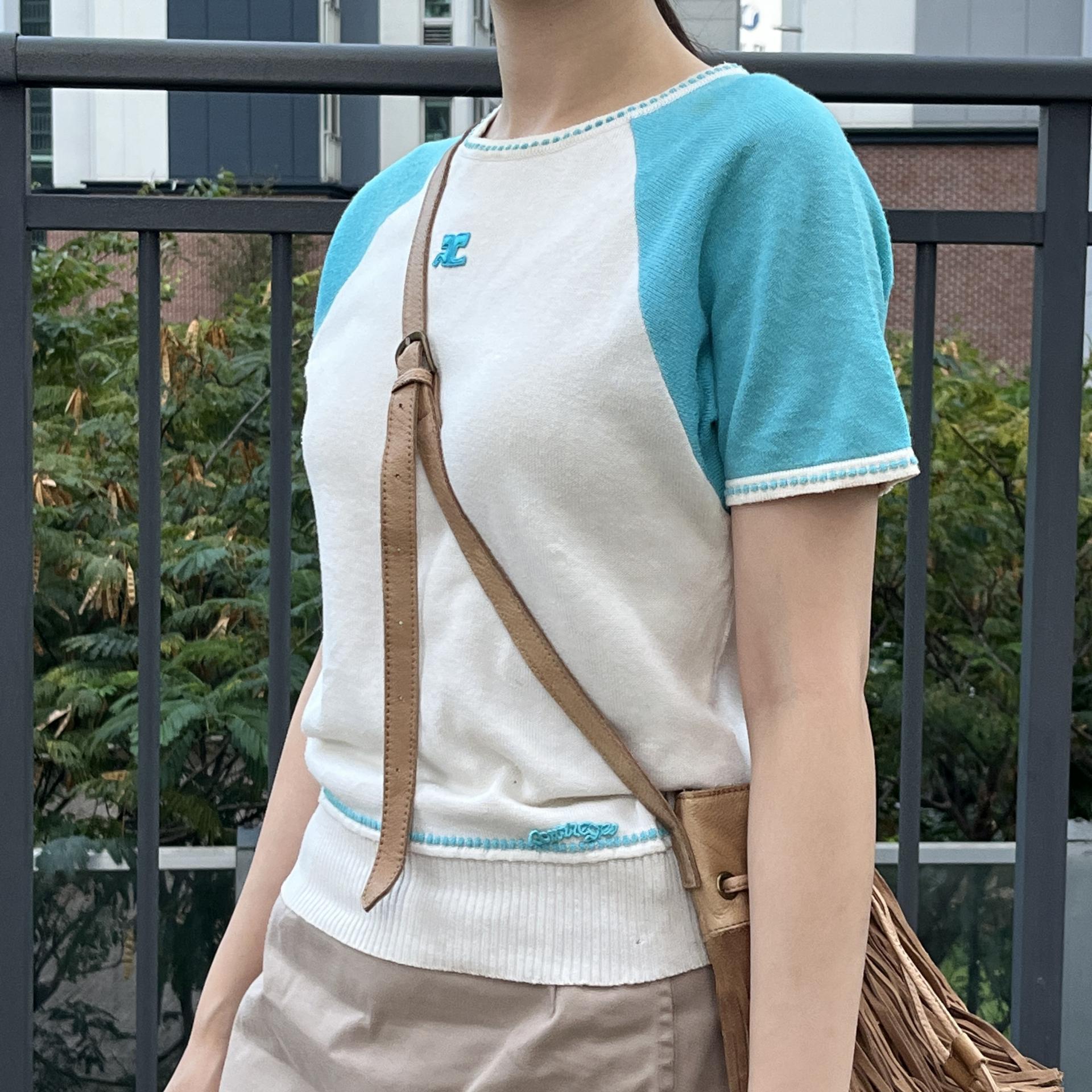 가벼운 무게감으로 모든 계절에 즐기기 좋은 쿠레쥬의 니트웨어 제품입니다.
