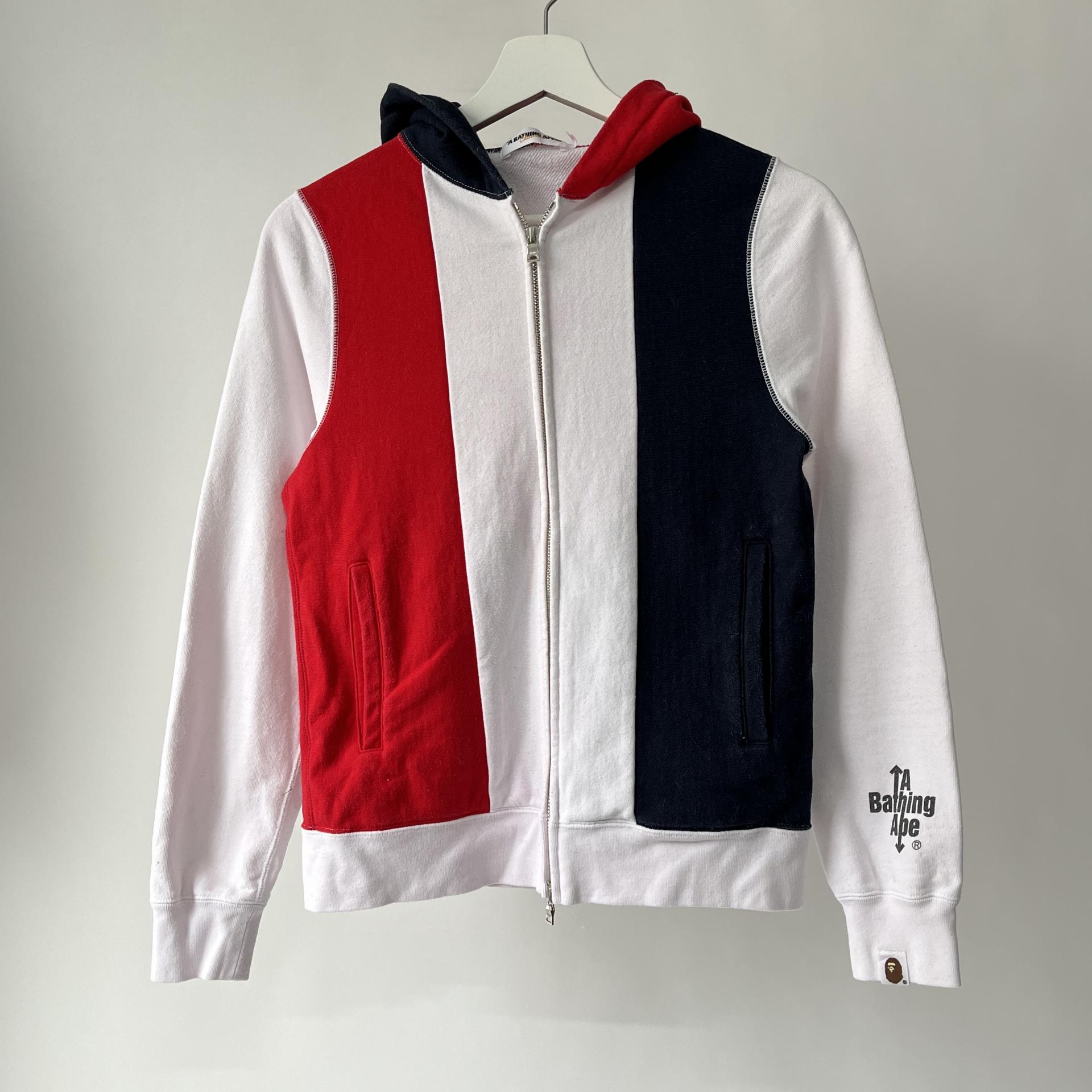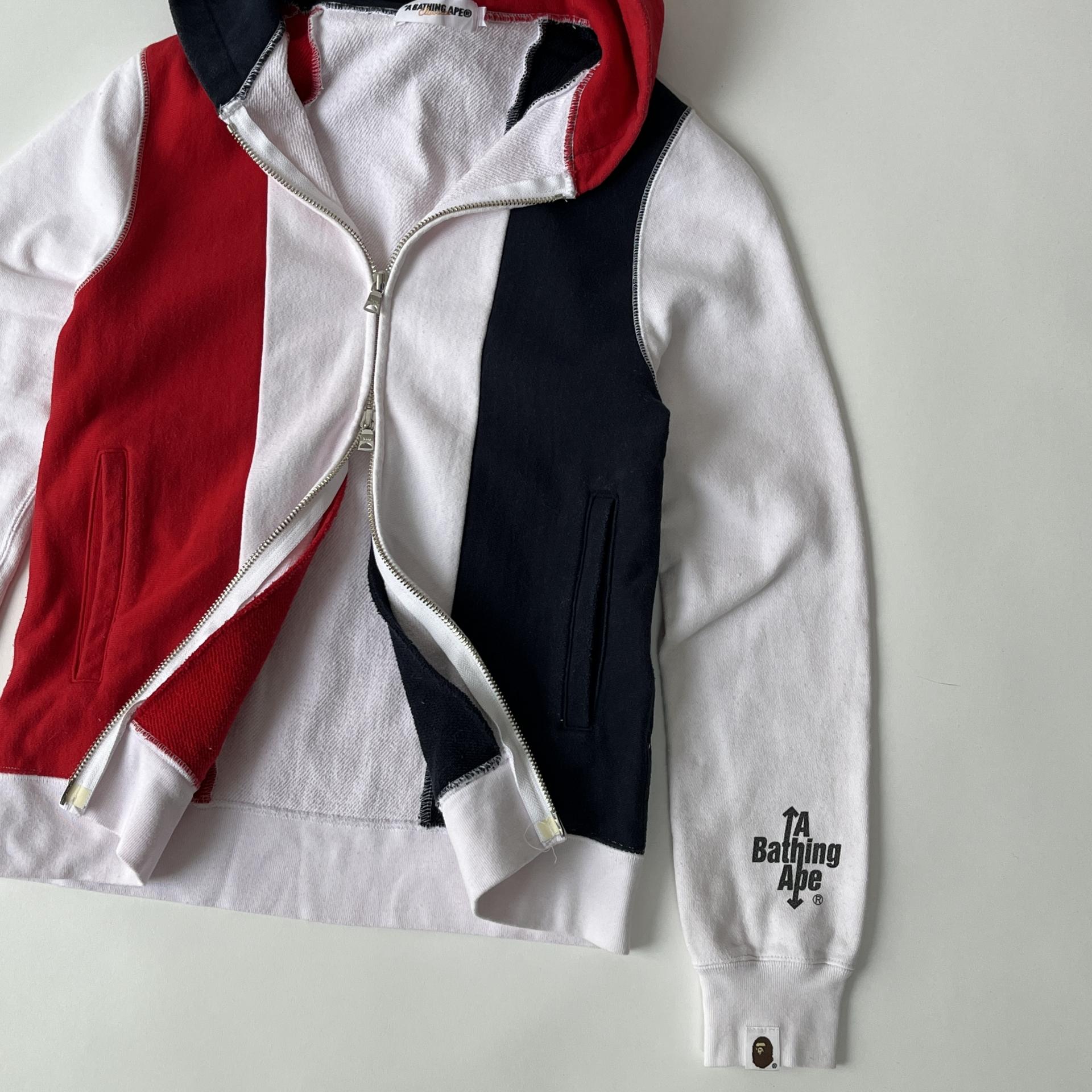 소매 포인트와 컬러 블럭 바디 포인트가 돋보이는 베이프의 후드 집업 아이템입니다!