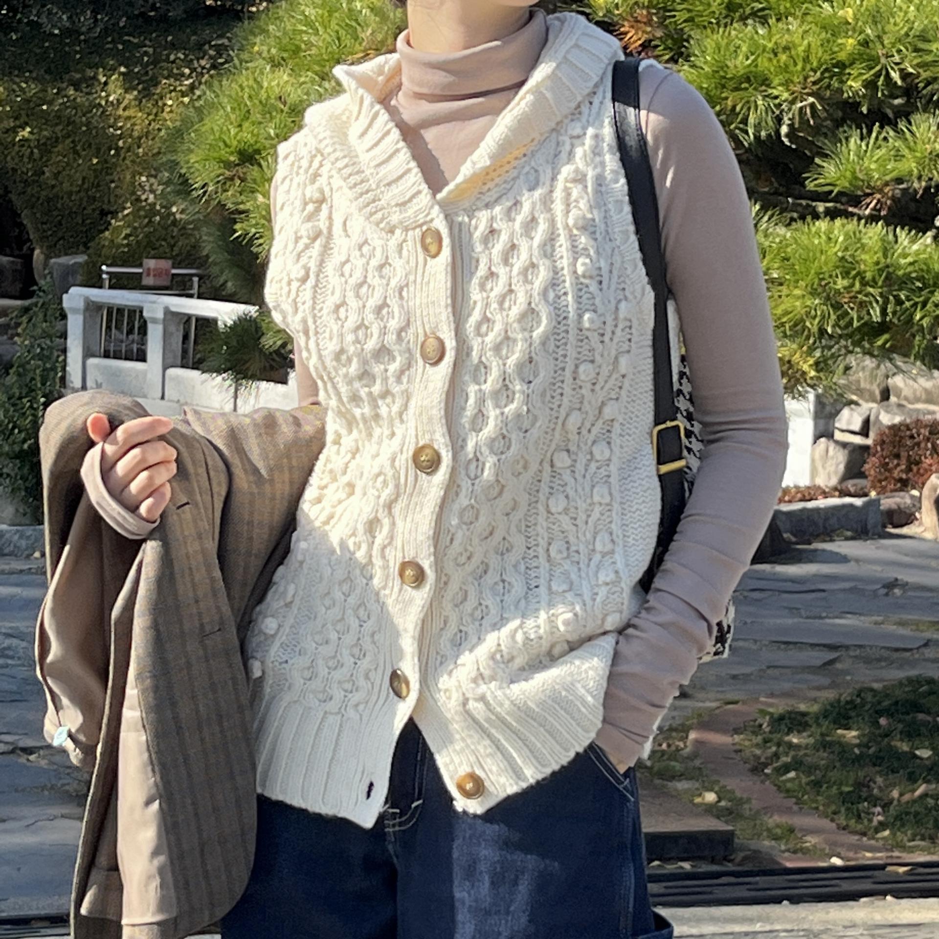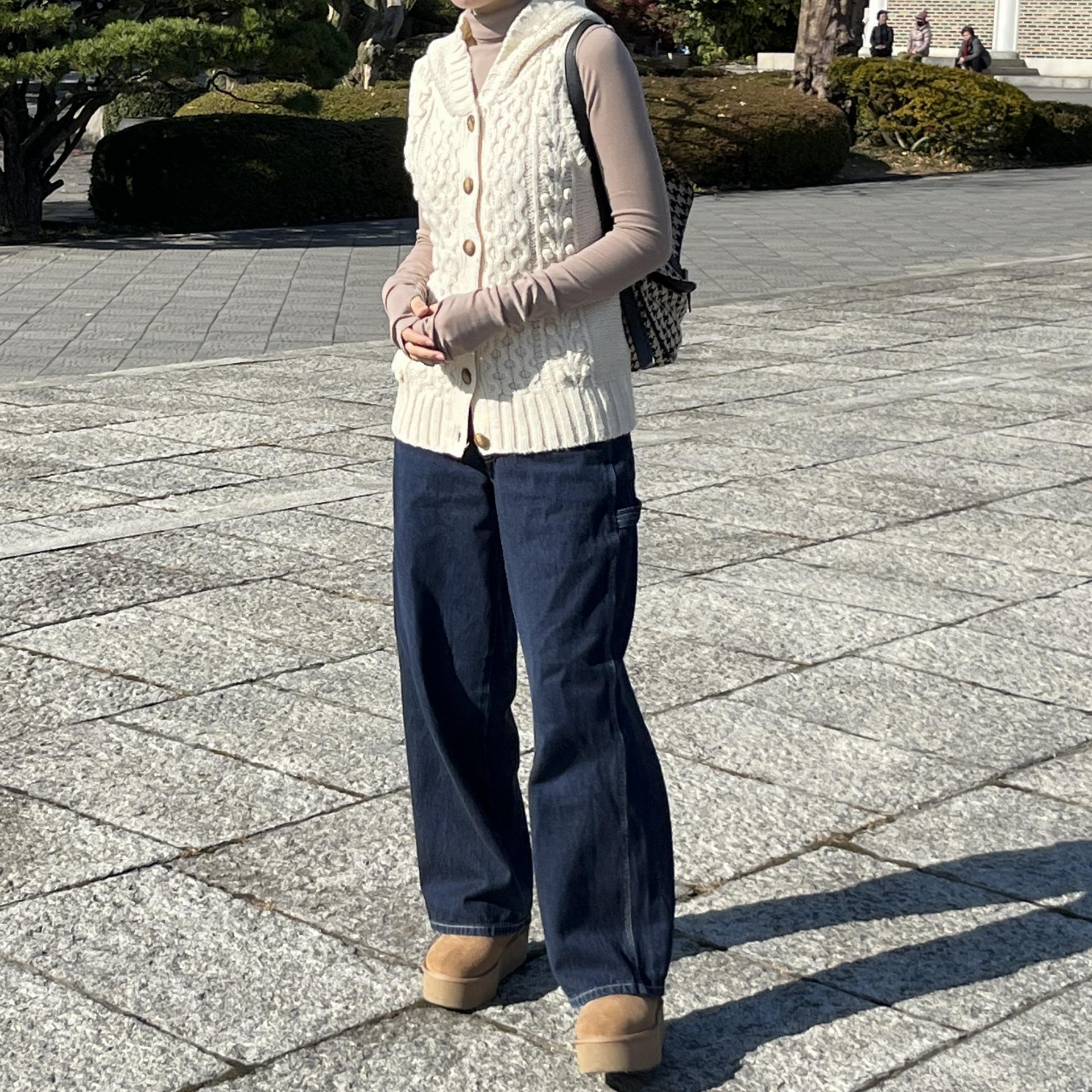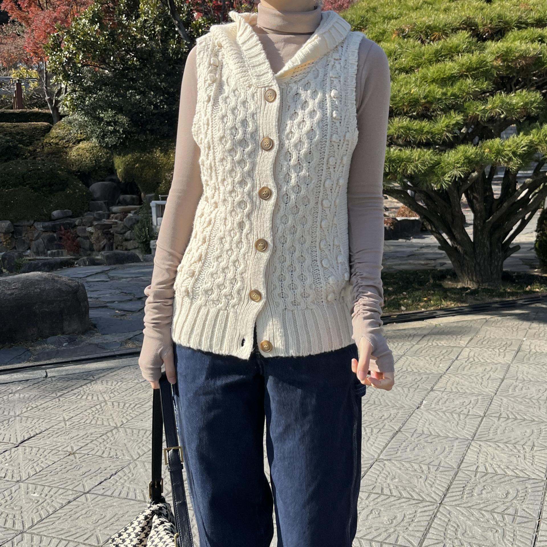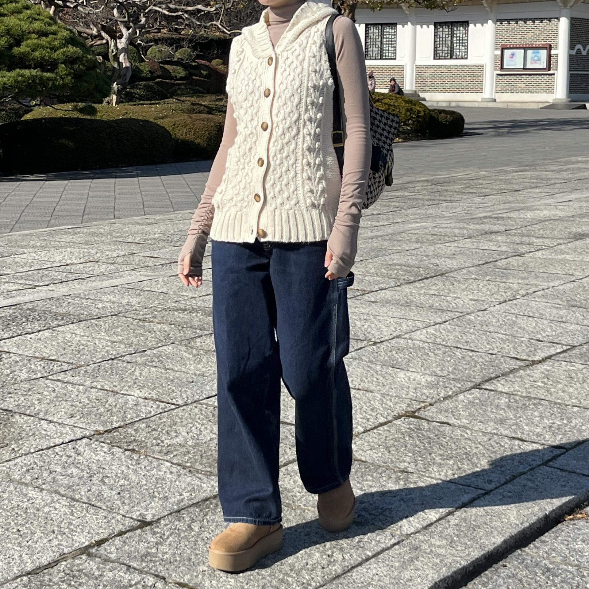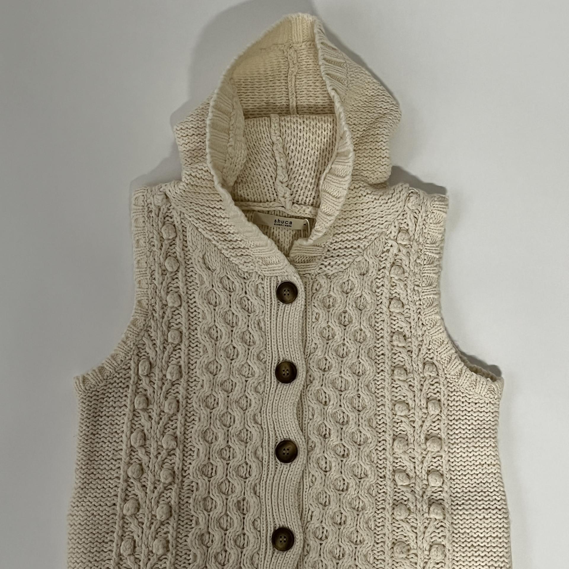 일본 현지 여성 브랜드 shuca의 니트 후드 베스트 제품입니다.