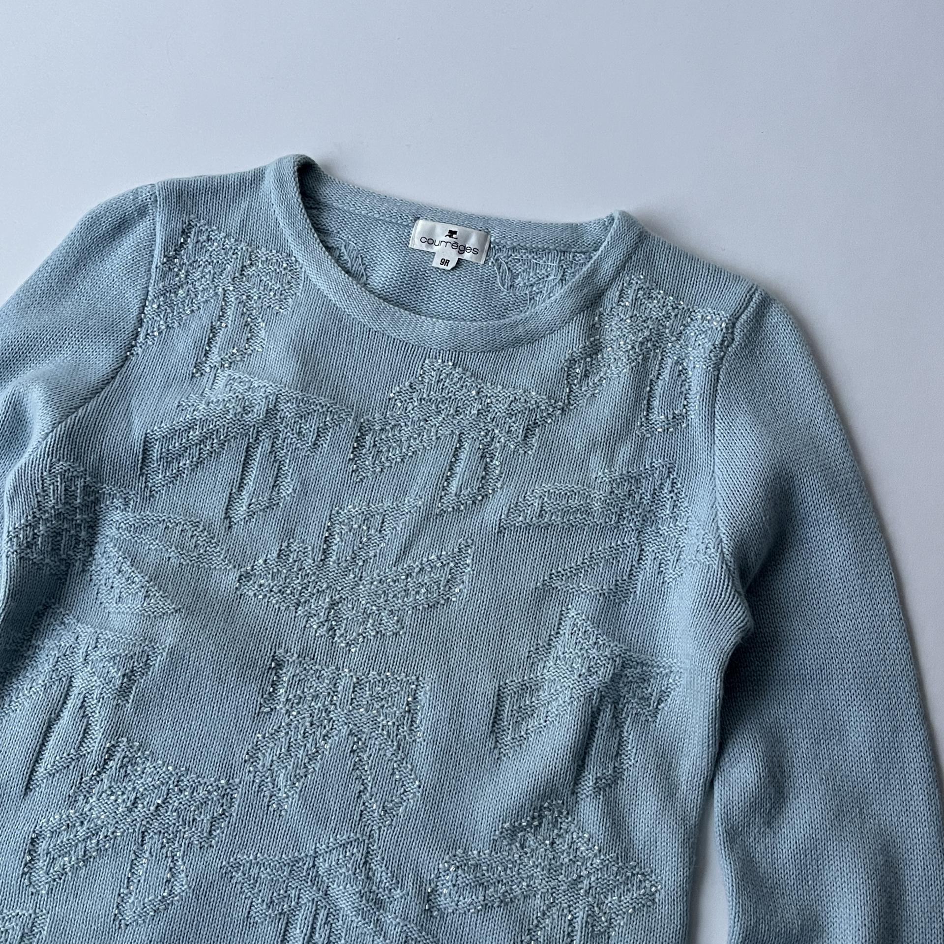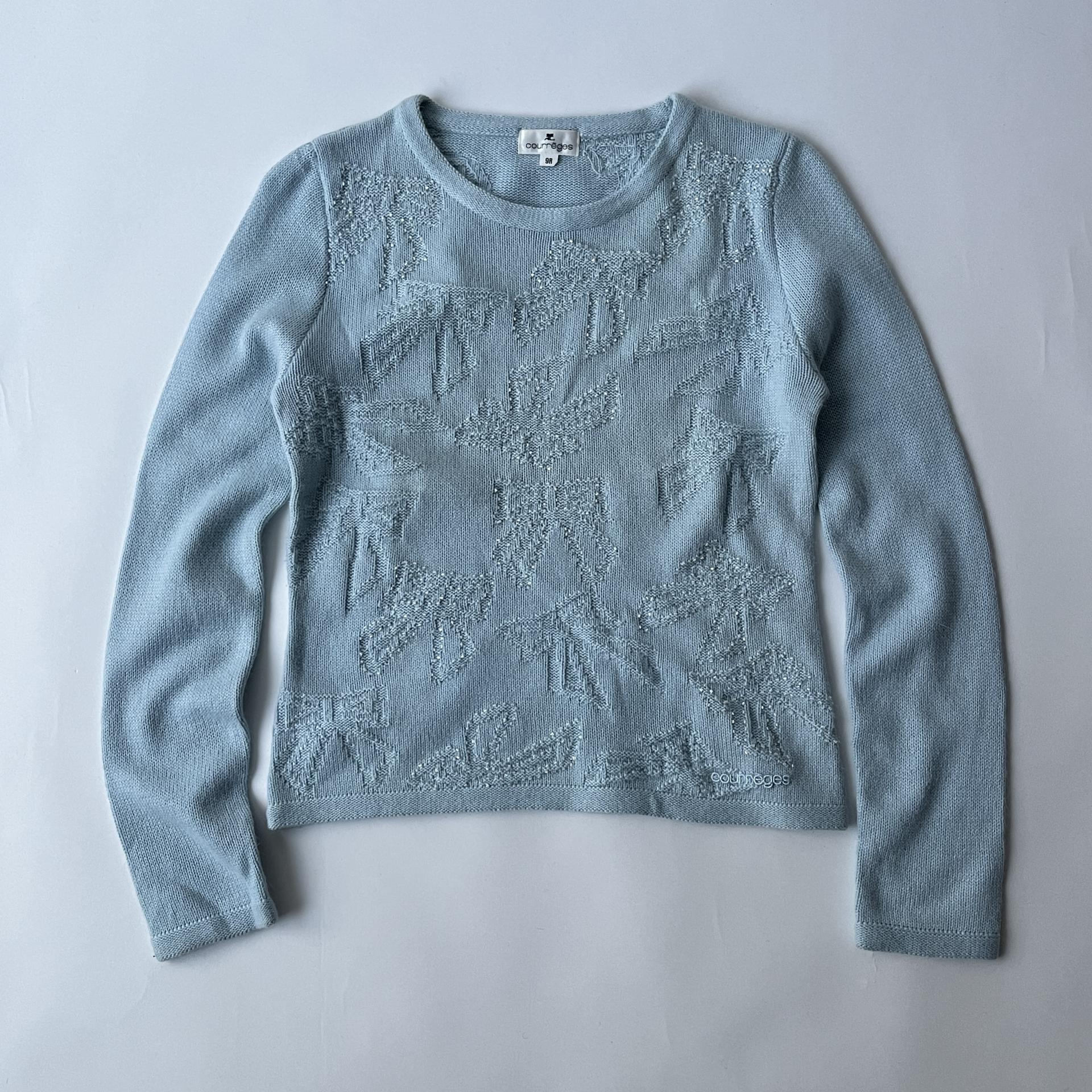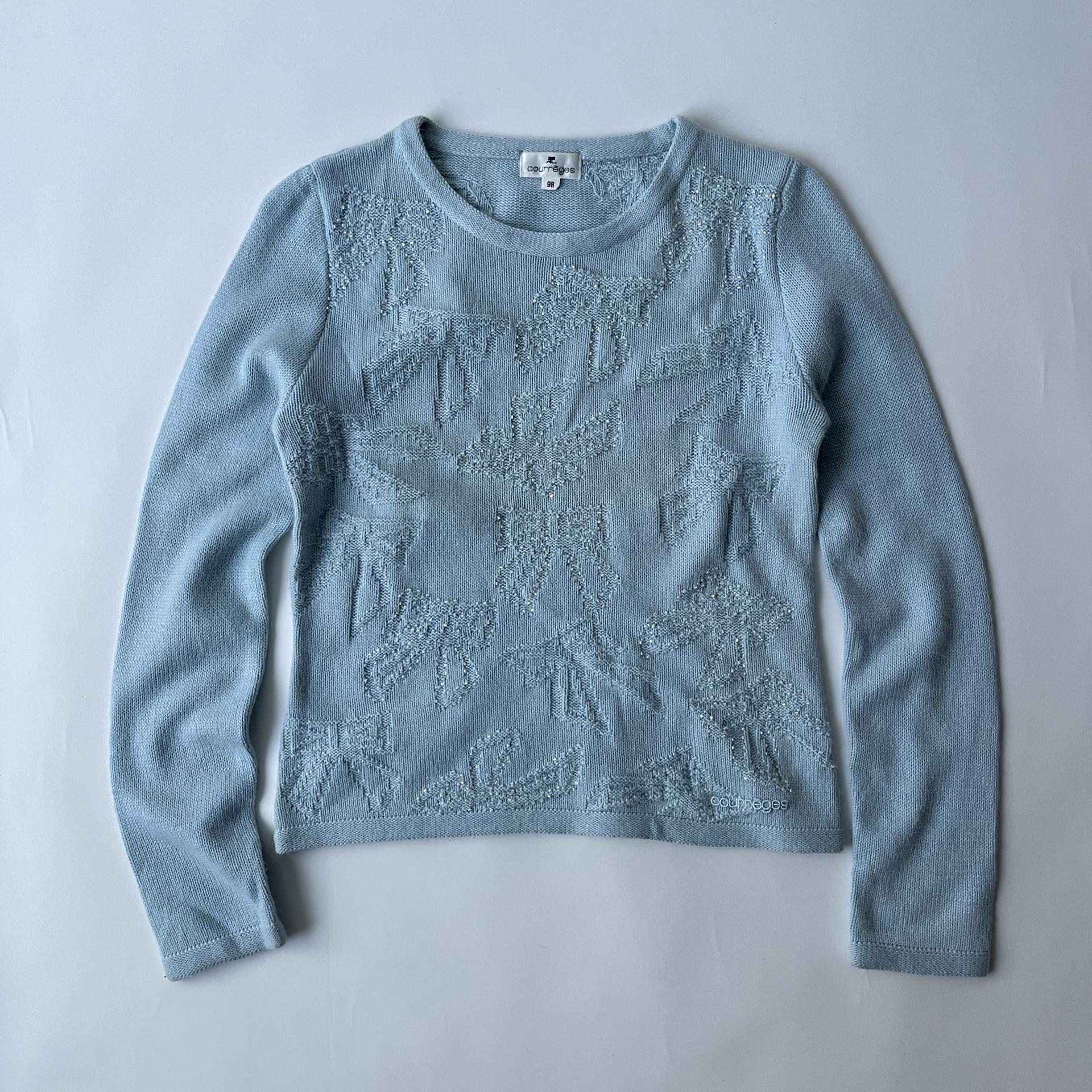 리본 패턴과 비즈 장식 포인트가 인상적인 90년대 쿠레쥬 사의 니트 제품입니다.
