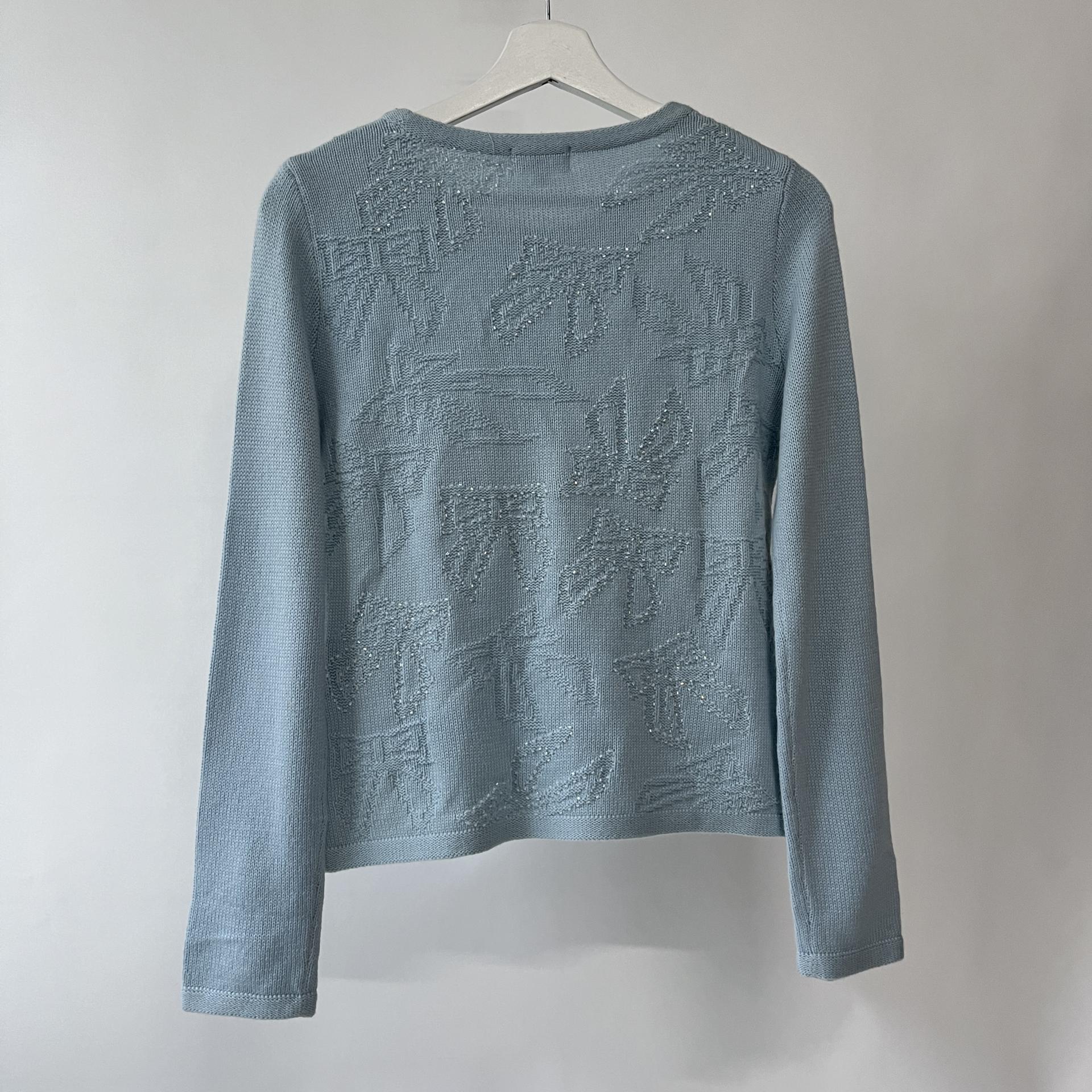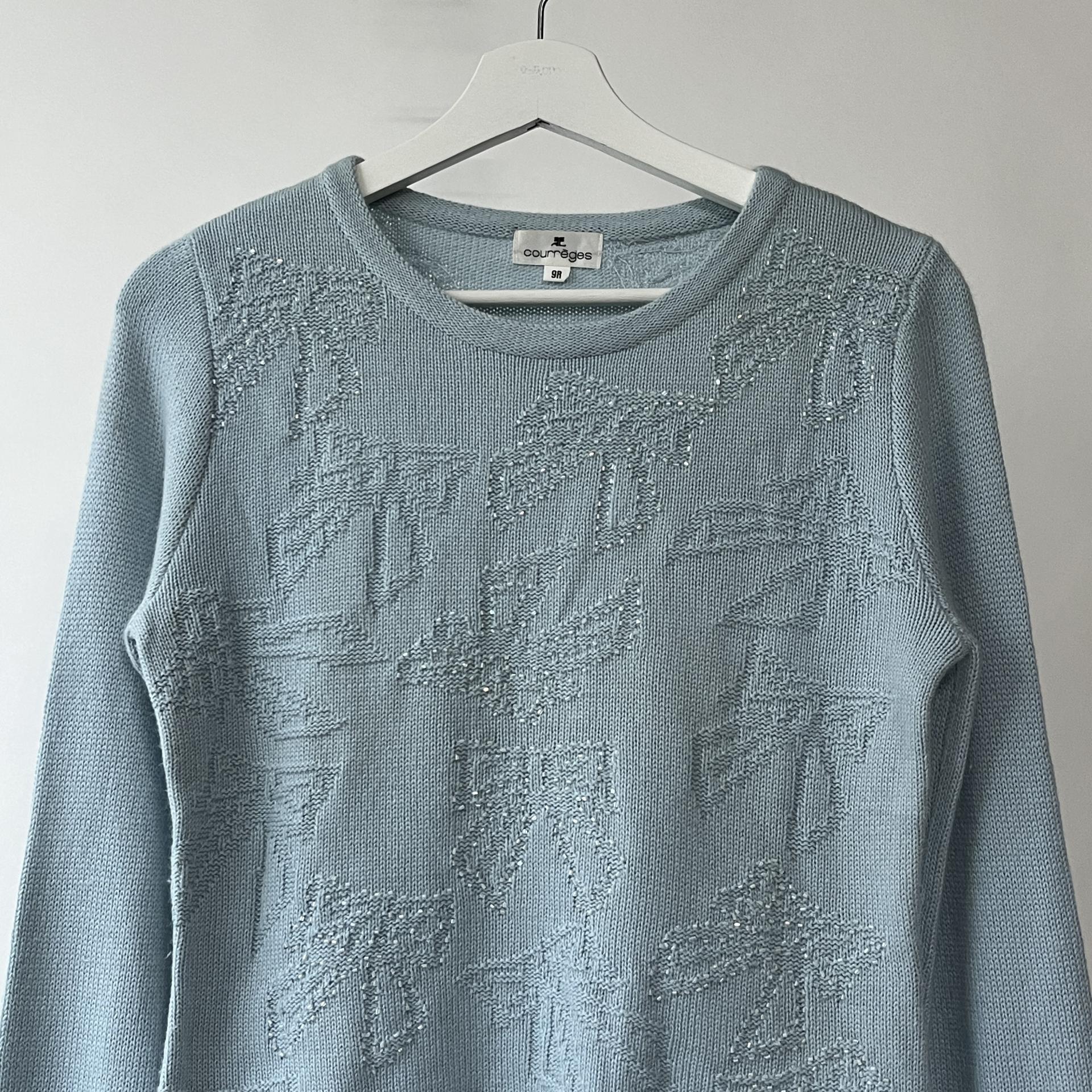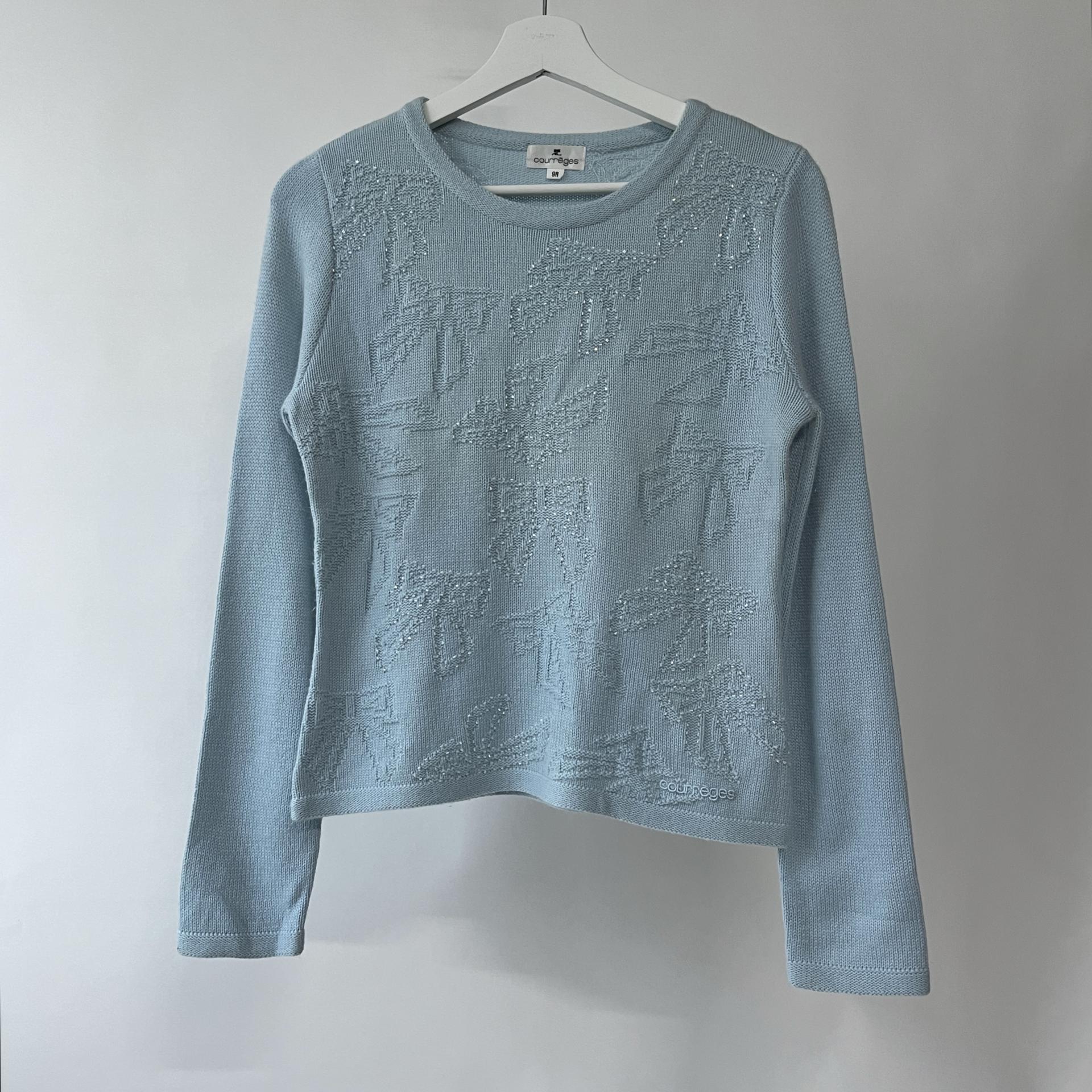 리본 패턴과 비즈 장식 포인트가 인상적인 90년대 쿠레쥬 사의 니트 제품입니다.