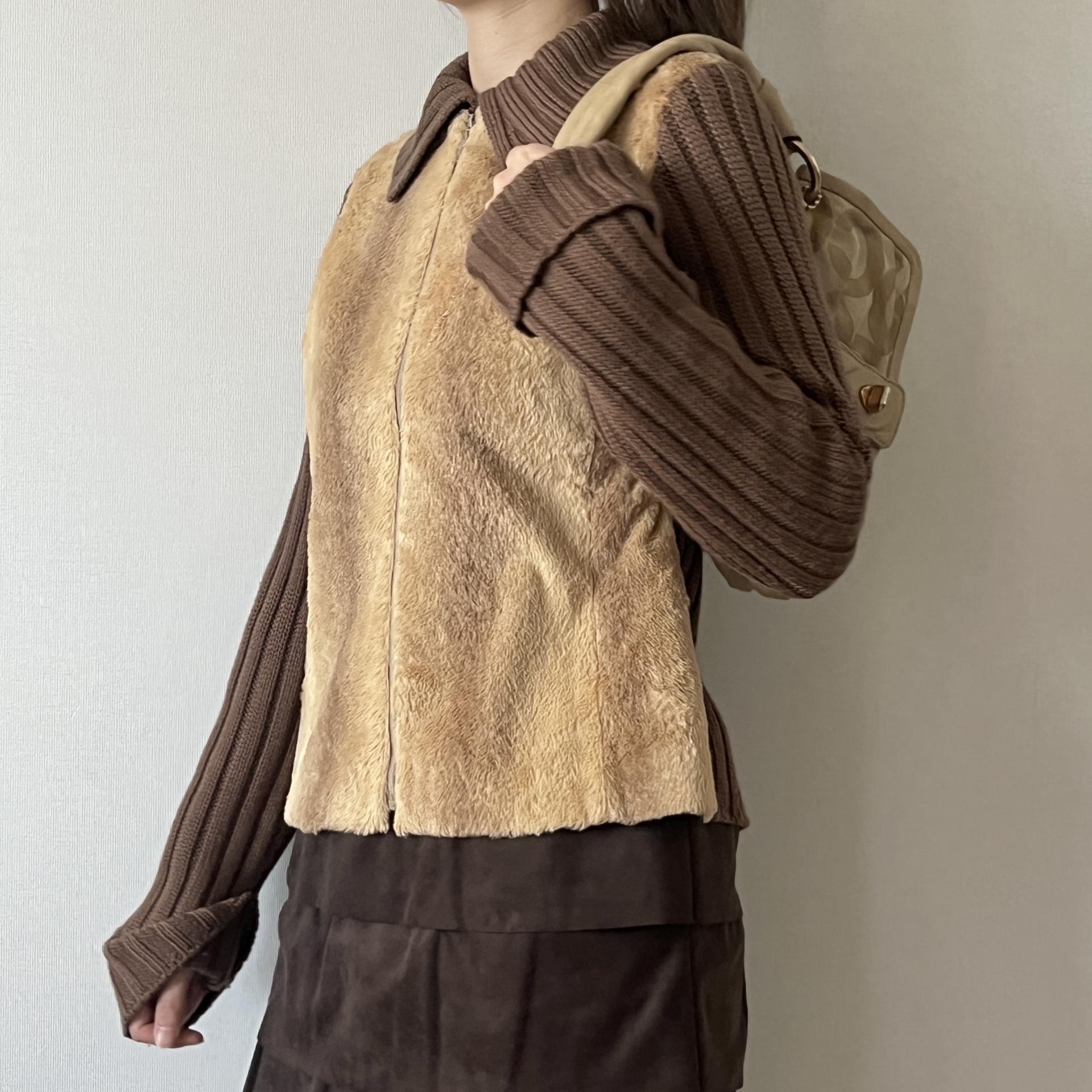 일본 현지 브랜드 킨크사의 니트 퍼 집업 제품입니다.