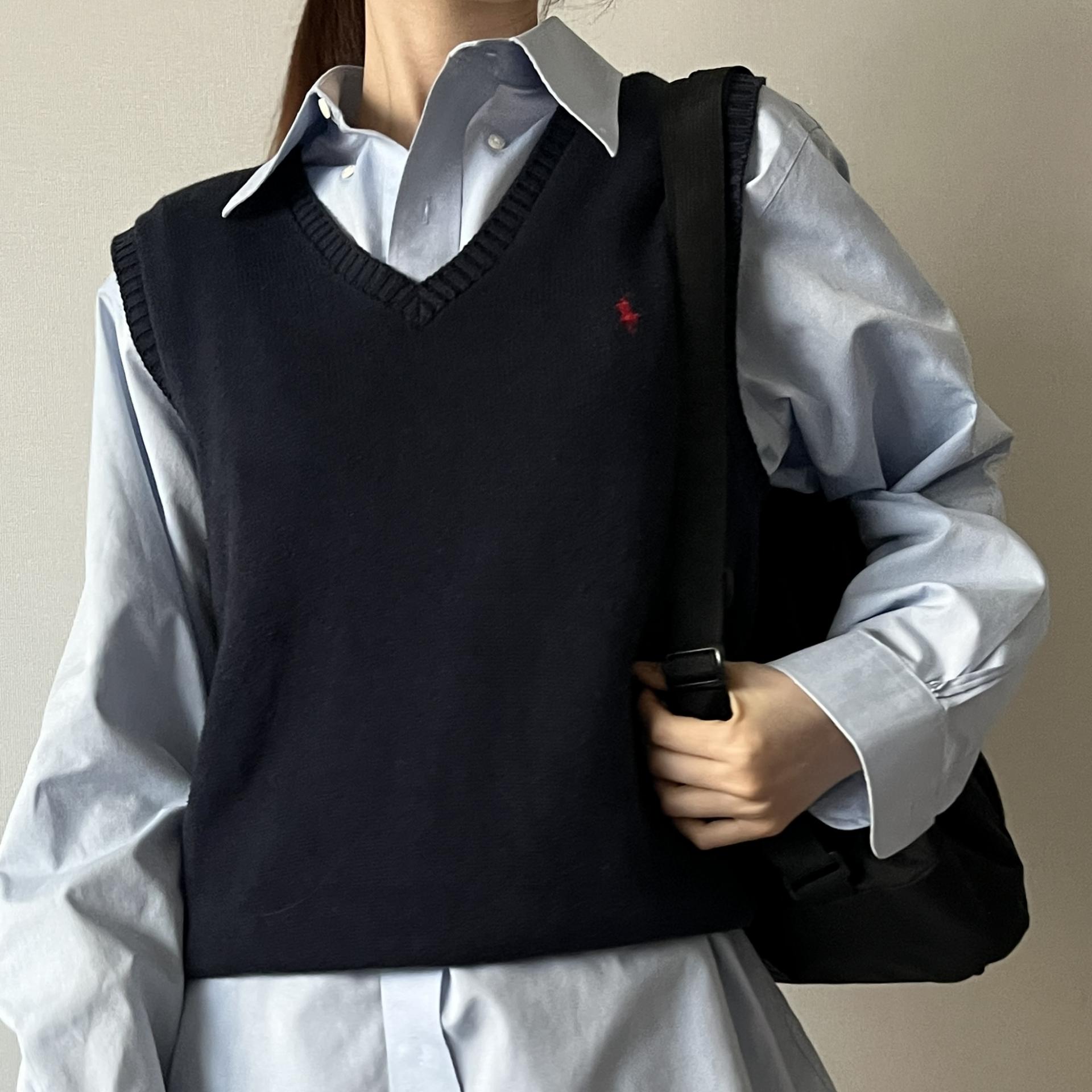 폴로 랄프로렌의 코튼 100% 브이 넥 니트 베스트 제품 !