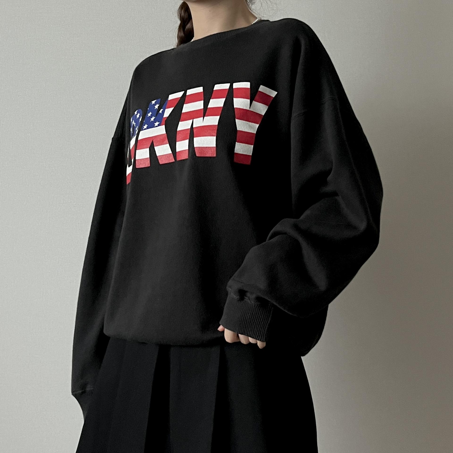 편안하고 가벼운 착용감으로 즐기실 수 있는 DKNY JEANS 라인의 90년대 made in USA 스웨트셔츠 제품입니다.