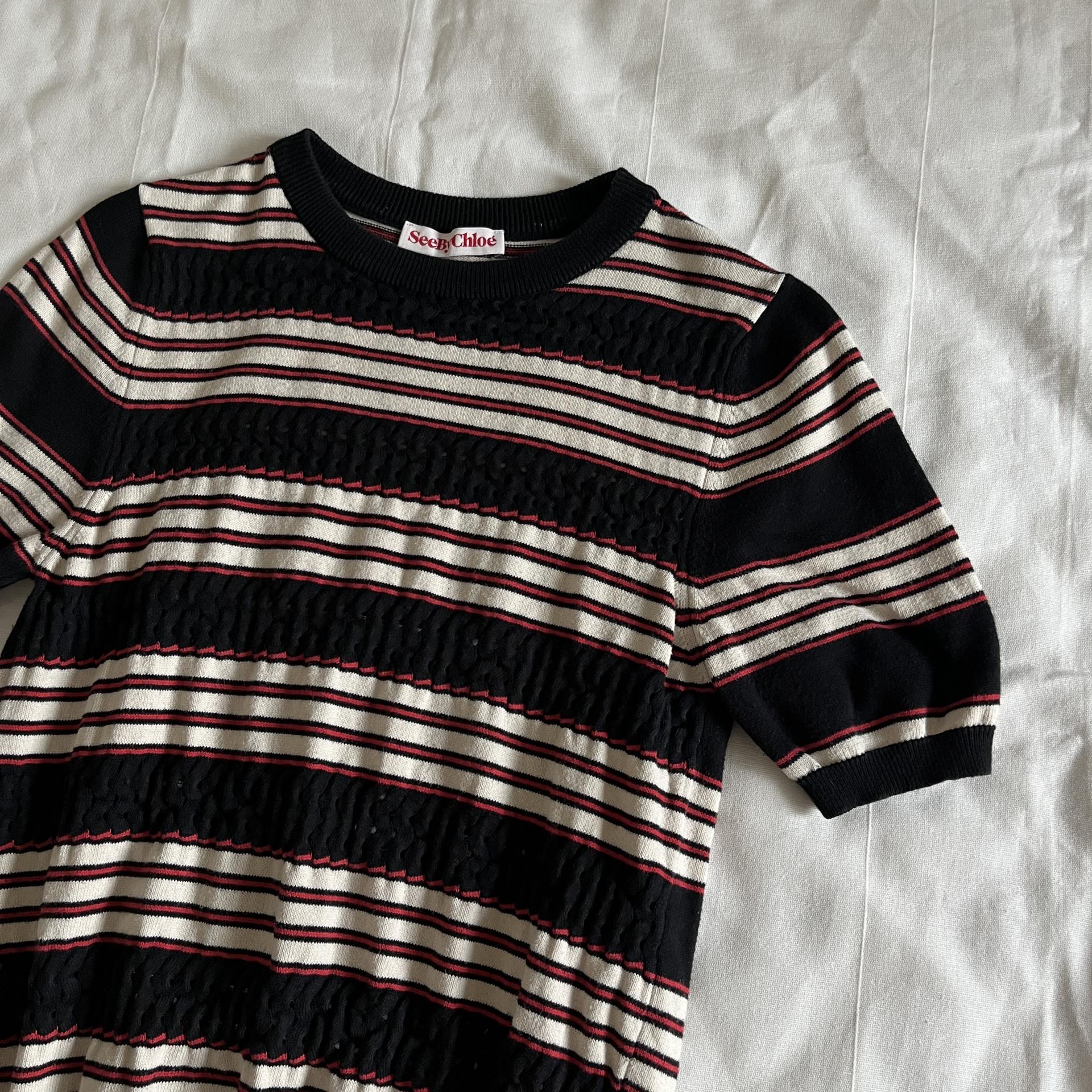 끌로에의 세컨 라인 SEE by CHLOE 의 펀칭 포인트 스트라이프 니트 제품입니다.
