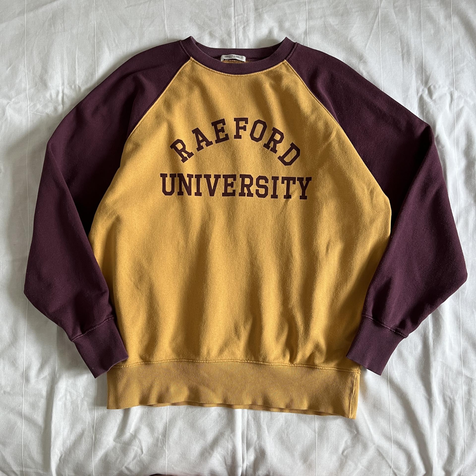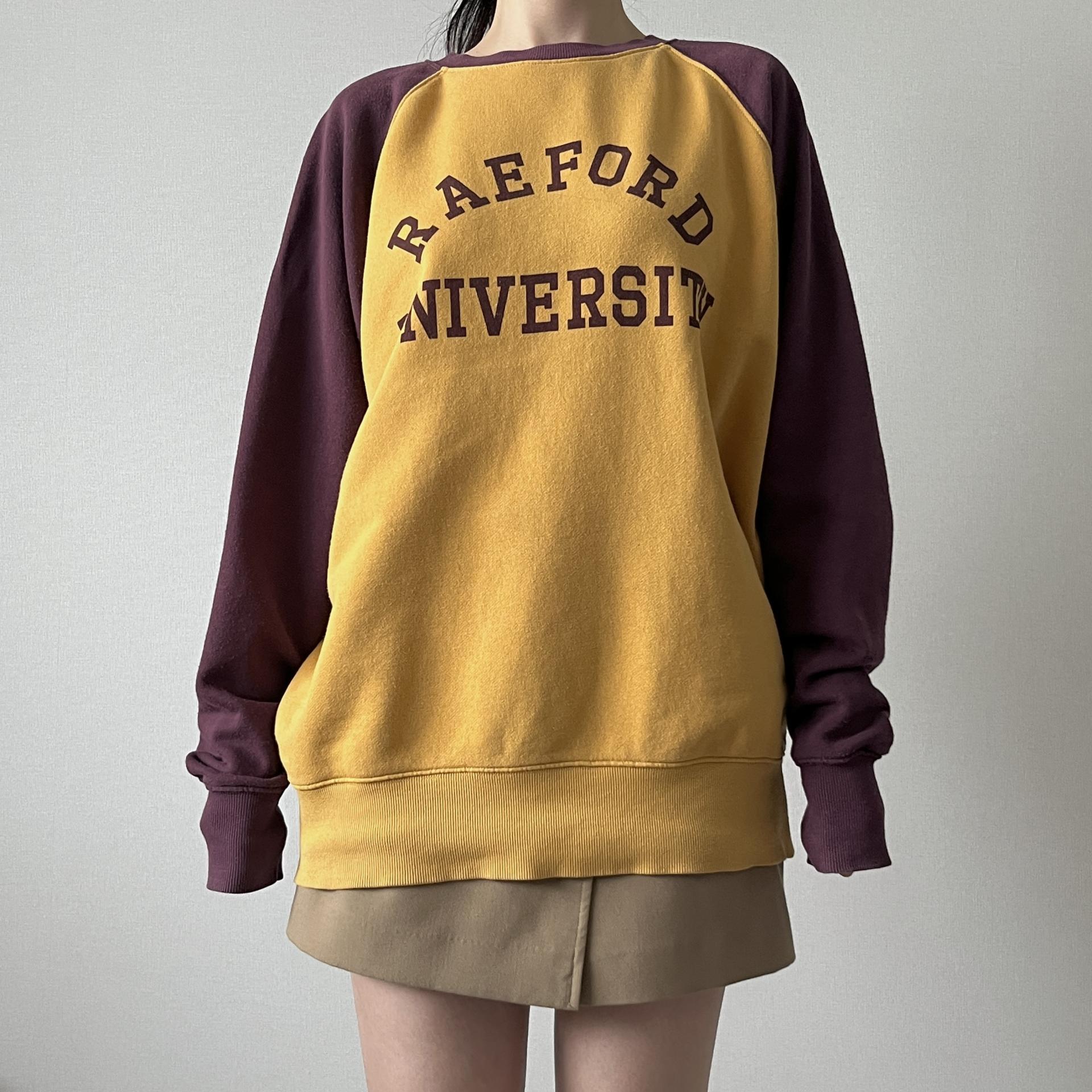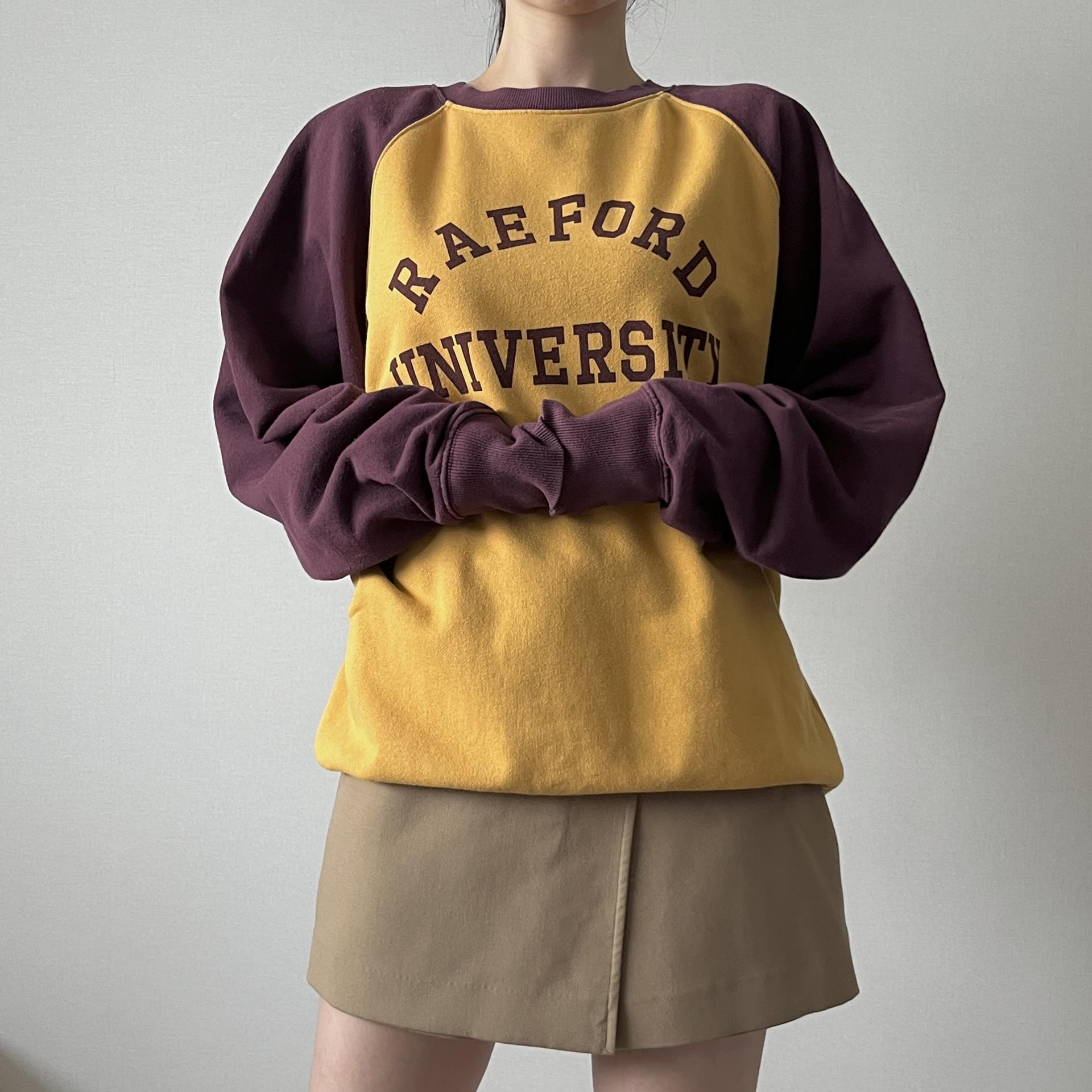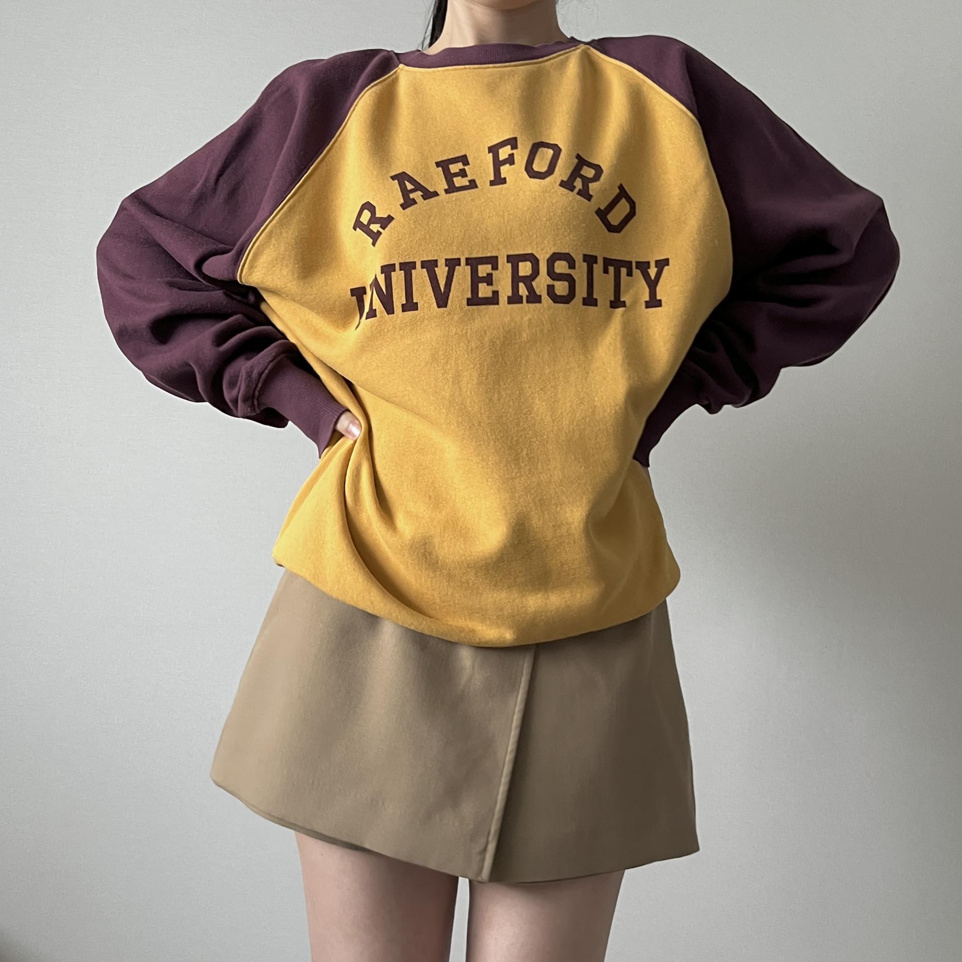 빈티지한 무드로 즐기시기 좋은 프릭스 스토어의 " Raeford University " 스웨트셔츠 제품입니다.
