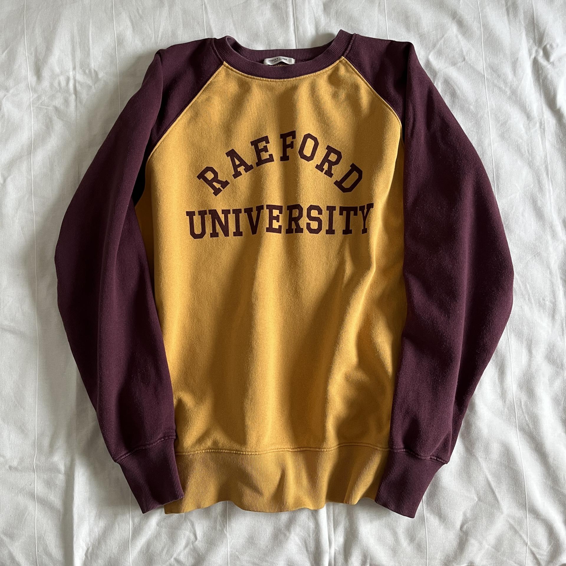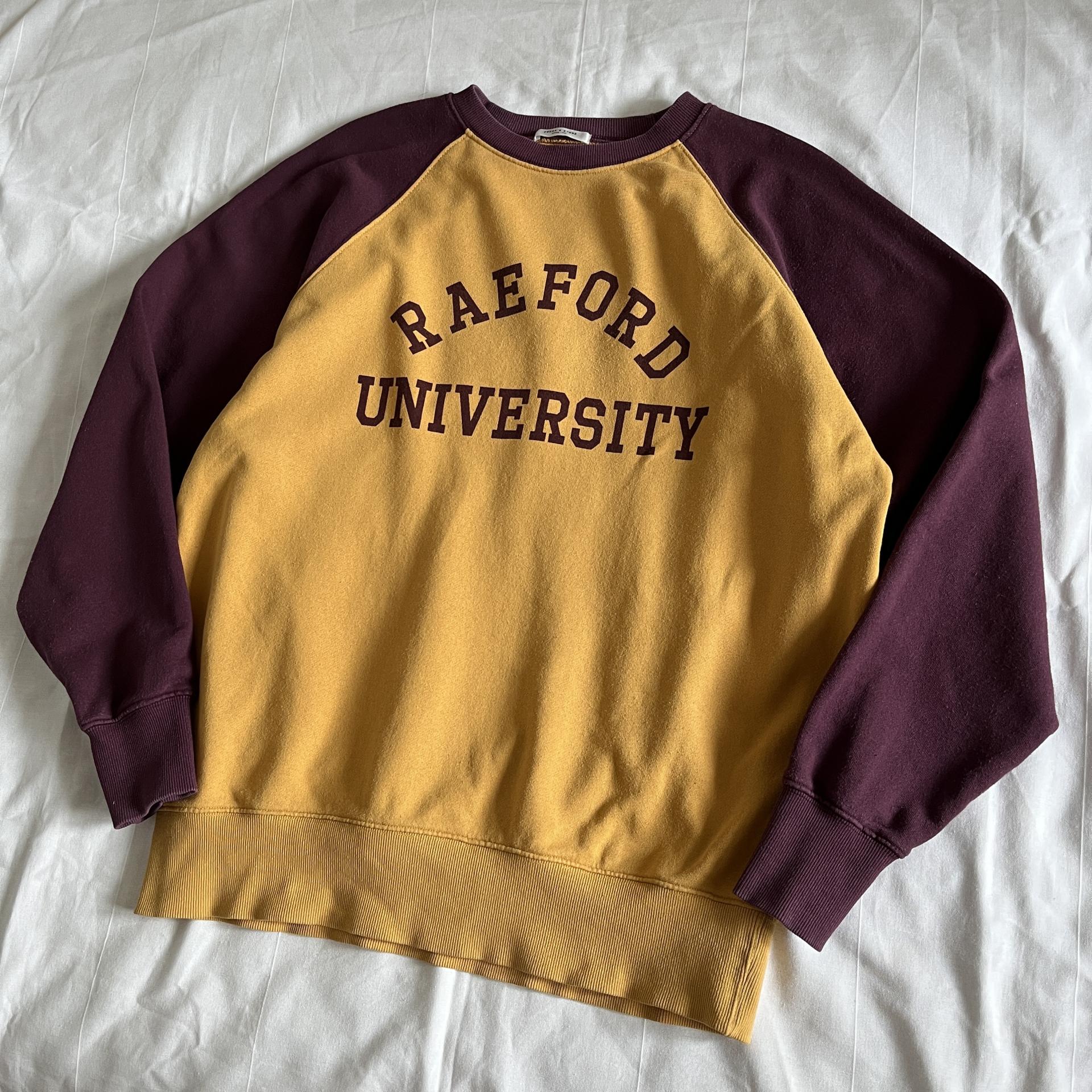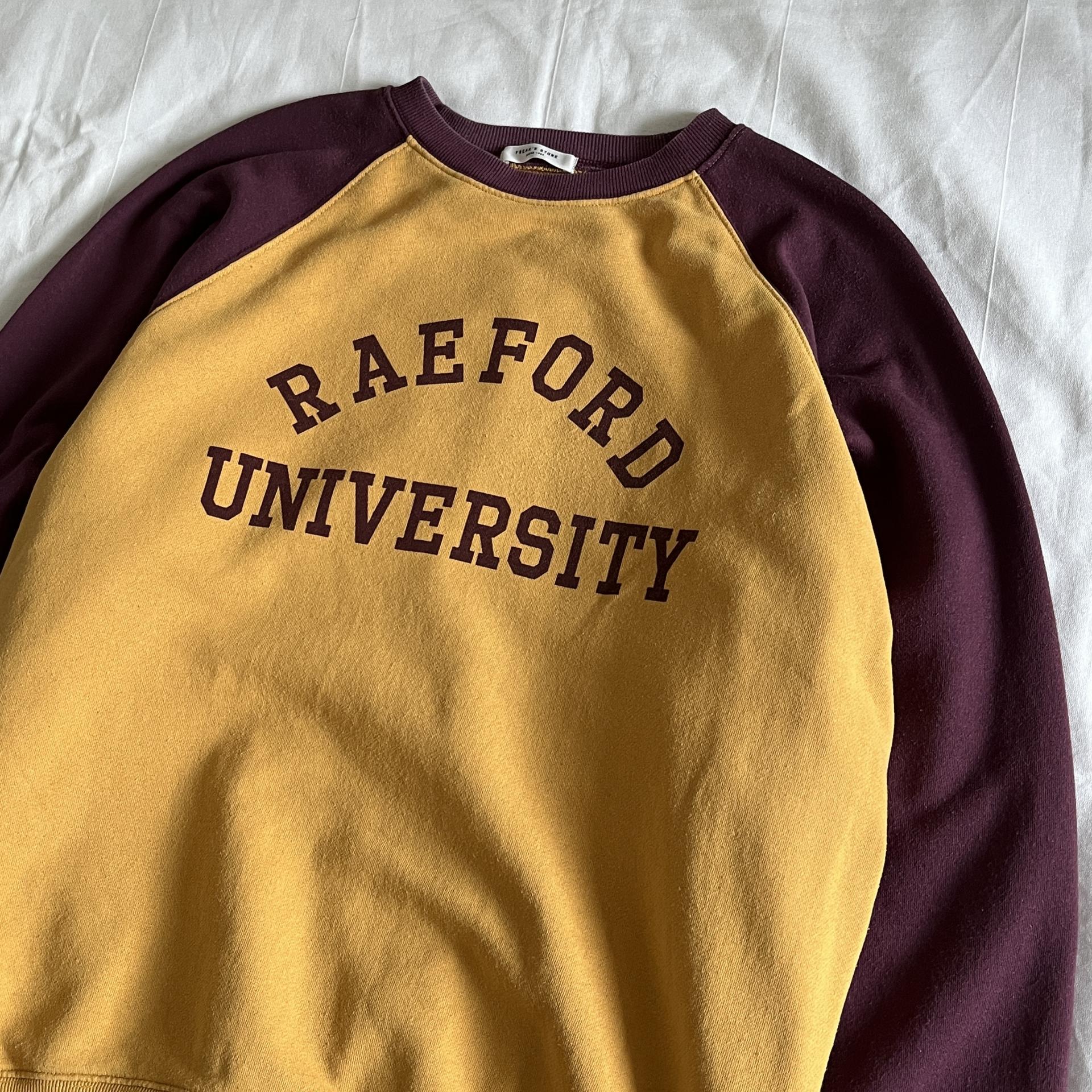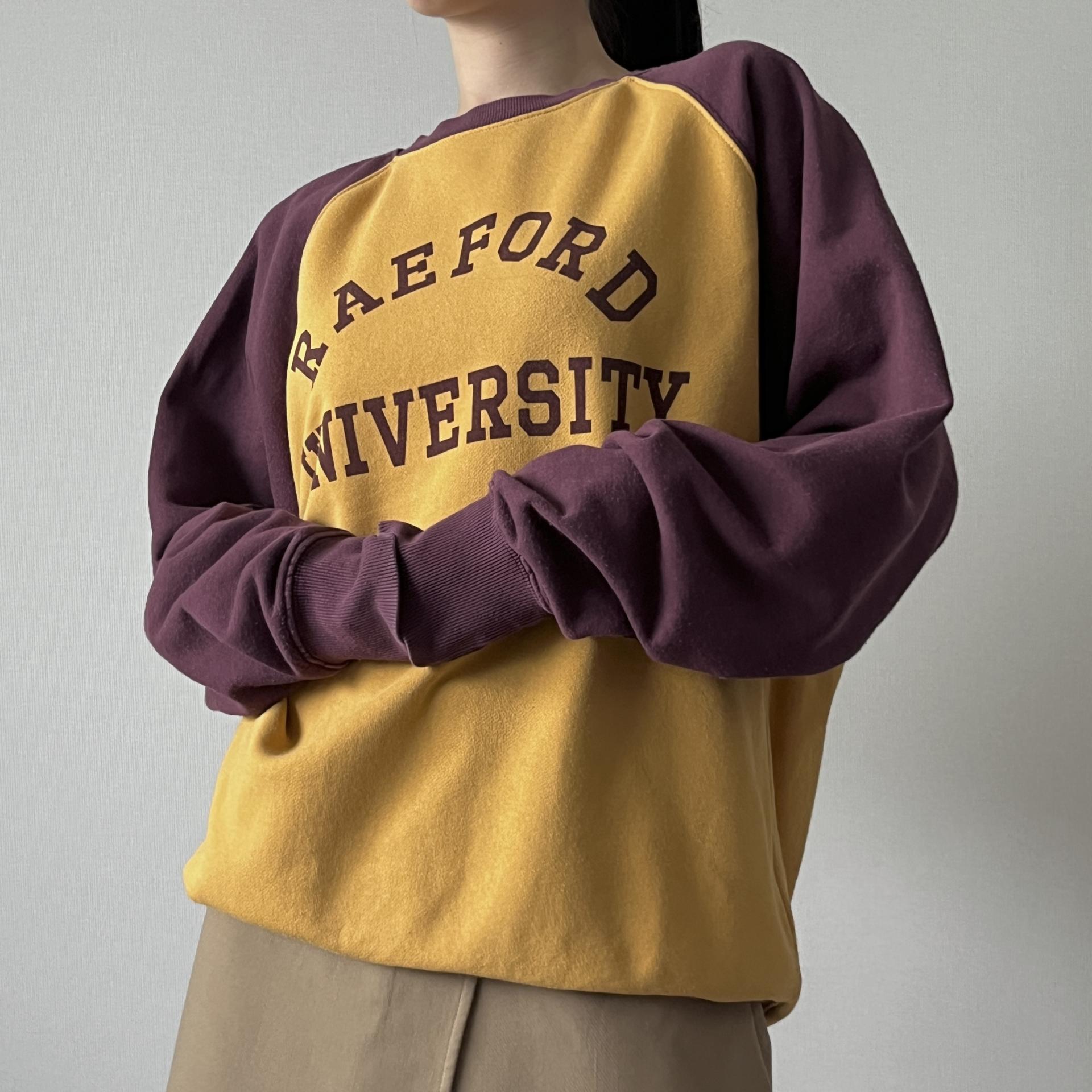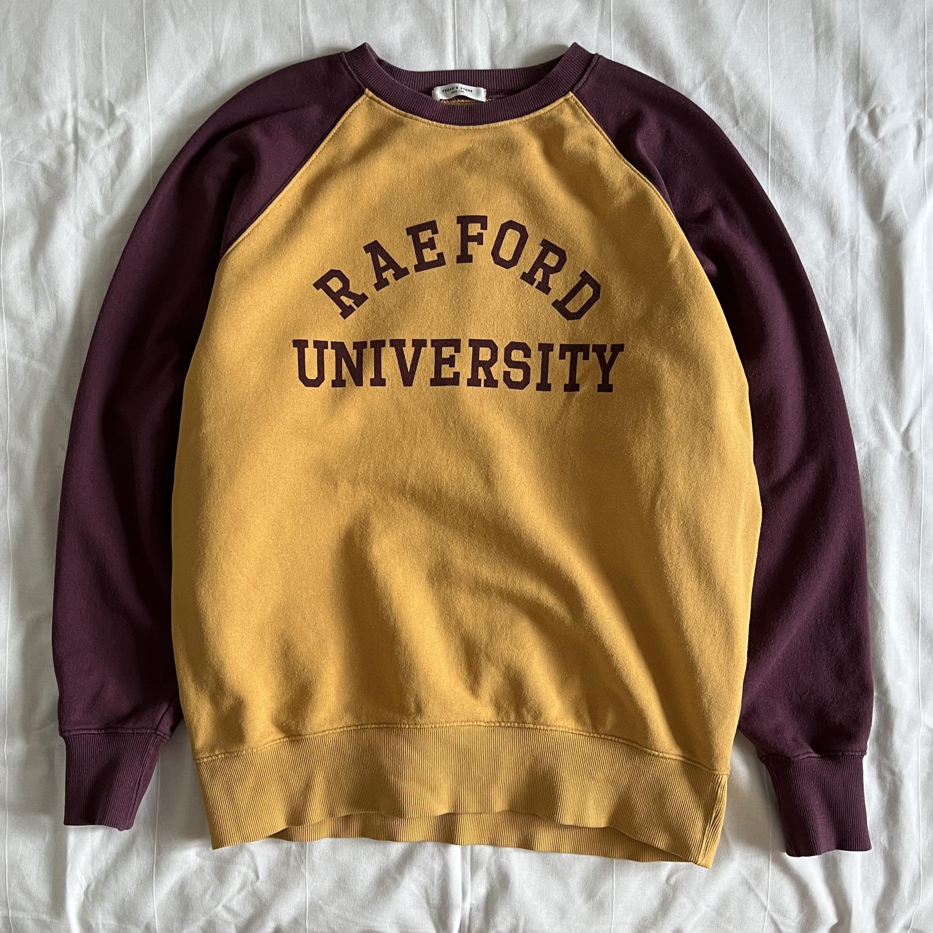 빈티지한 무드로 즐기시기 좋은 프릭스 스토어의 " Raeford University " 스웨트셔츠 제품입니다.