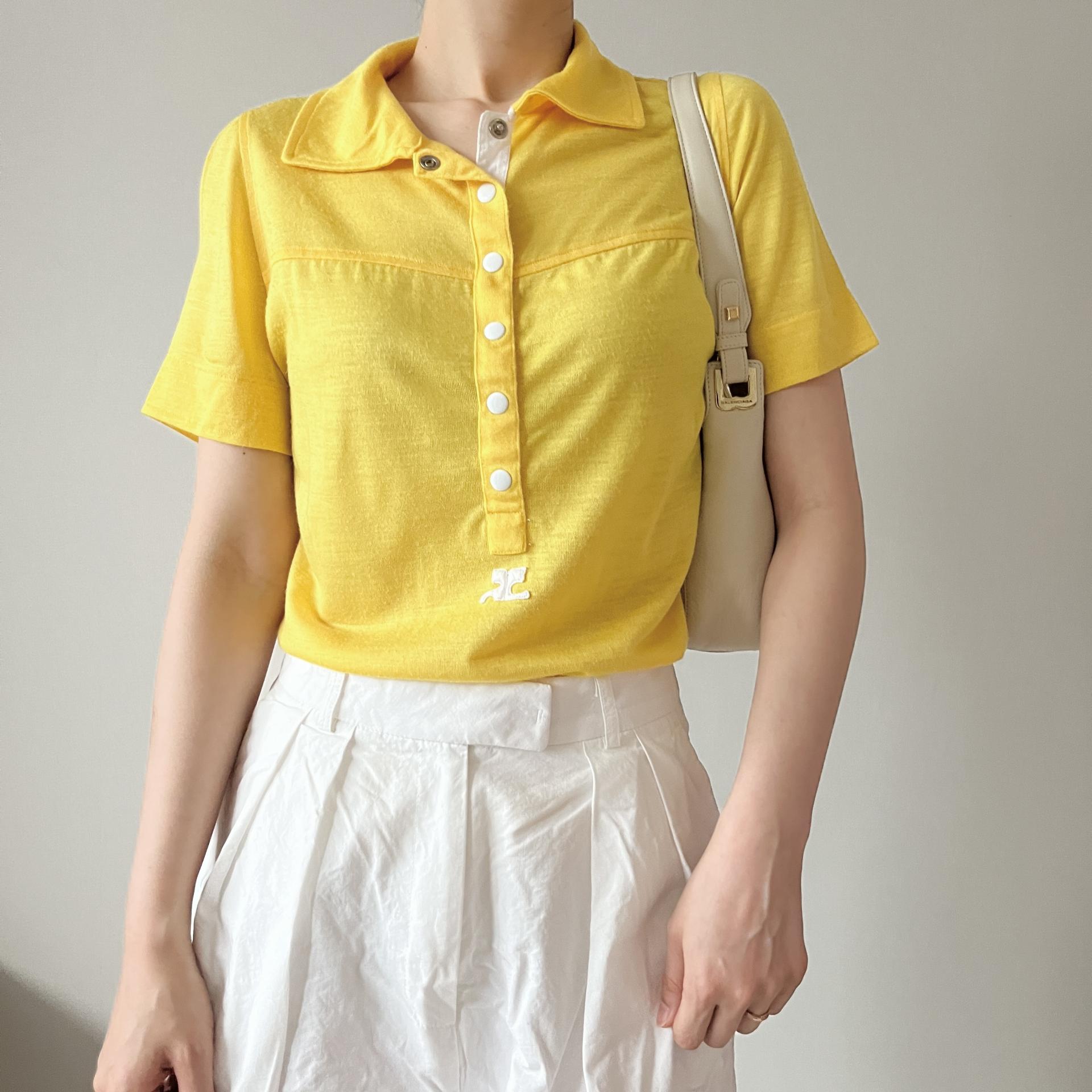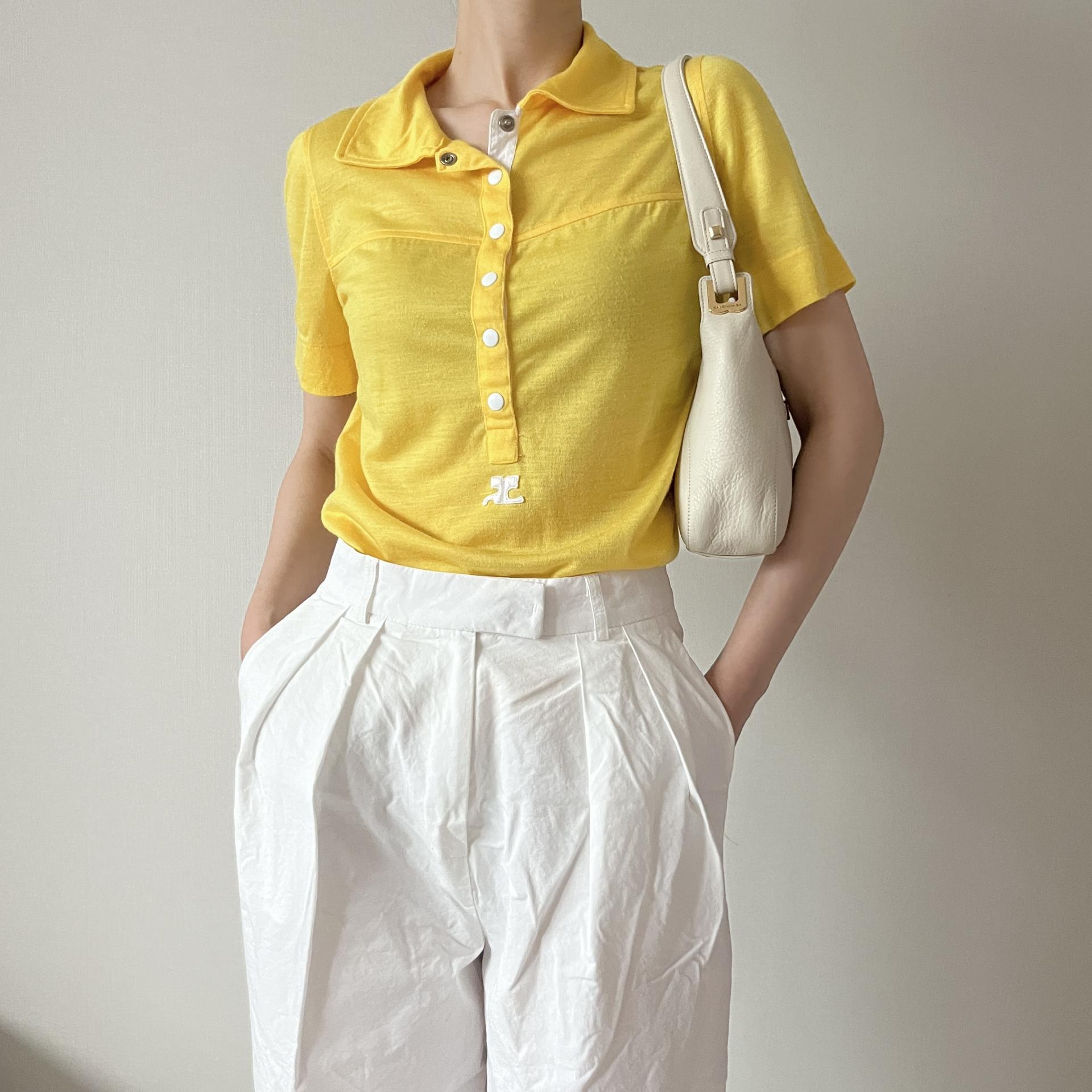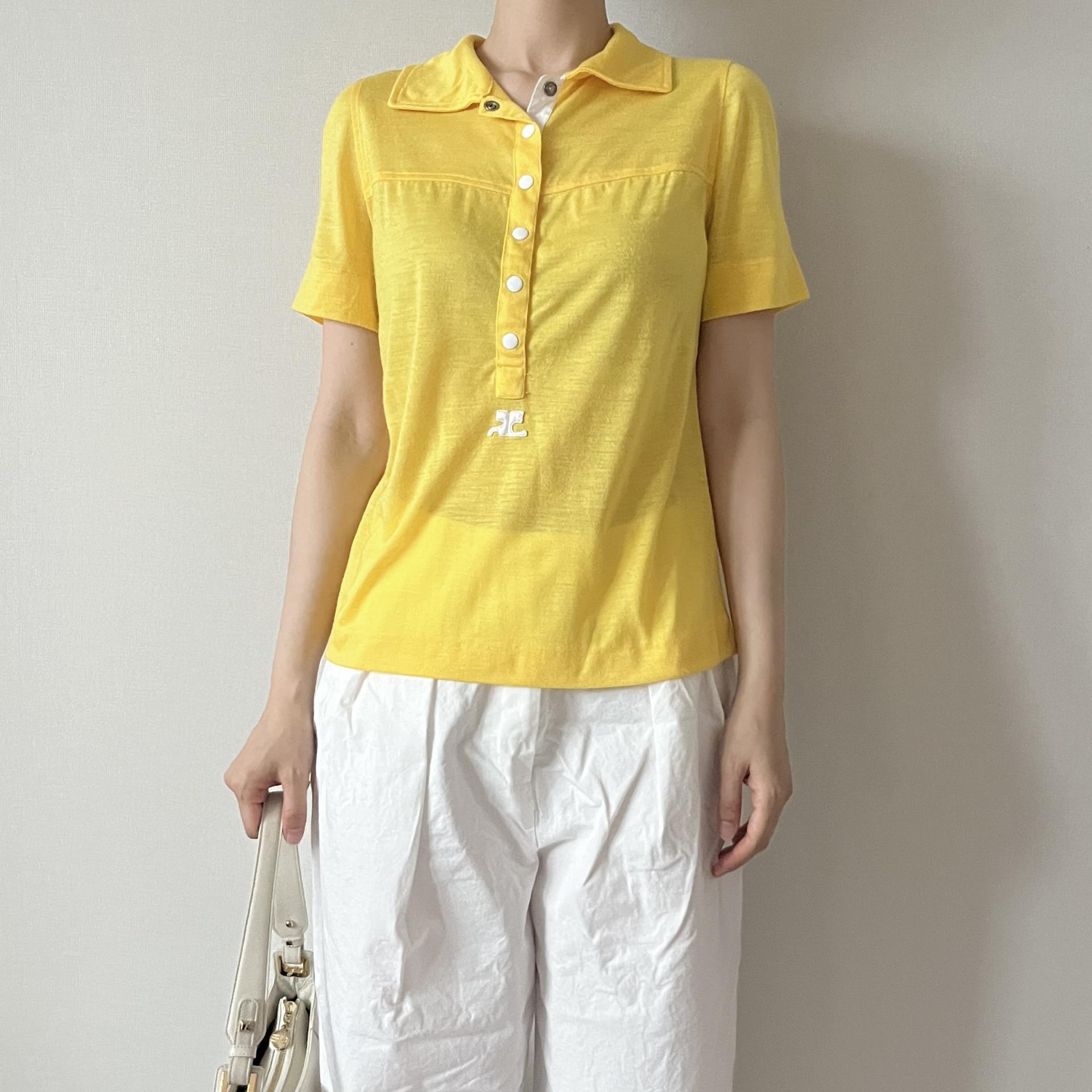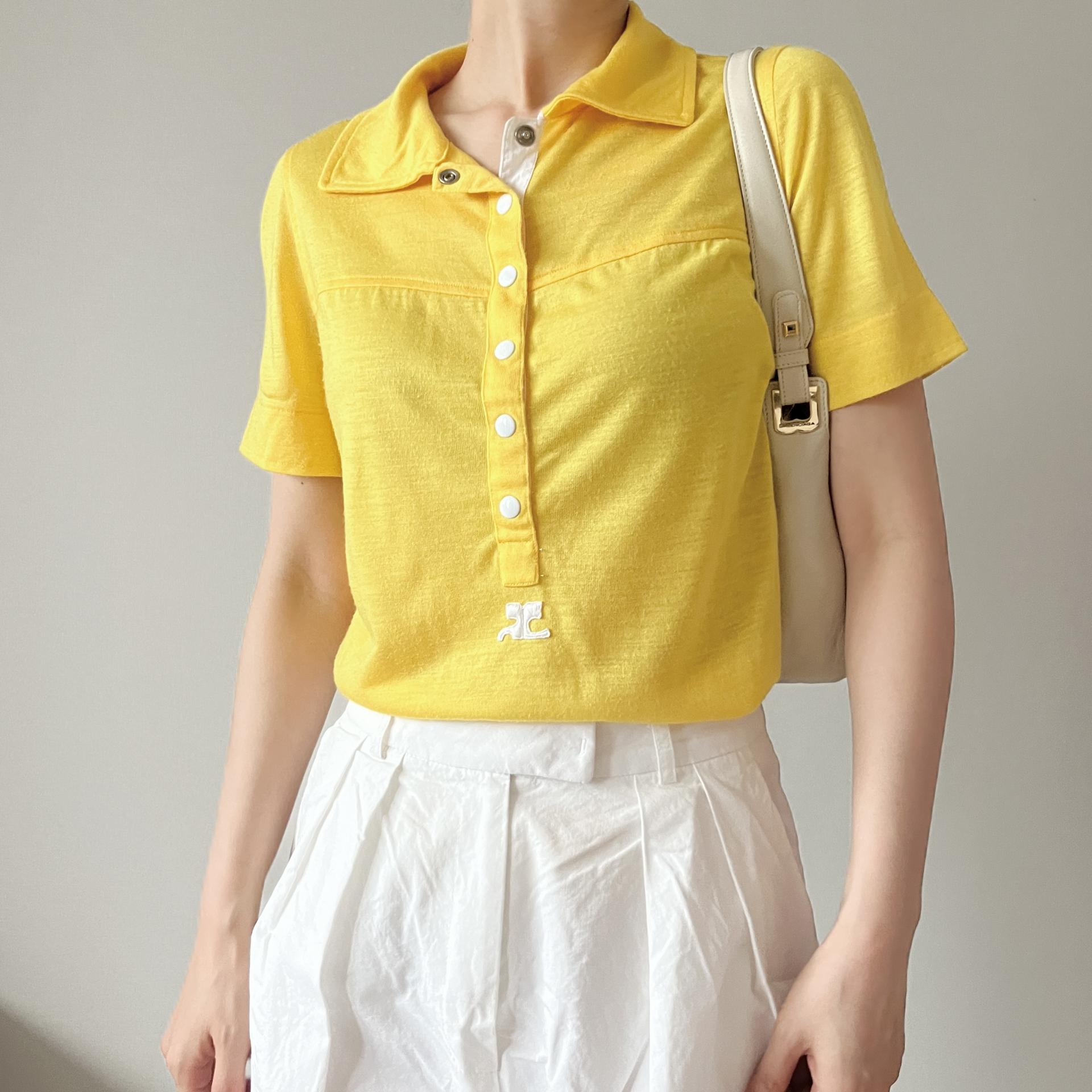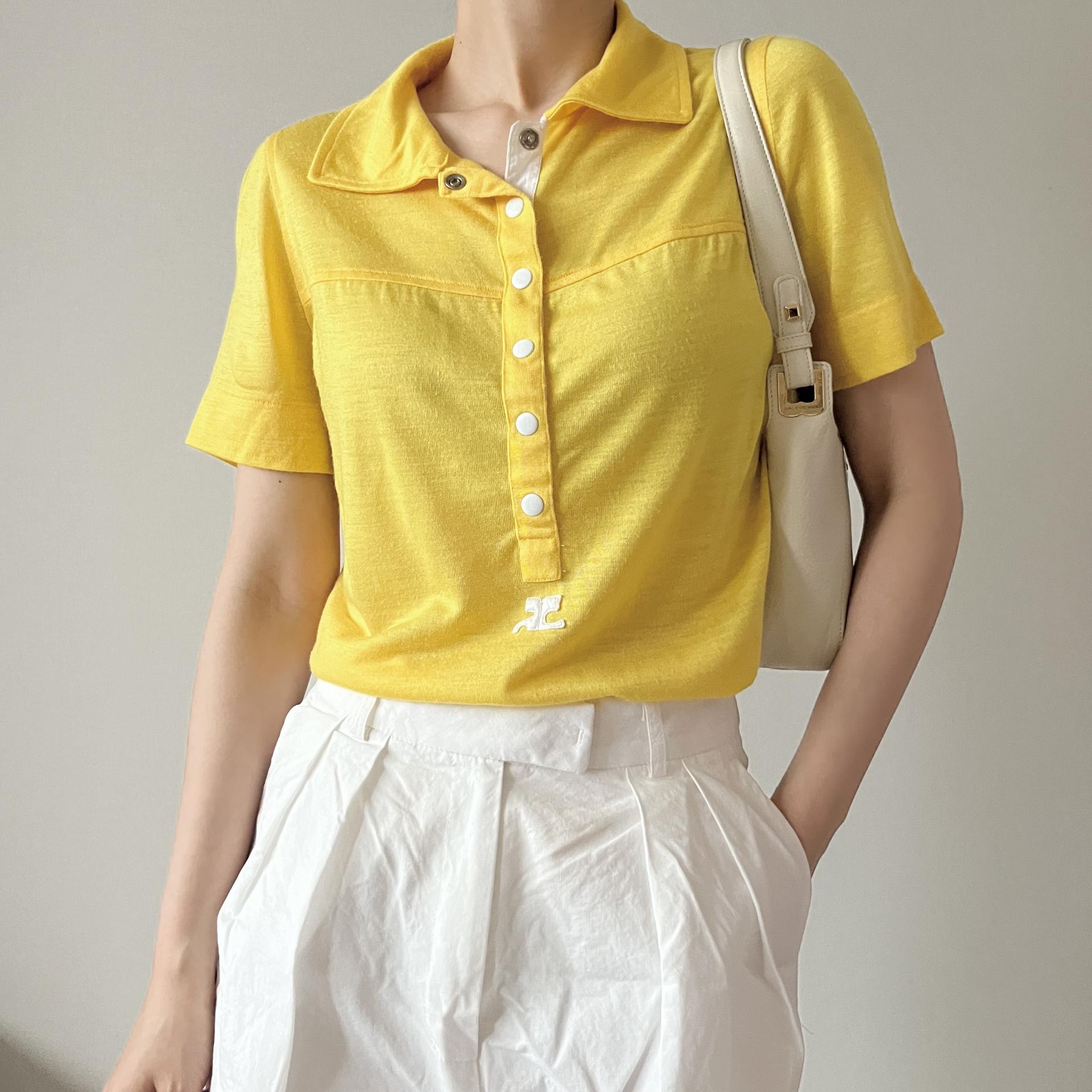 시원한 소재감과 밝은 노란색컬러가 예쁜 쿠레쥬의 PK 셔츠 제품입니다.