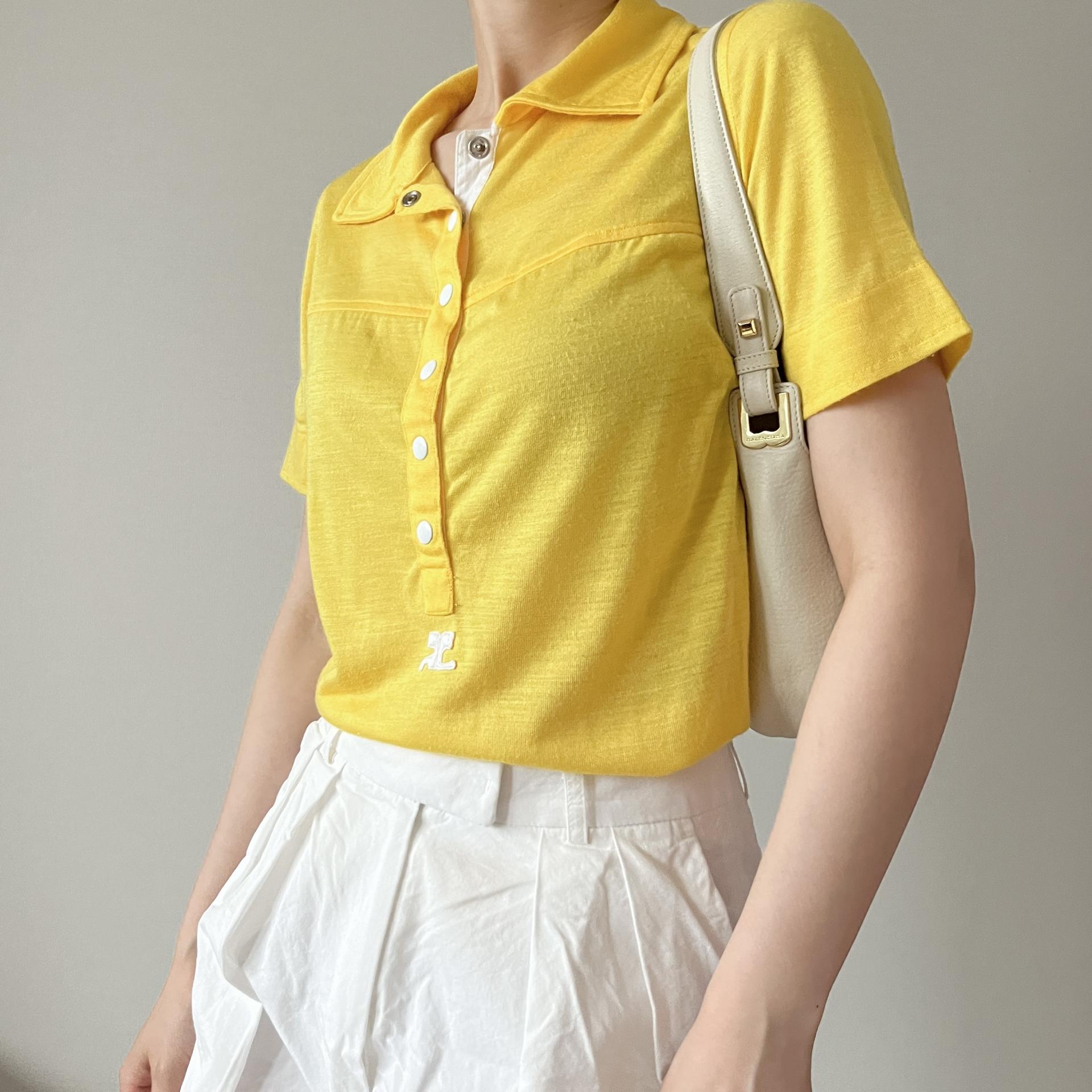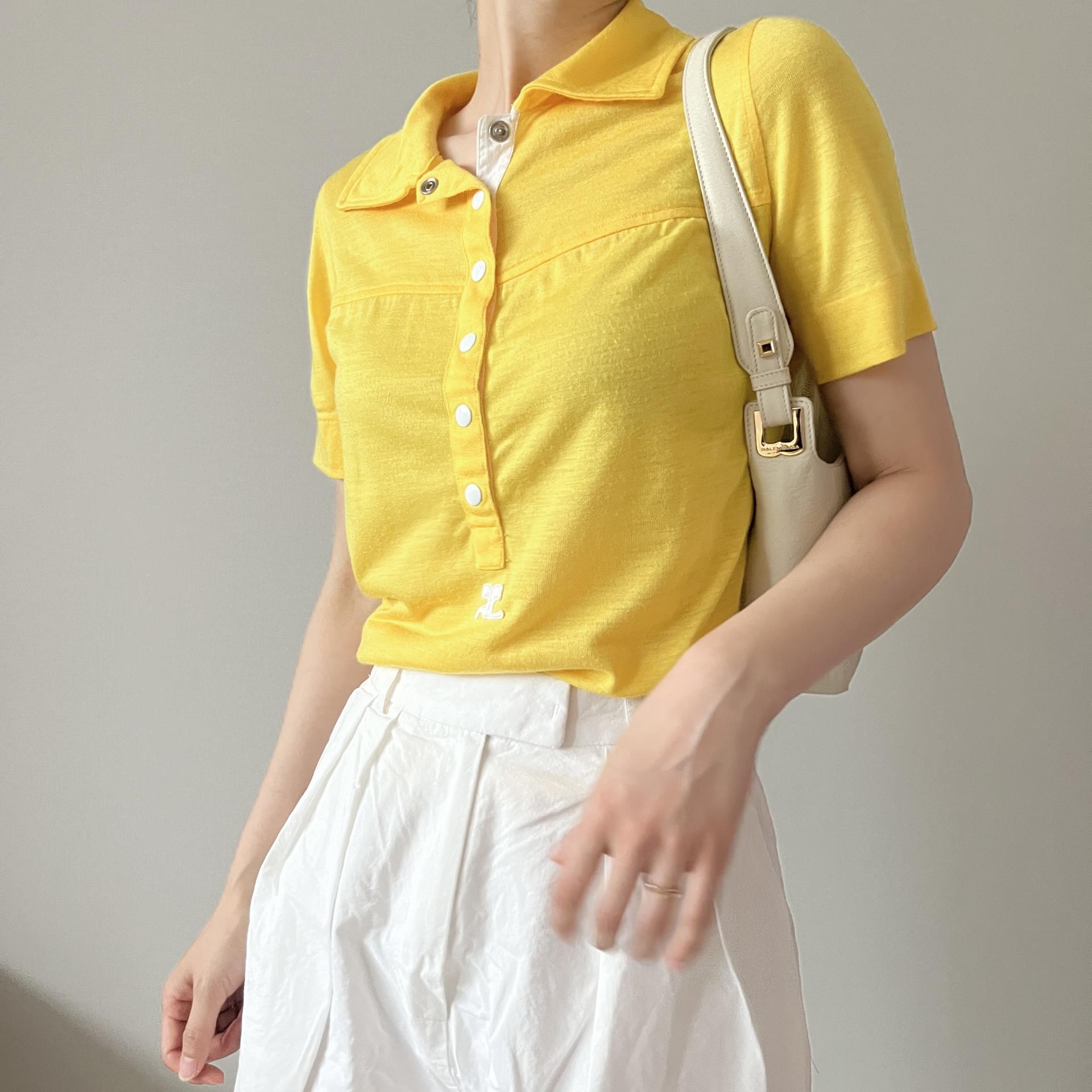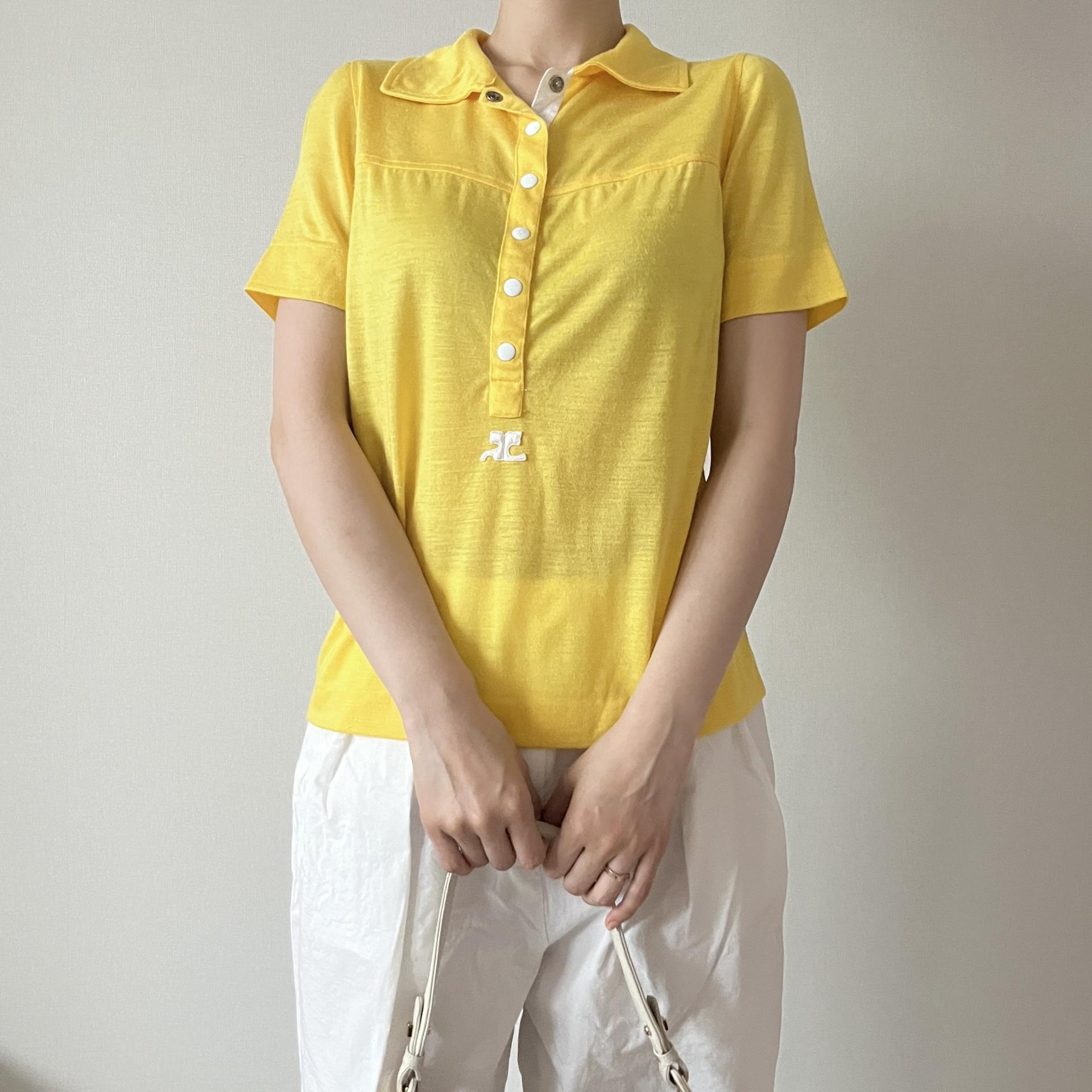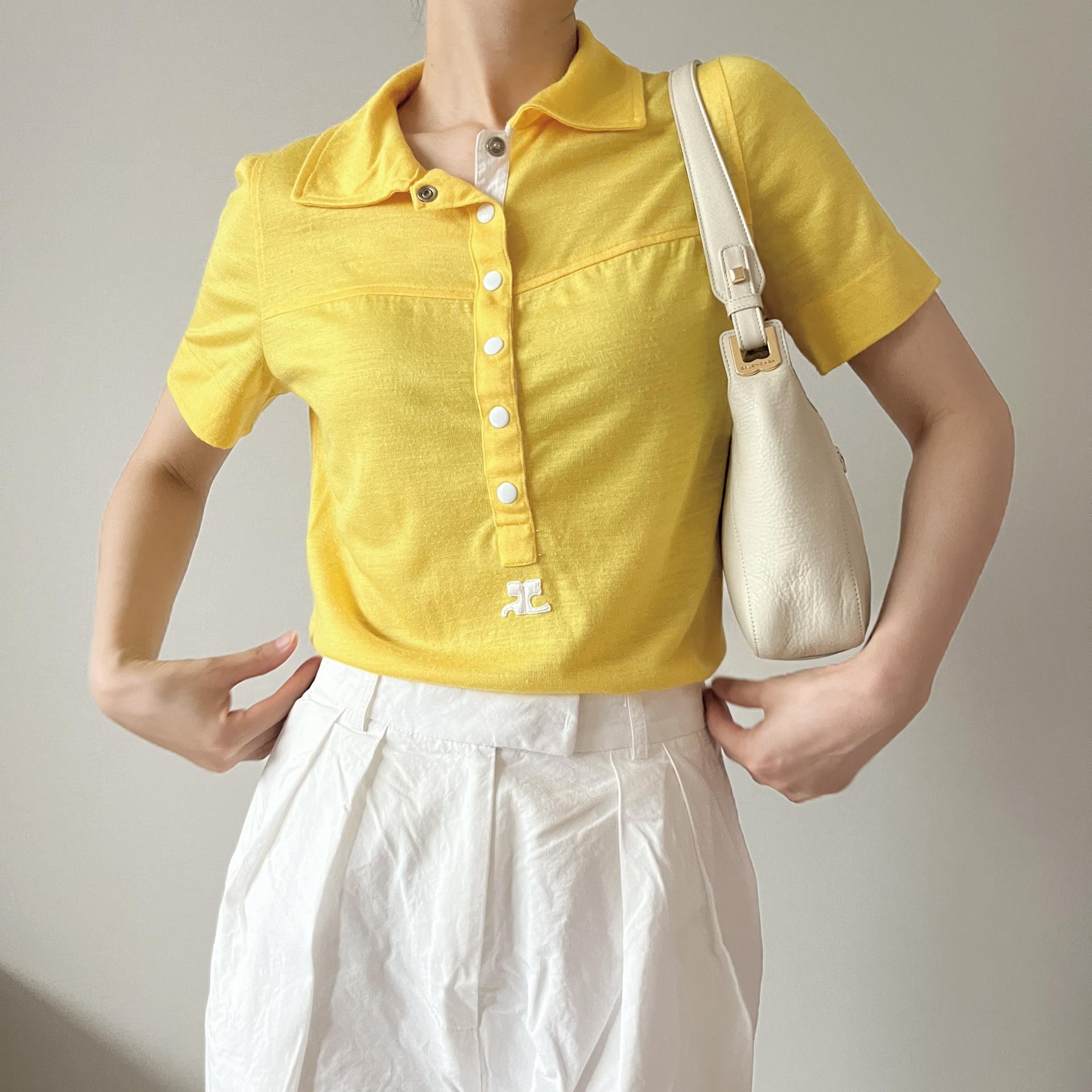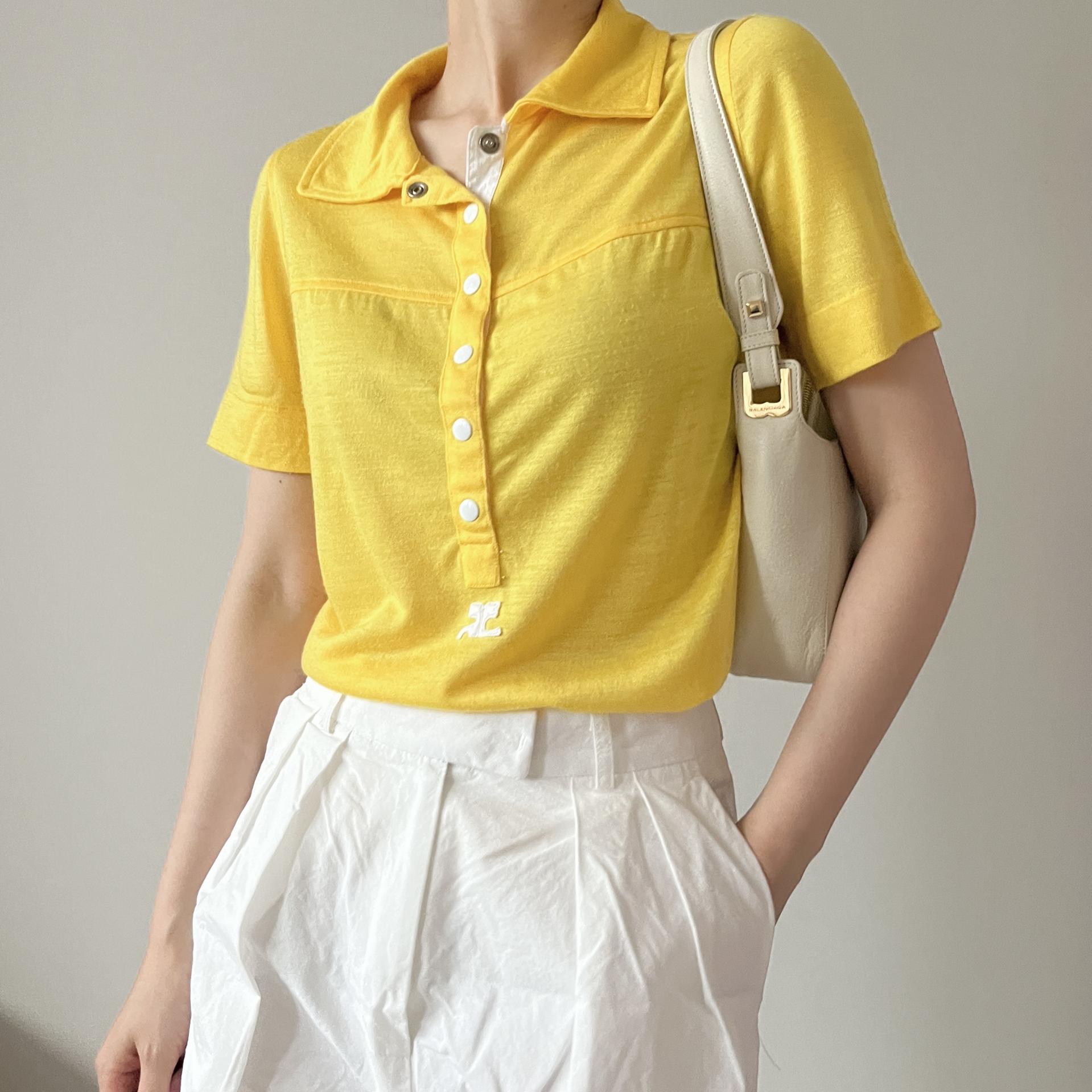 시원한 소재감과 밝은 노란색컬러가 예쁜 쿠레쥬의 PK 셔츠 제품입니다.