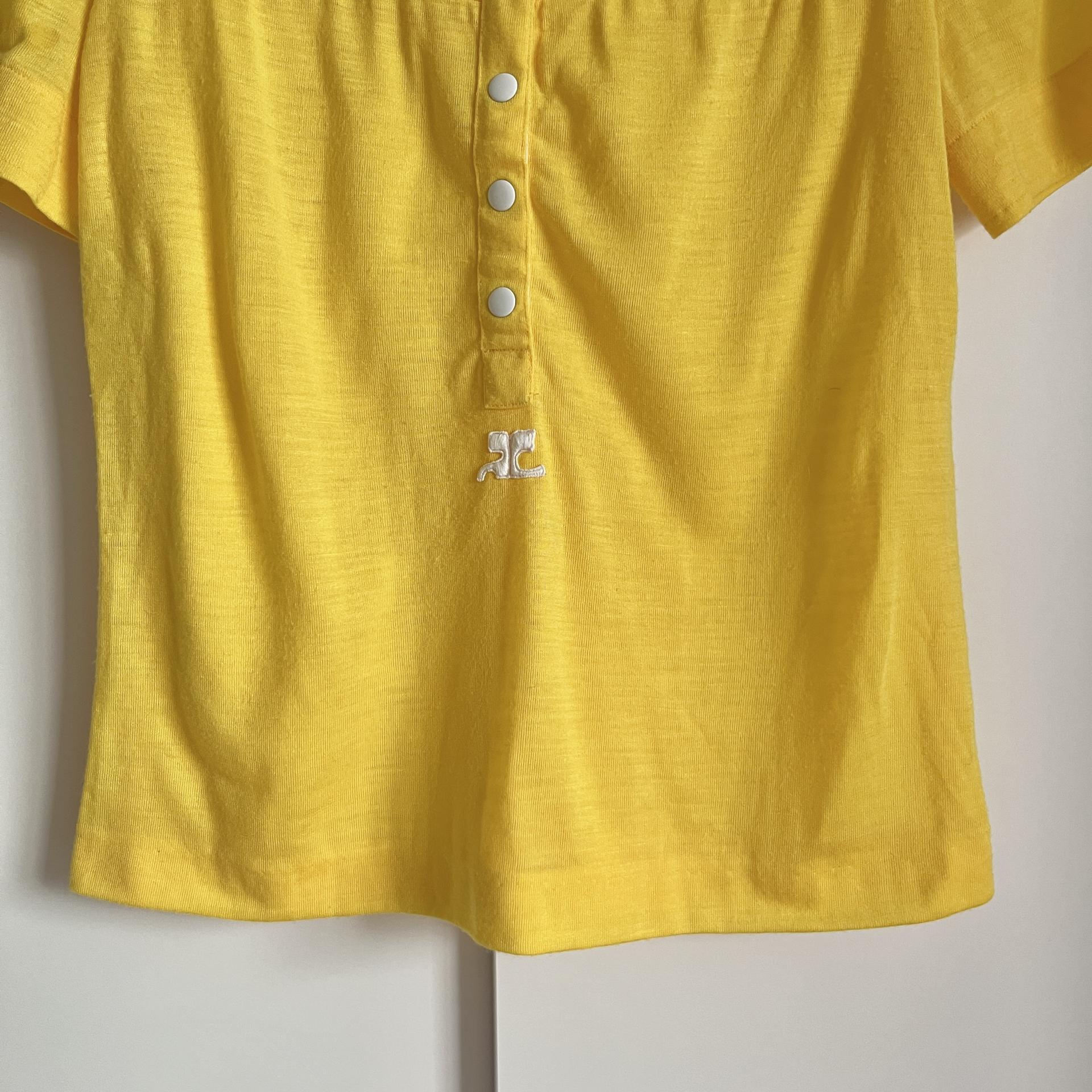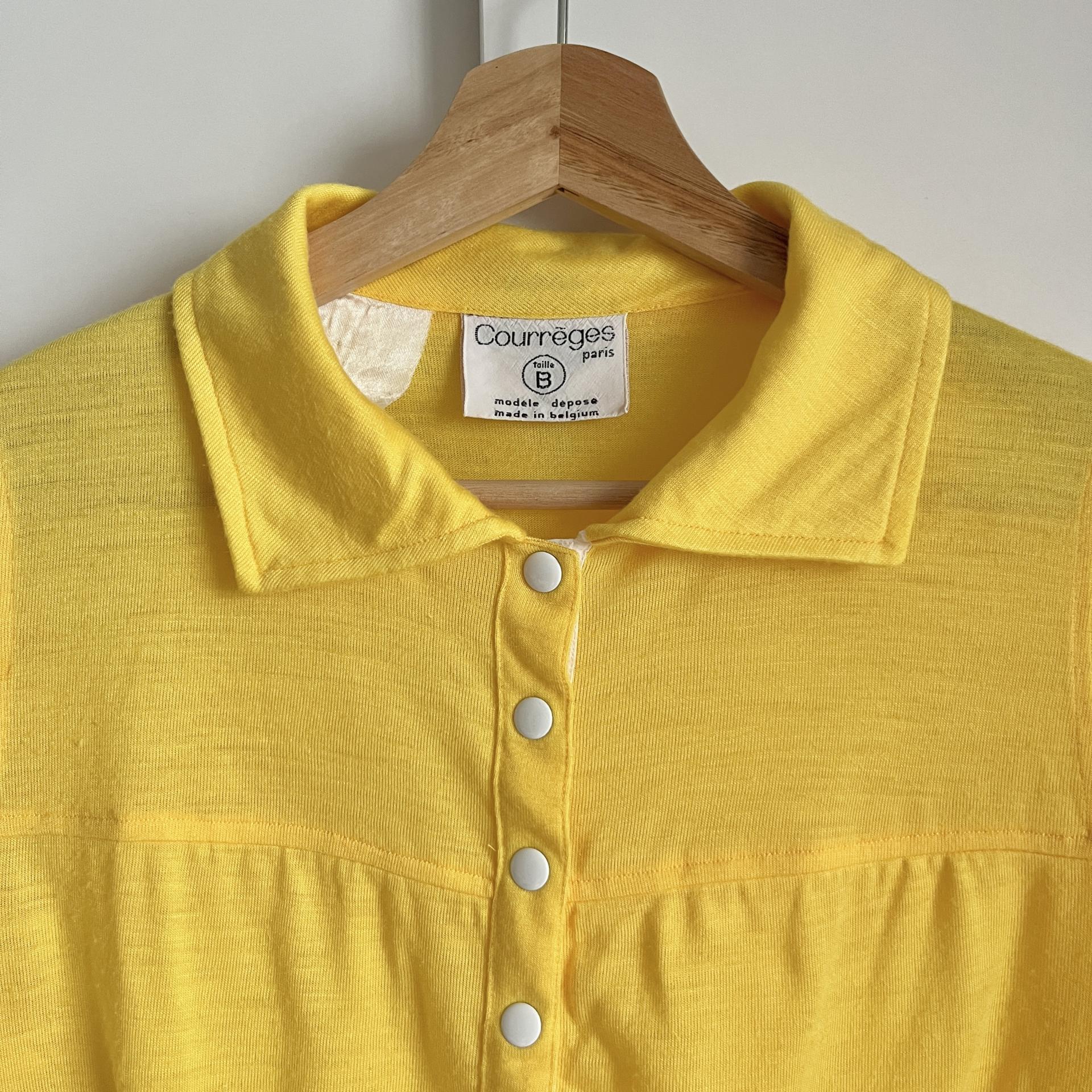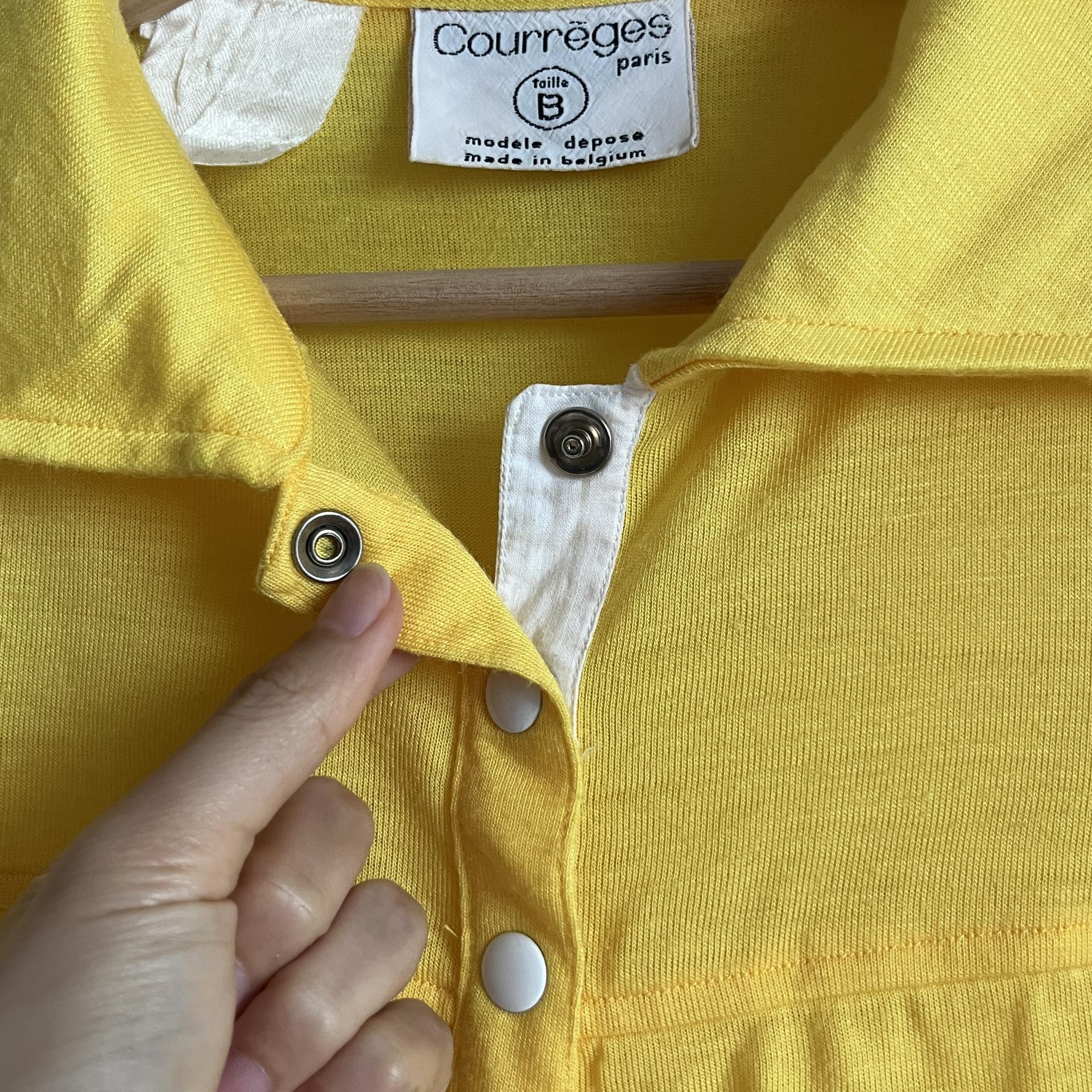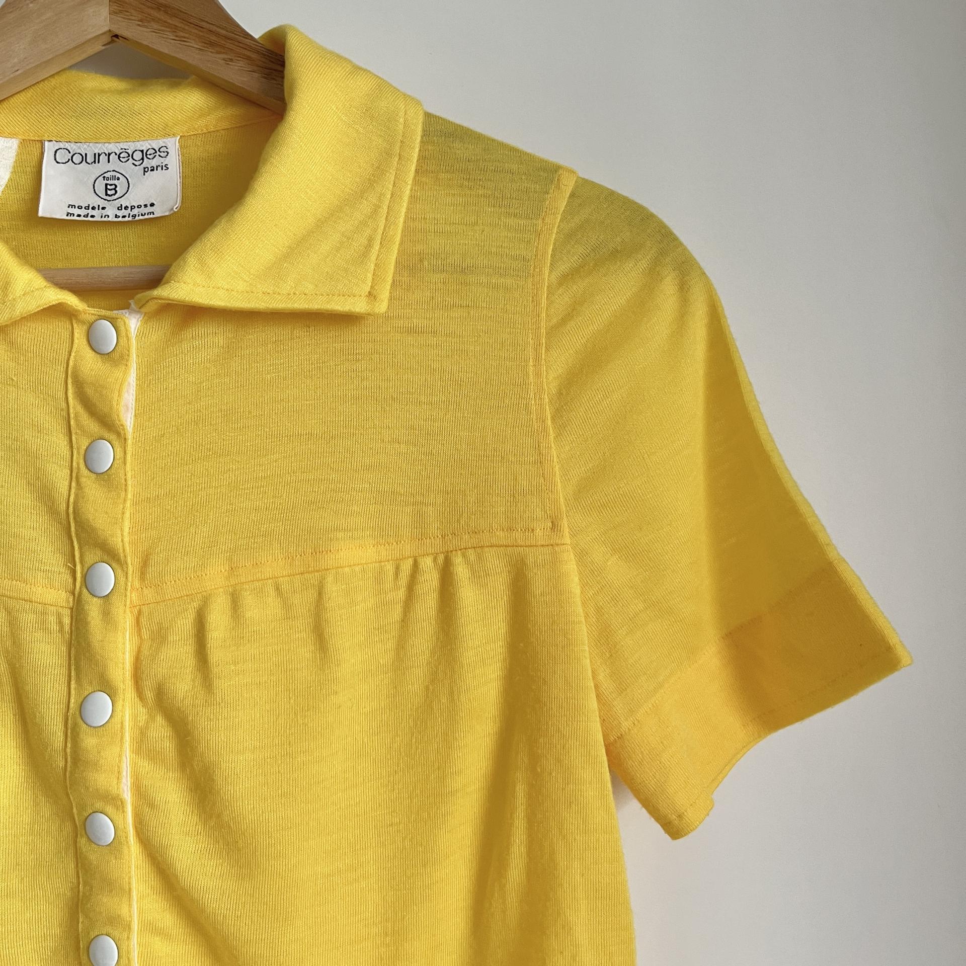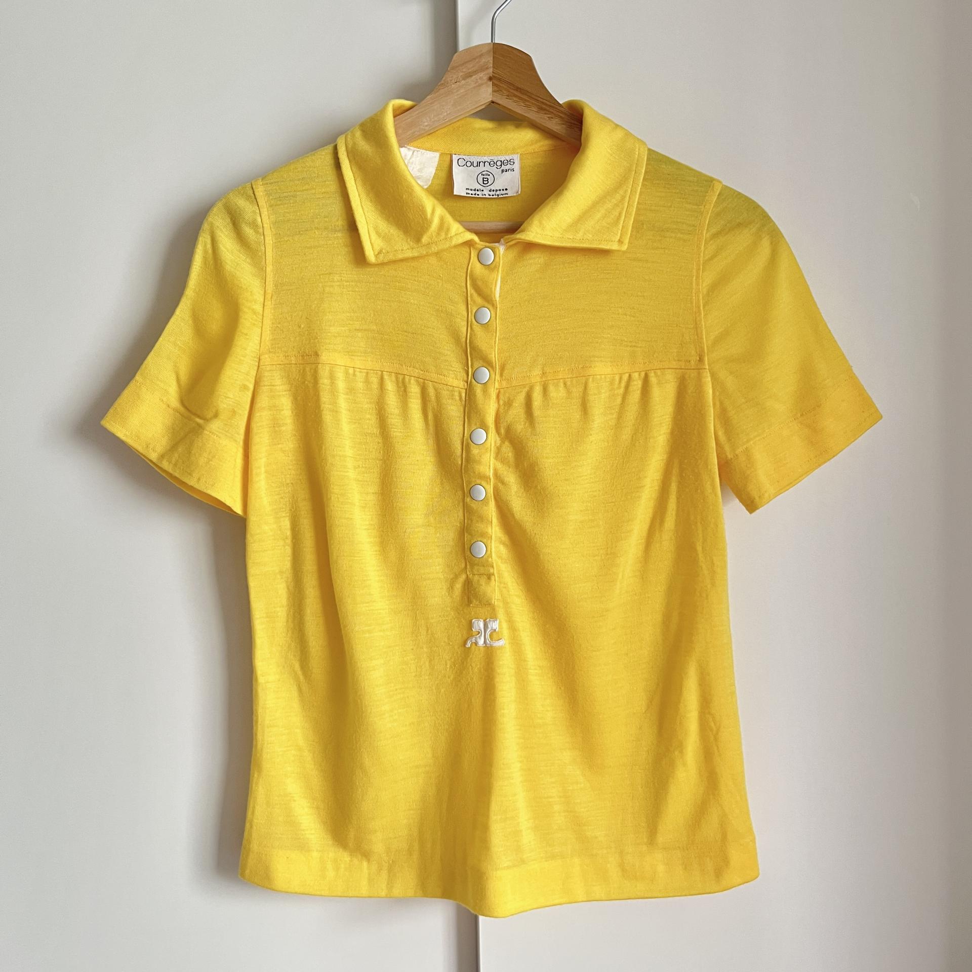 시원한 소재감과 밝은 노란색컬러가 예쁜 쿠레쥬의 PK 셔츠 제품입니다.